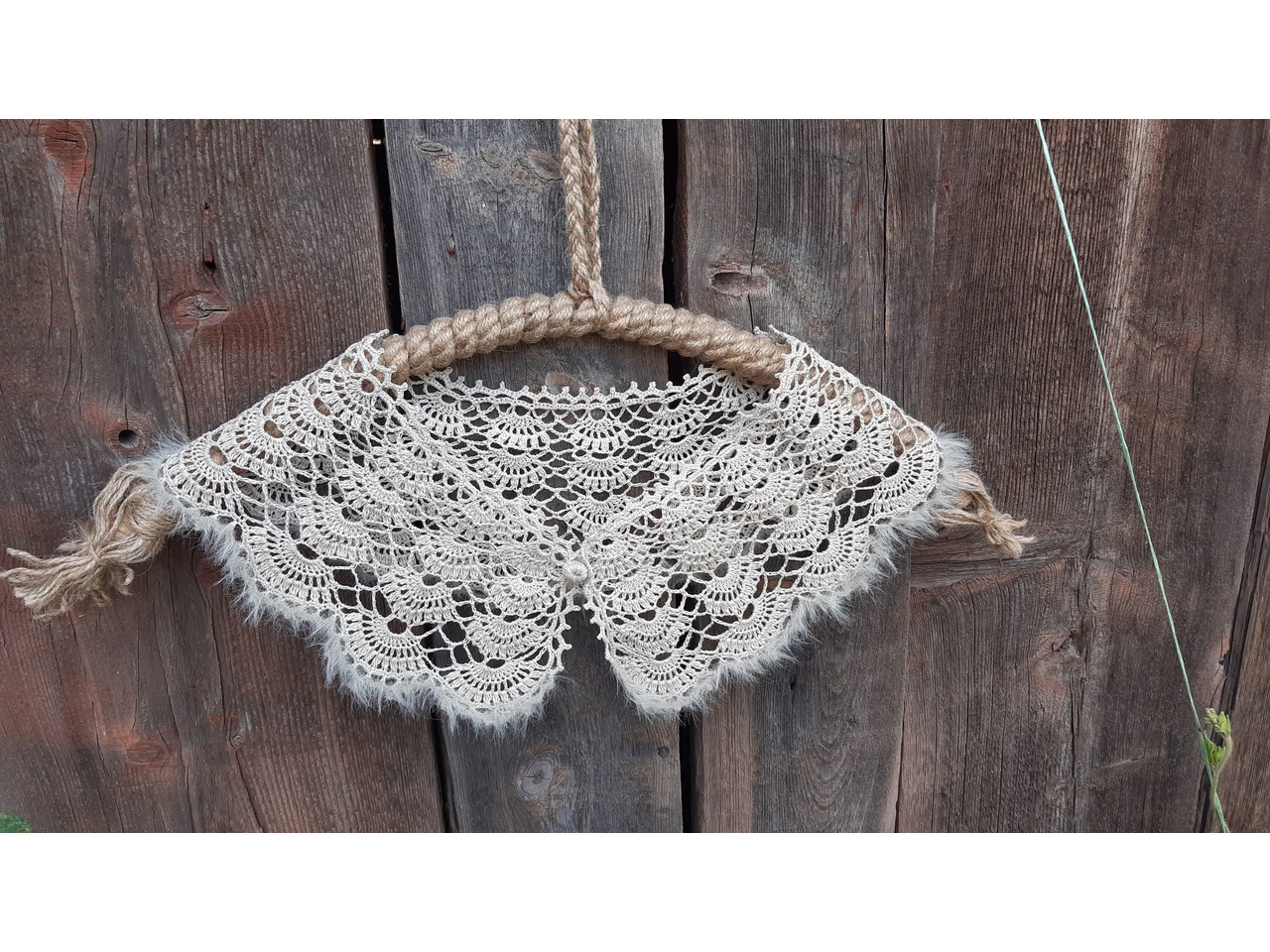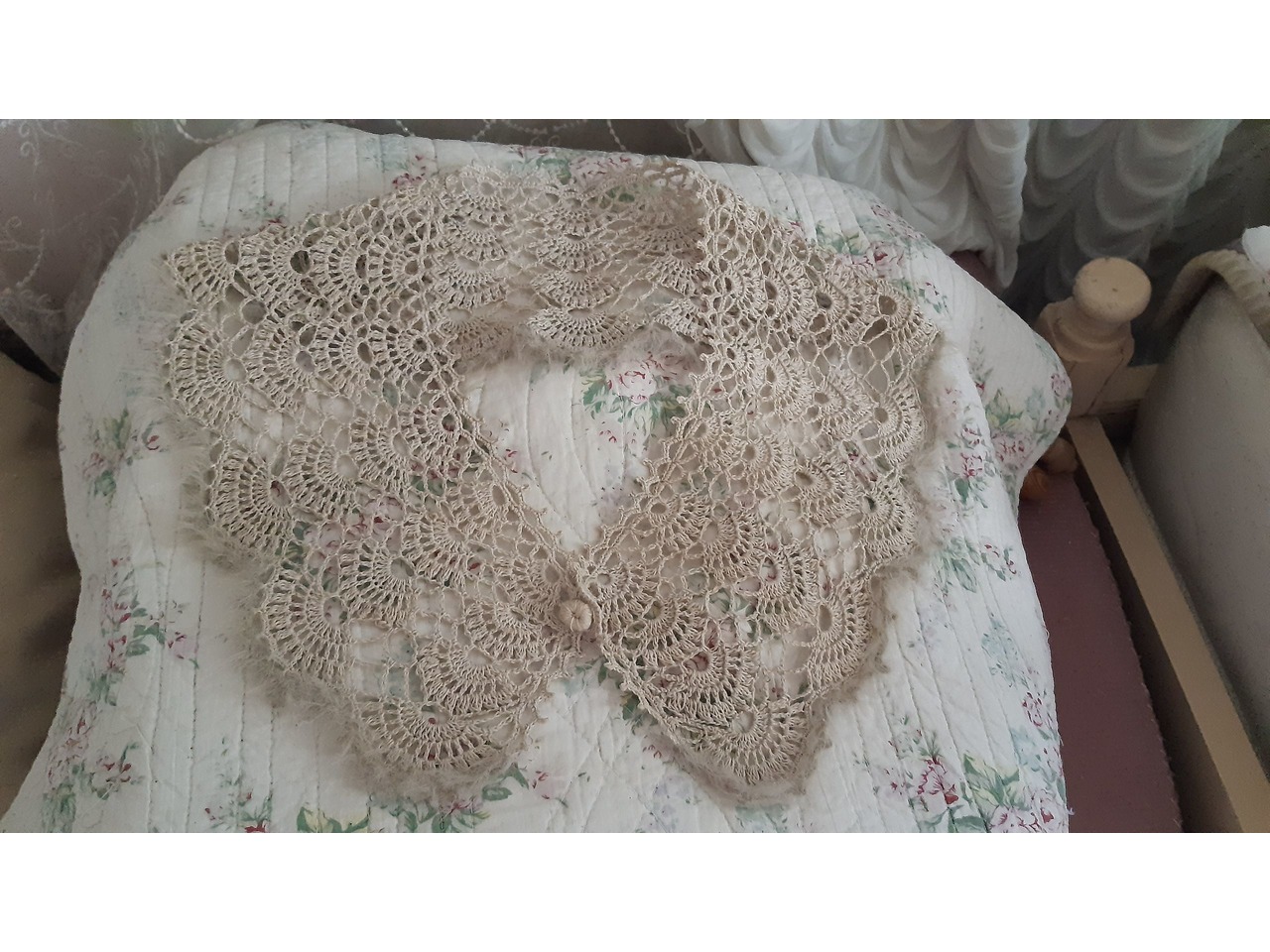 Комірець-чокер, "Єдельвейс", плетений мереживним візерунком, прикраса до одягу зі льну або бавовни. Ніжний шматочок краси, який додається до будь якого одягу на кожен день, щоб придати нотку жіночості, приємності.. Вдягайте до чого завгодно на ваш смак, імпровізуйте як подобається. Це відгук одягу карпатської княжни чи то царівни, де кам'яні замки в горах, подих безмежної природи і туманів.. і квітка ніжності, яку чоловік шукає високо в скелях, для своєї любові..