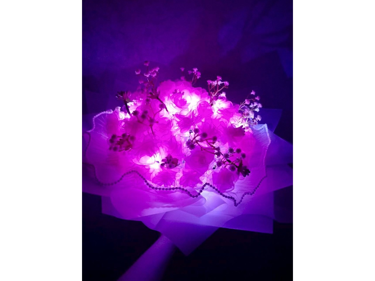 Композиція прикрашена декоративними гілочками та має підсвітку, що створює красивий ефект у темряві.