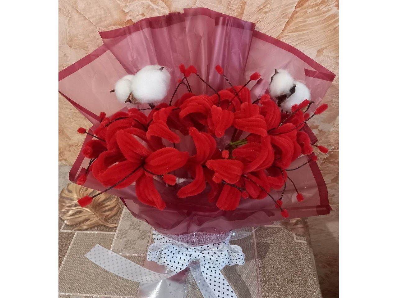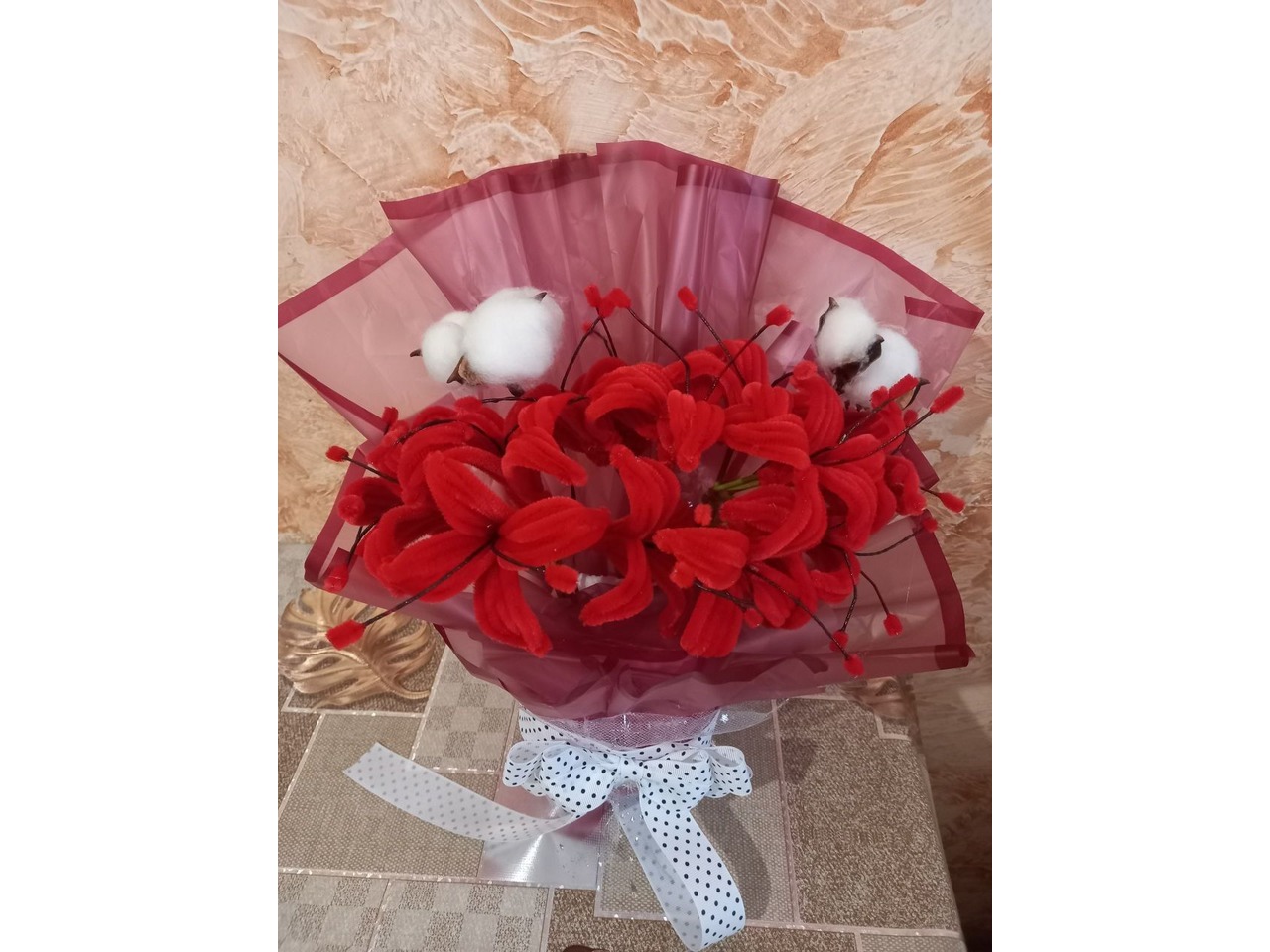 букет с синельного дроту який ніколи не зав'яне.зроблен з душою можно щось змінити або добавити