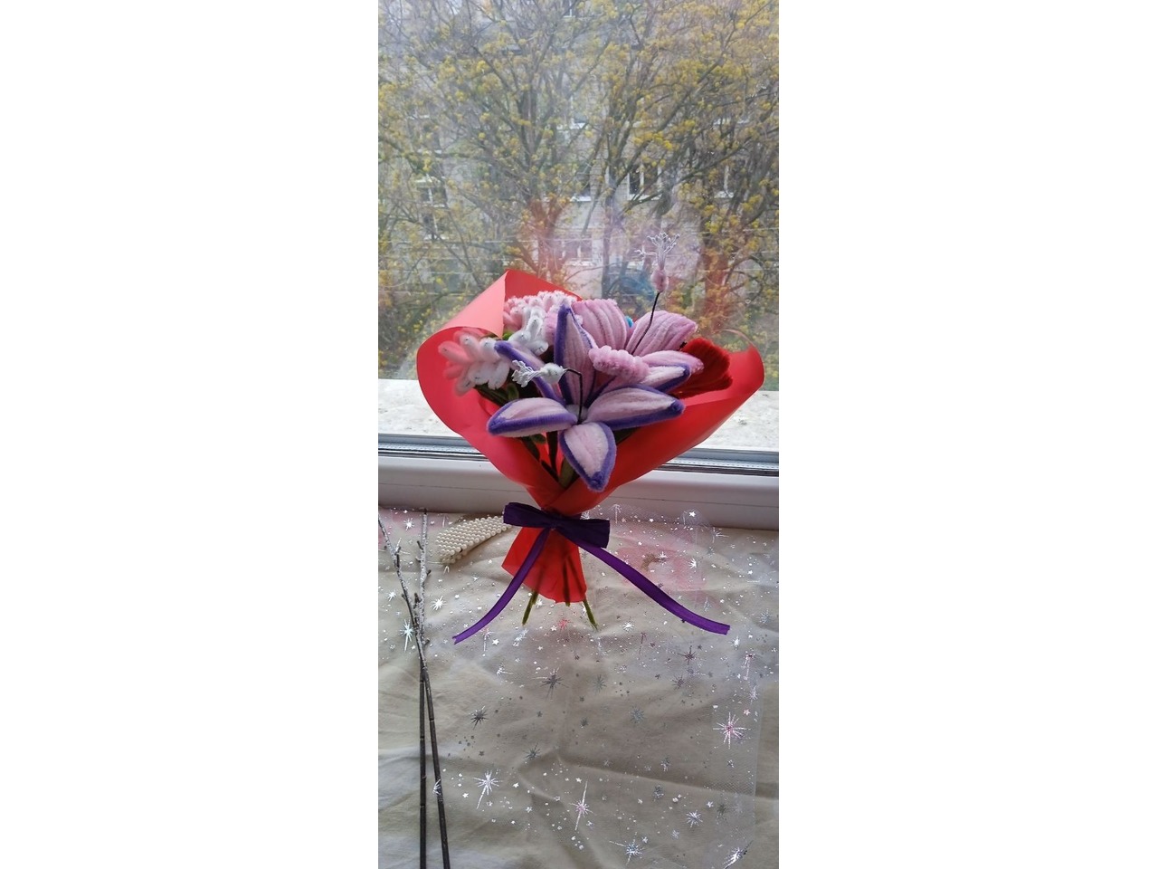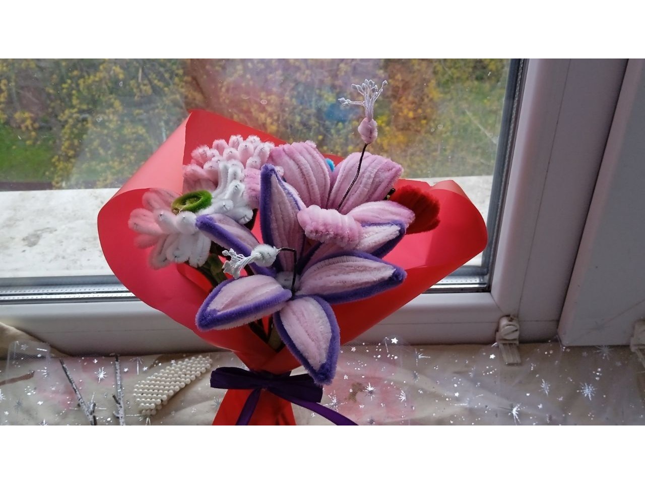 букет с синельного дроту який ніколи не зав'яне.зроблен з душою можно щось змінити або добавити