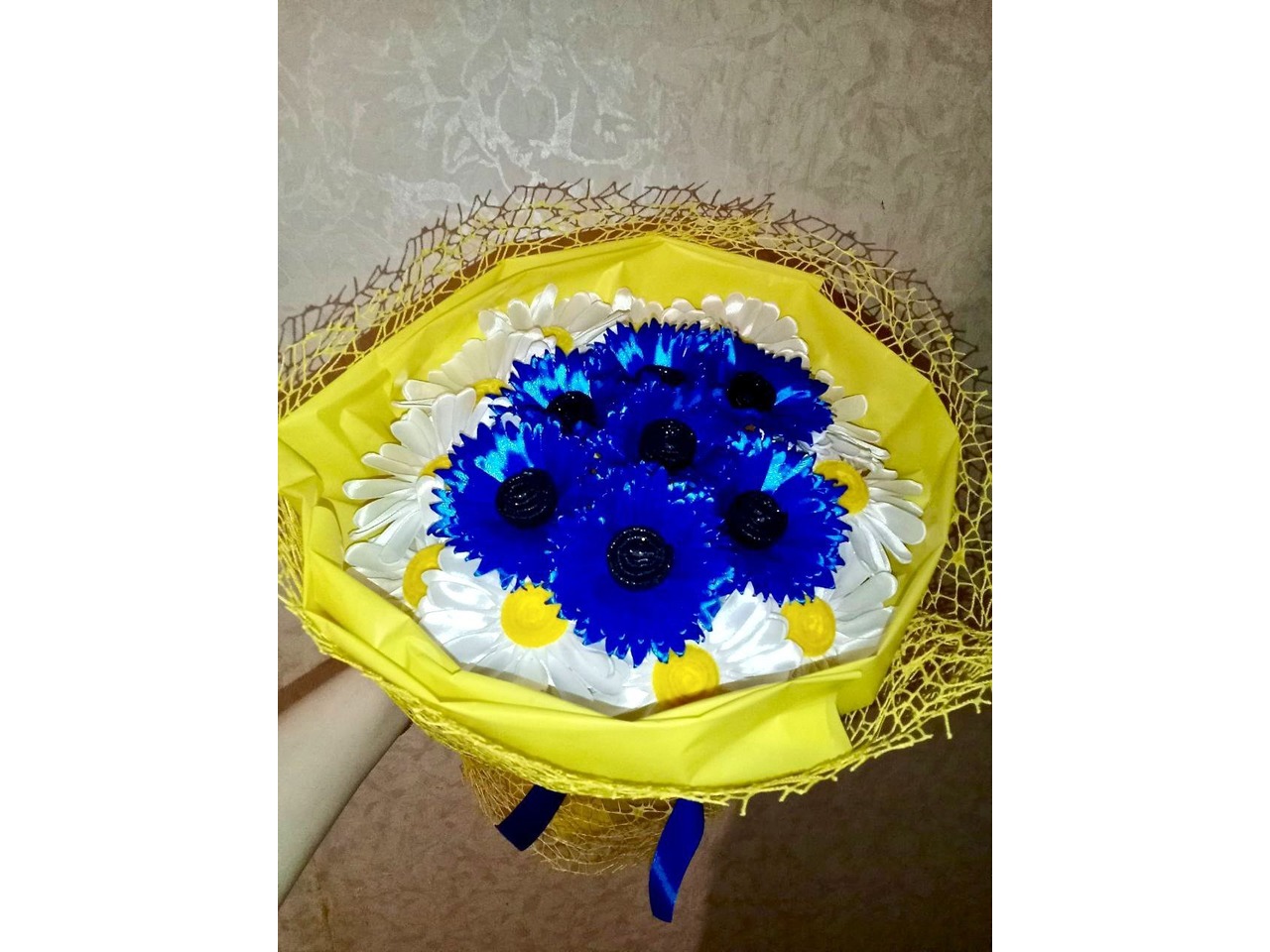Букет з 18 квітів з атласної стрічки.