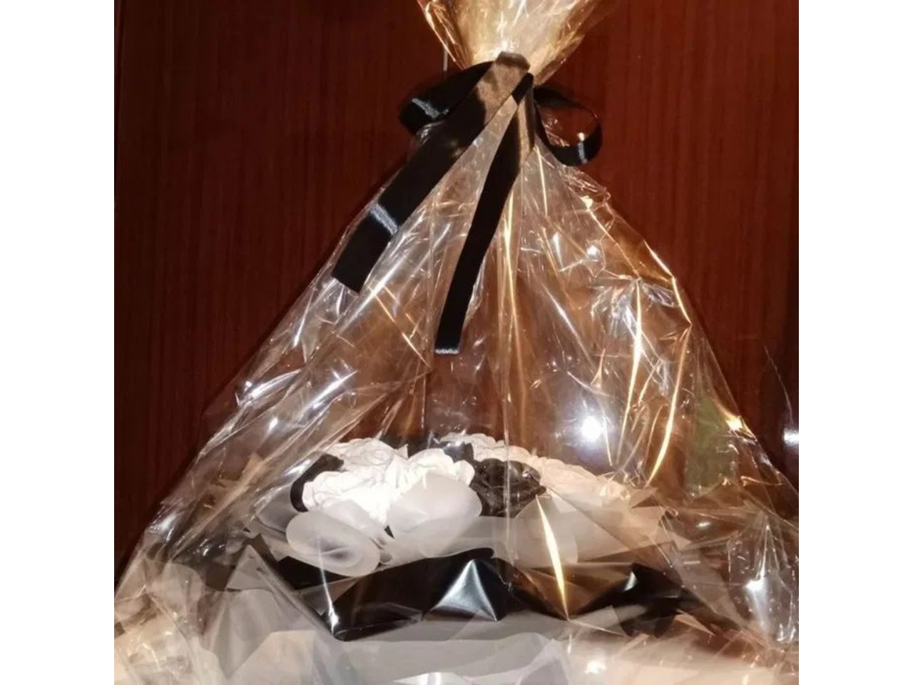Квіти розміщені у коробці та запаковані у прозору слюду.