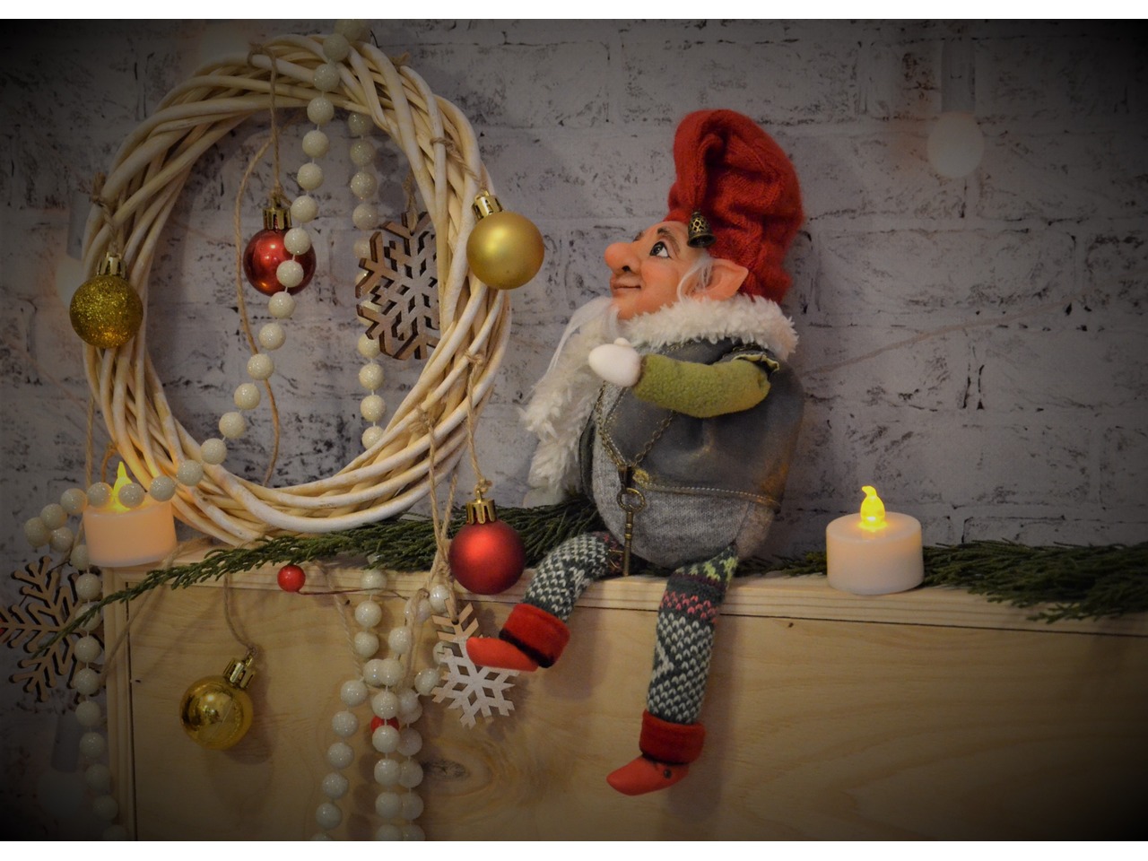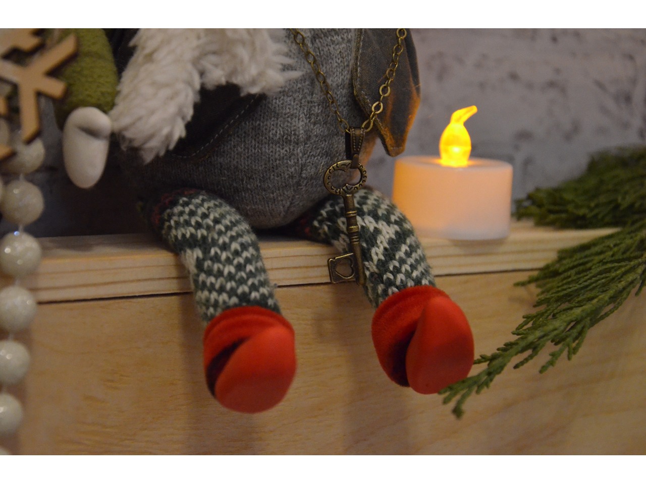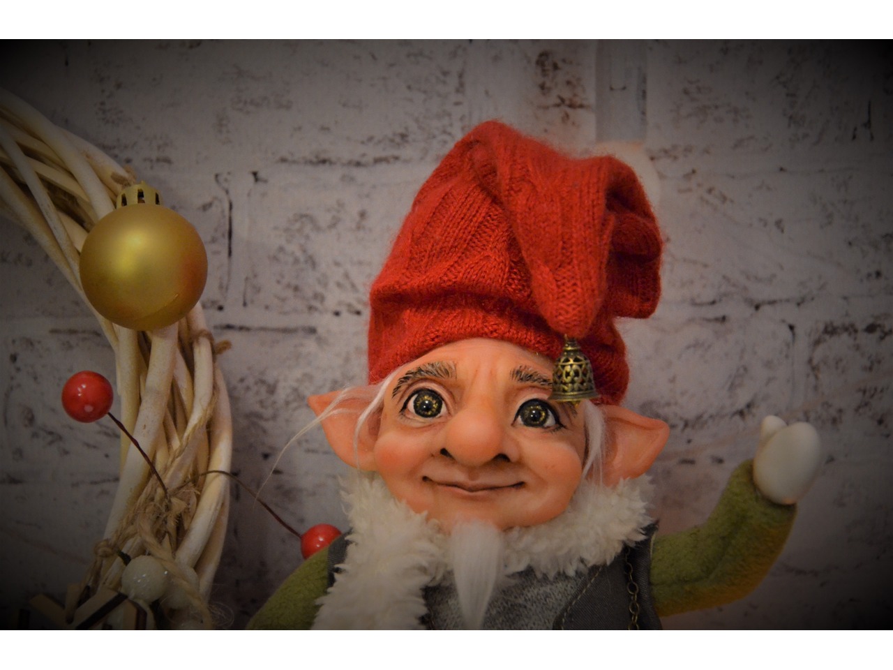 Этот рождественский гном — уникальная интерьерная кукла, созданная вручную в единственном экземпляре.Его образ продуман до мелочей: красная шапочка, зелёная курточка, серый жилет, клетчатые штаны и уютный белый шарф. Доброе лицо с румяными щёчками, выразительными глазами и мягкой улыбкой придаёт кукле живость и характер.Каждая деталь — от одежды до обуви — выполнена вручную с особым вниманием к текстурам и сочетанию цветов.Эта кукла не предназначена для игры — она является художественным объектом, который украсит ваш дом в зимние праздники, станет душевным подарком или частью коллекции авторских работ.