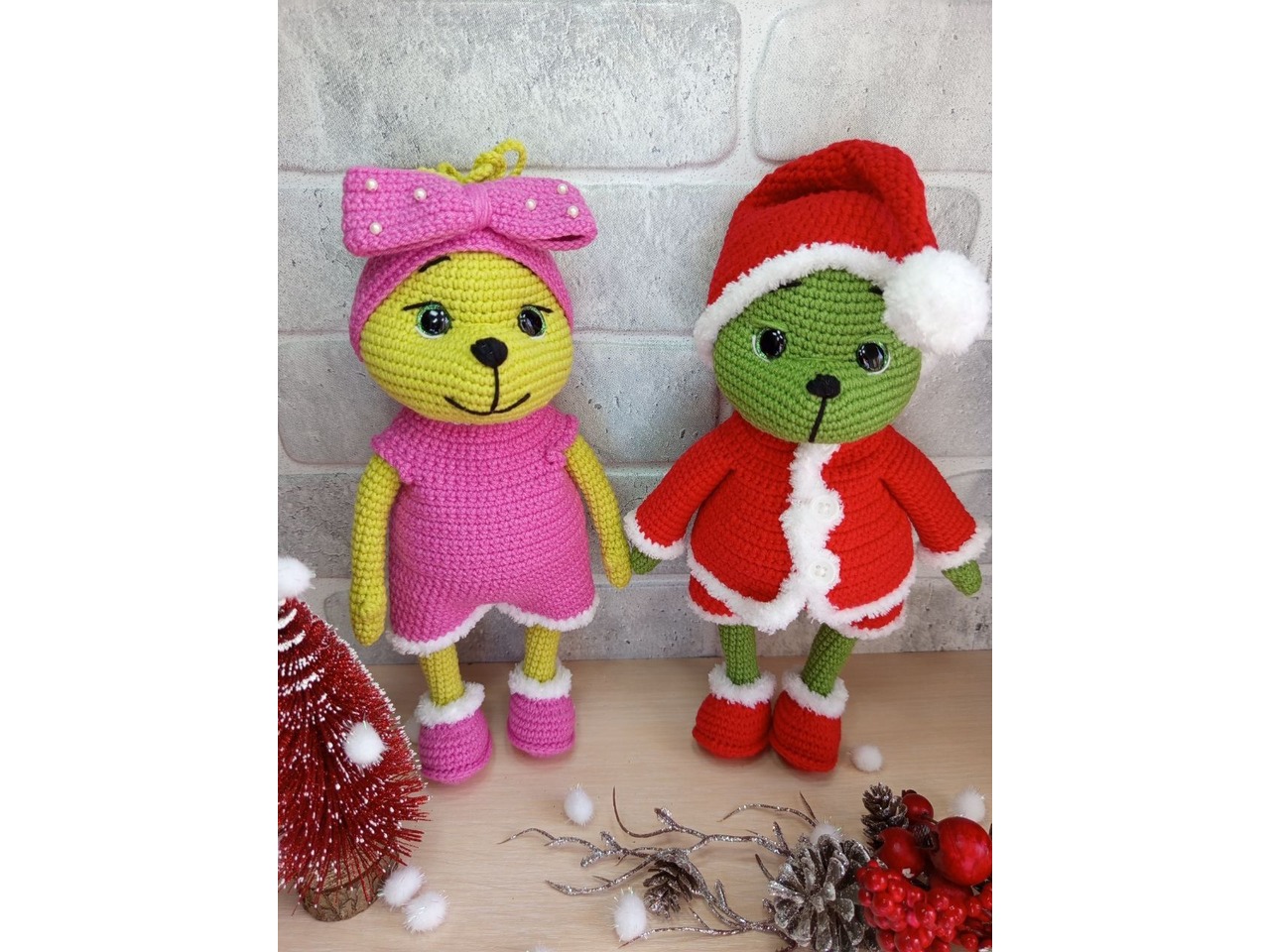 Грінч м'яка іграшка, ручна робота. Зріст - 27 см. Очі на безпечному кріпленні. Шапочка і одяг знімається.У Грінча є подружка у рожевому вбранні.