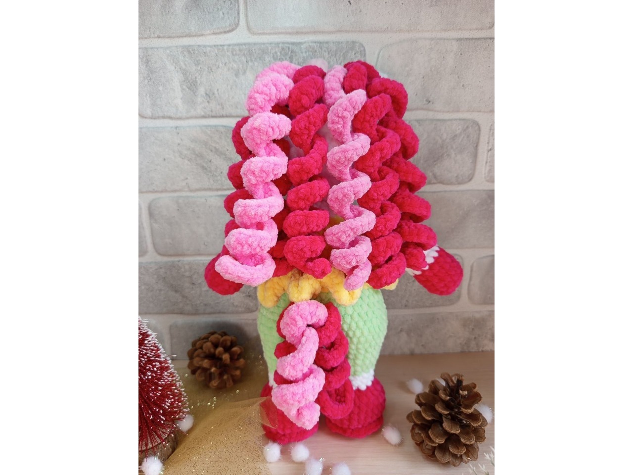 Гусеня з плюшу, зріст 28 см. Очі на безпечному кріпленні. Самостійно стояти не вміє. Наповнювач - холлофайбер. Відправляю у подарунковому пакеті та картонній коробці.
