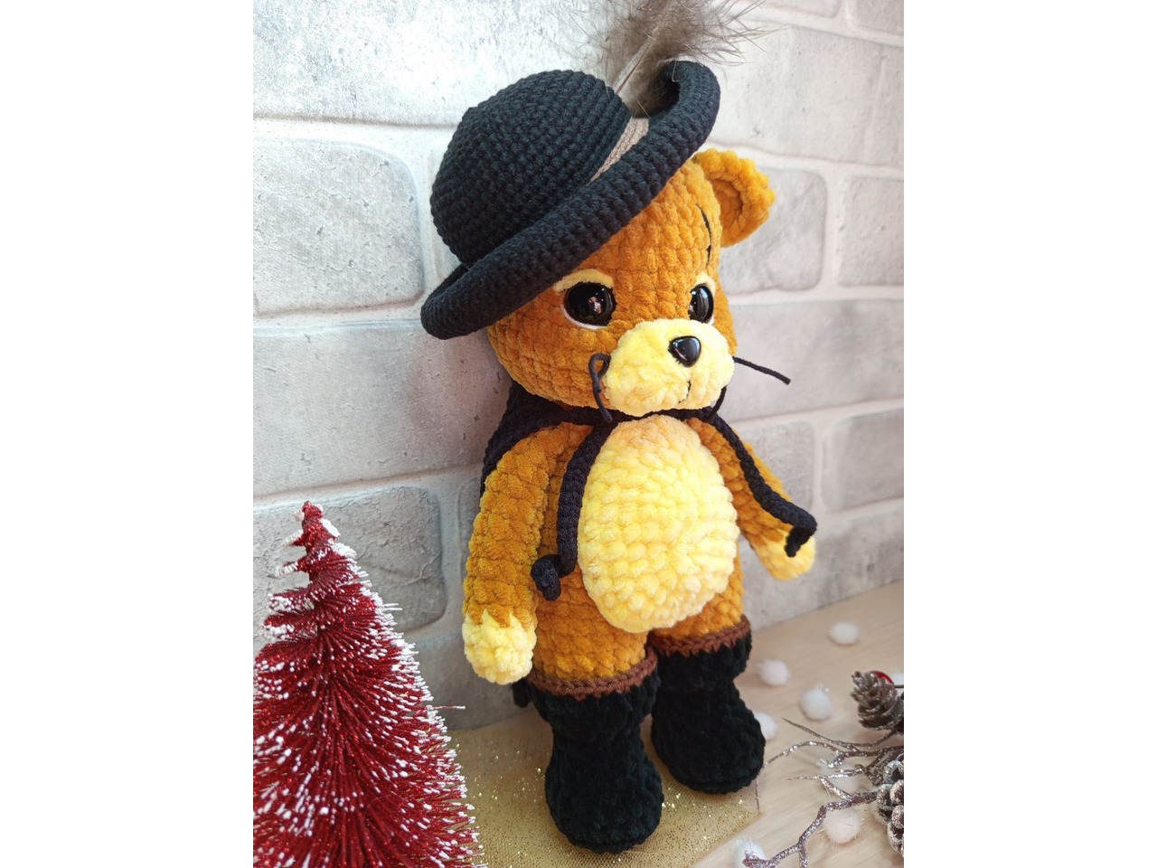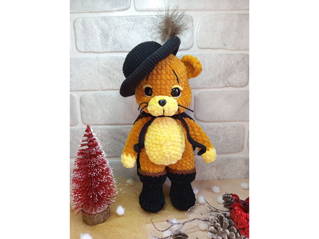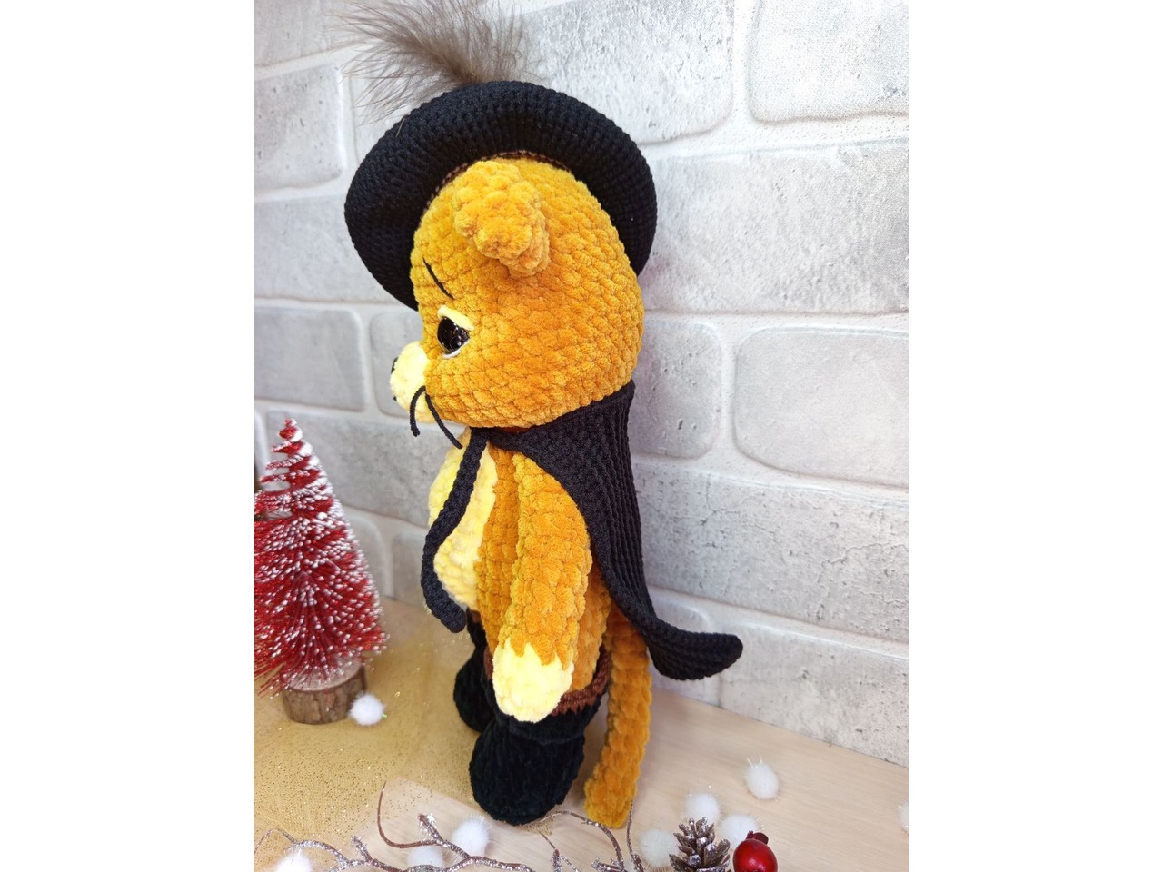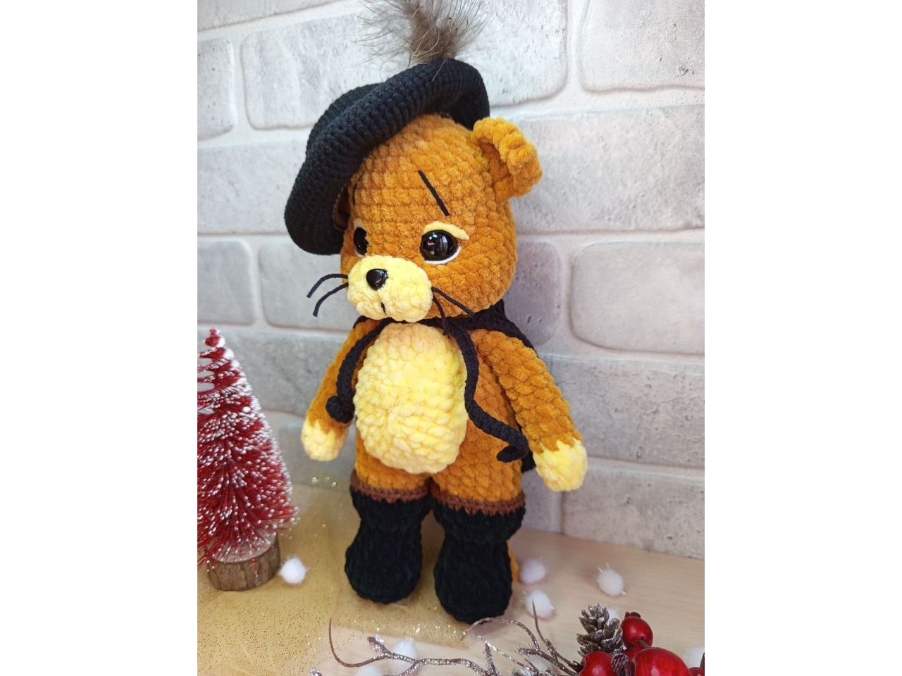 Кіт у чоботях, герой мультфільму, плюшева іграшка, ручна робота