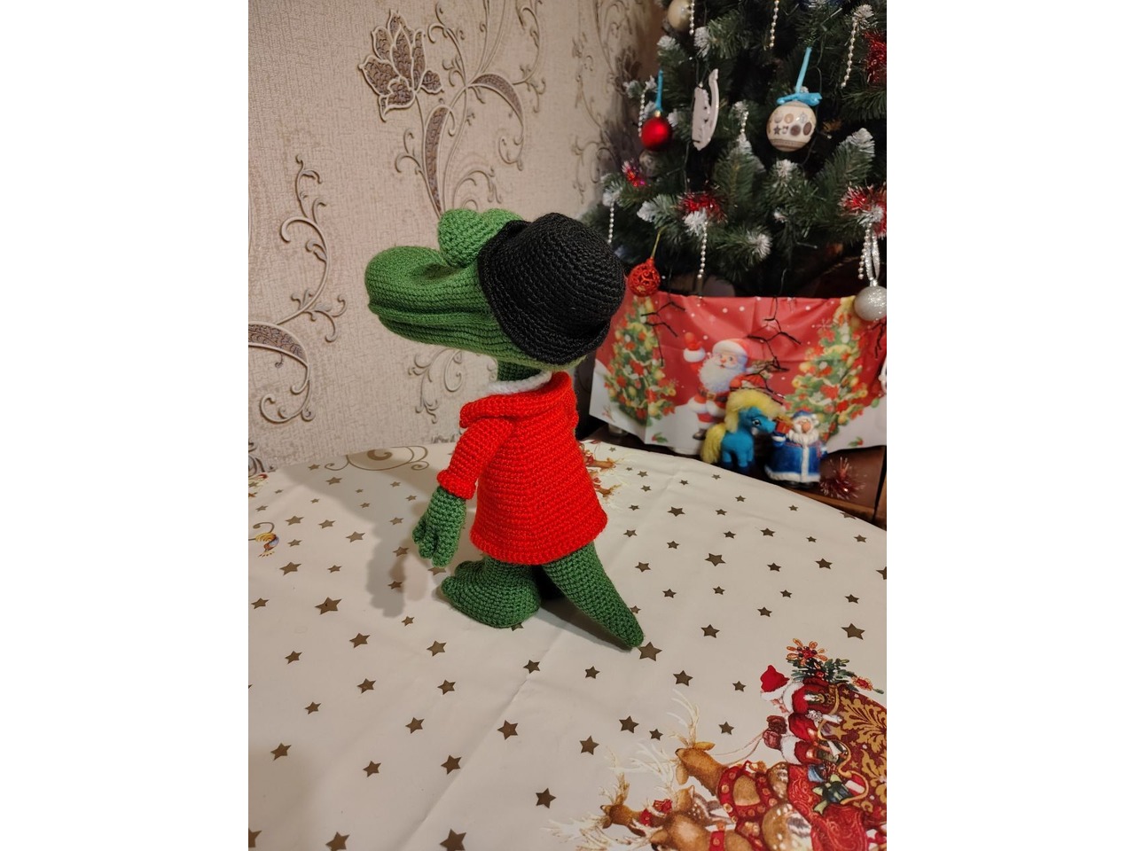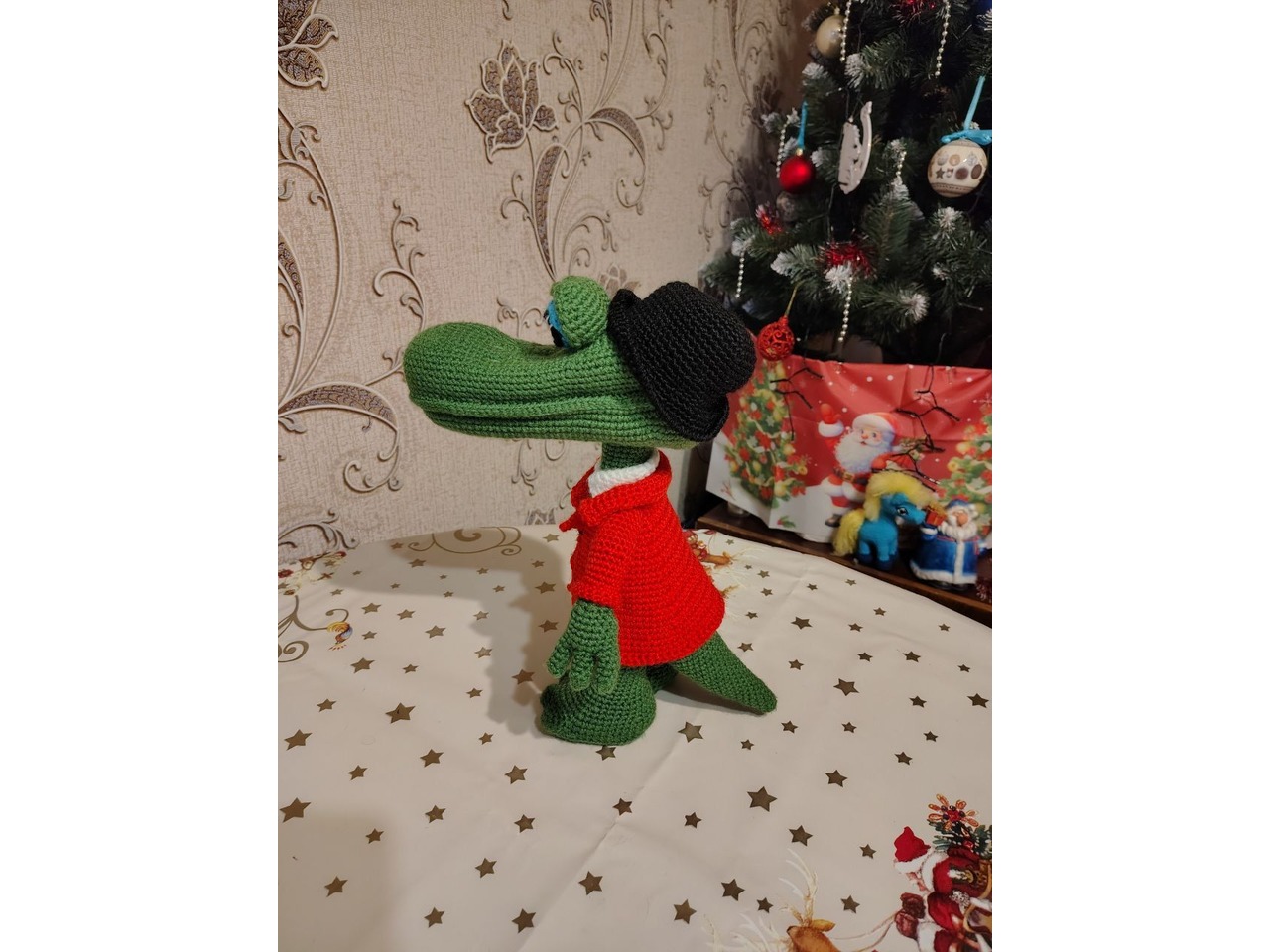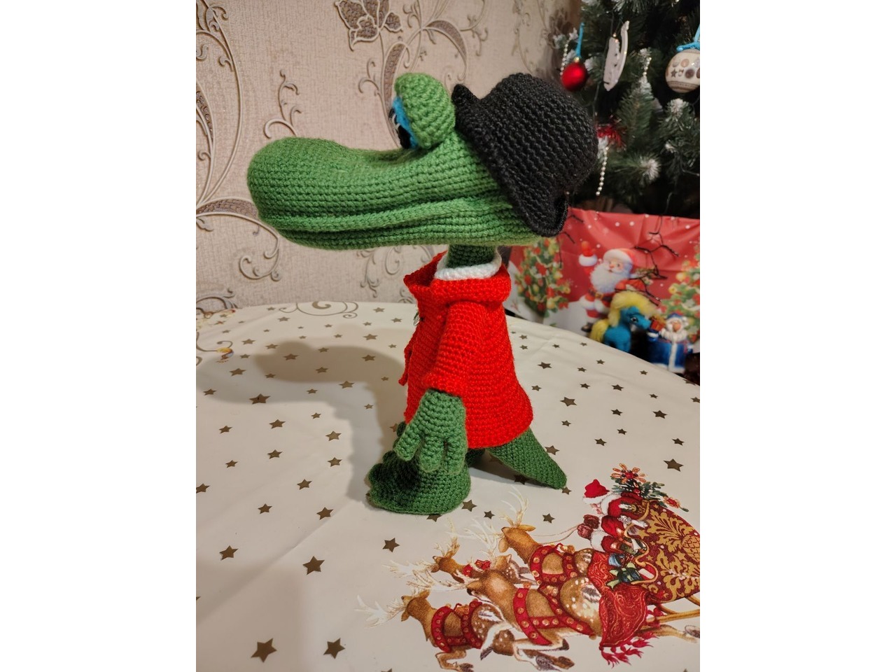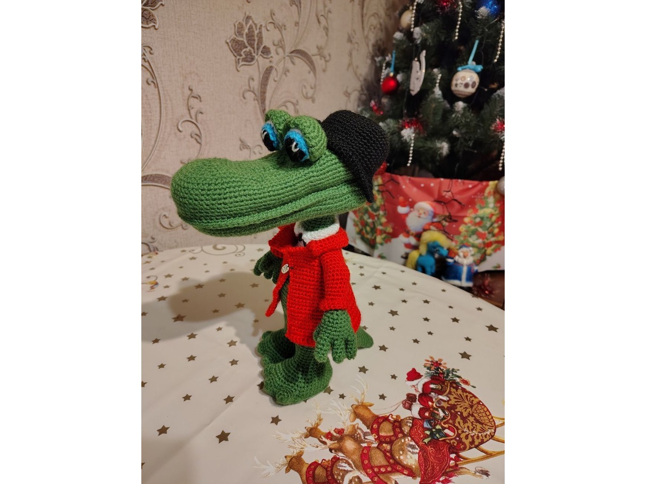 Крокодил Гена, 30 см висота, звязаний з акрилової пряжи, наповнювач - синтепон. Стоїть самостійно, безпечний для дітей.
