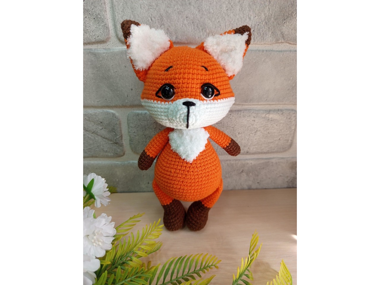 Лисеня зв'язане гачком. Зріст - 22 см. Очі на безпечному кріпленні. Самостійно не вміє стояти. Наповнювач - холлофайбер.Рекомендації щодо догляду: ручне прання, горизонтальне сушіння.