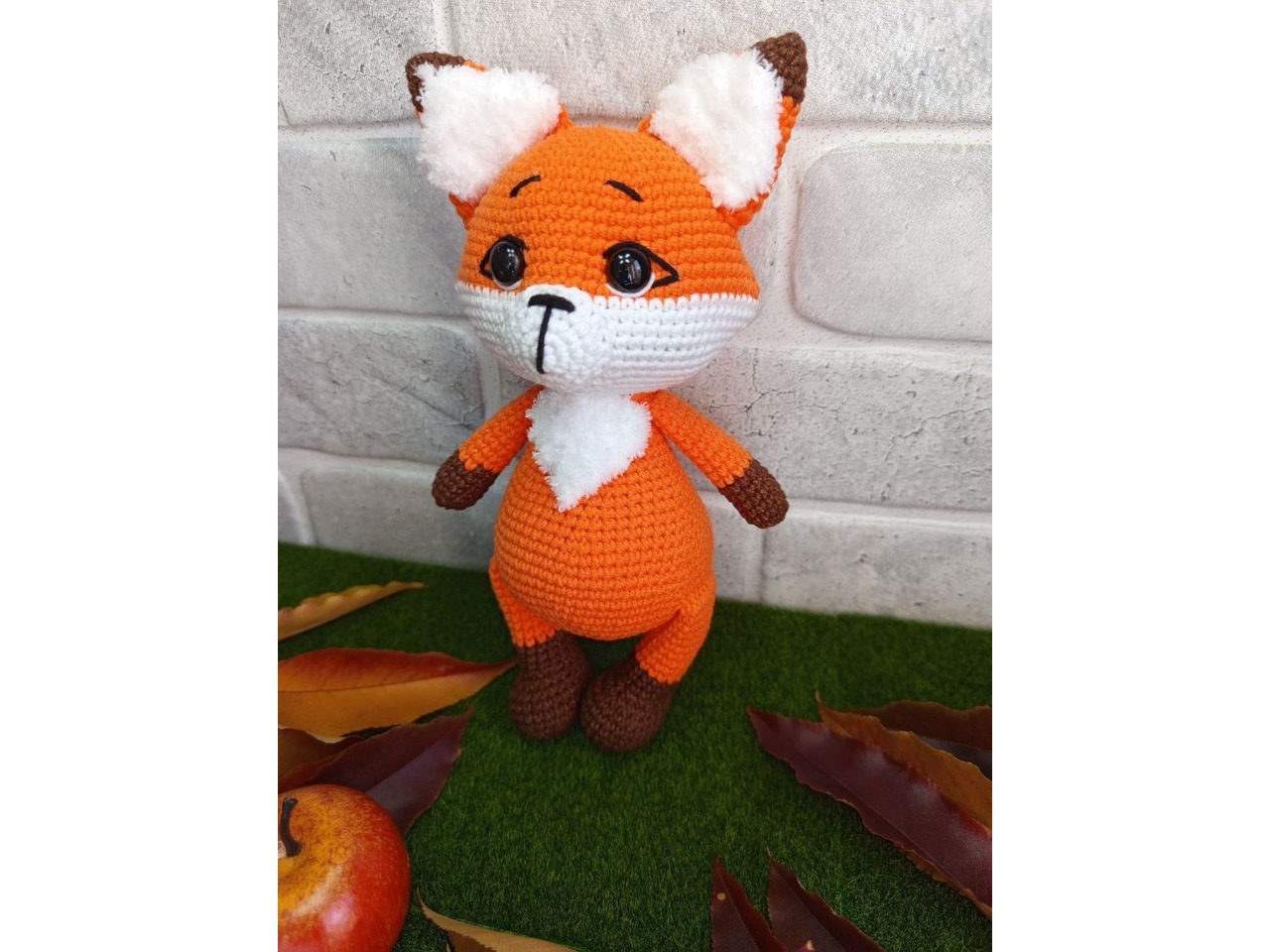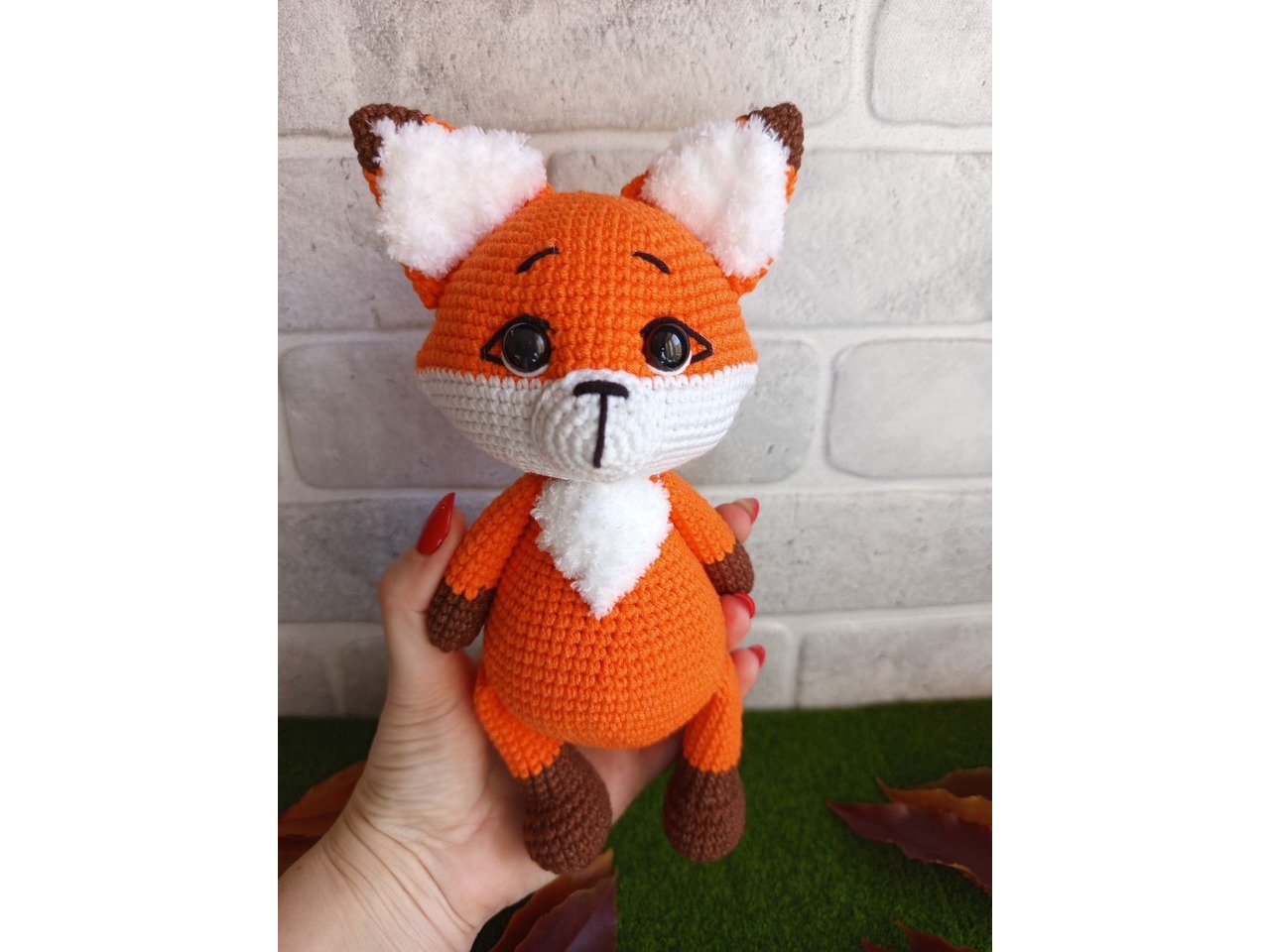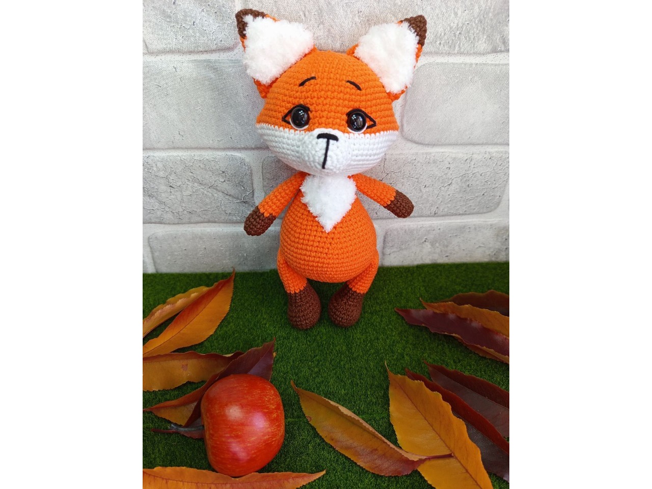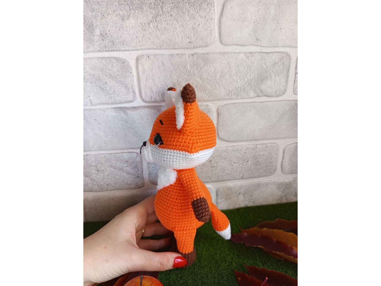 Лисичка зв'язана з гіпоалергенної пряжі. Зріст - 22 см. Самостійно стояти/сидіти не вміє. Очі на безпечному кріпленні.