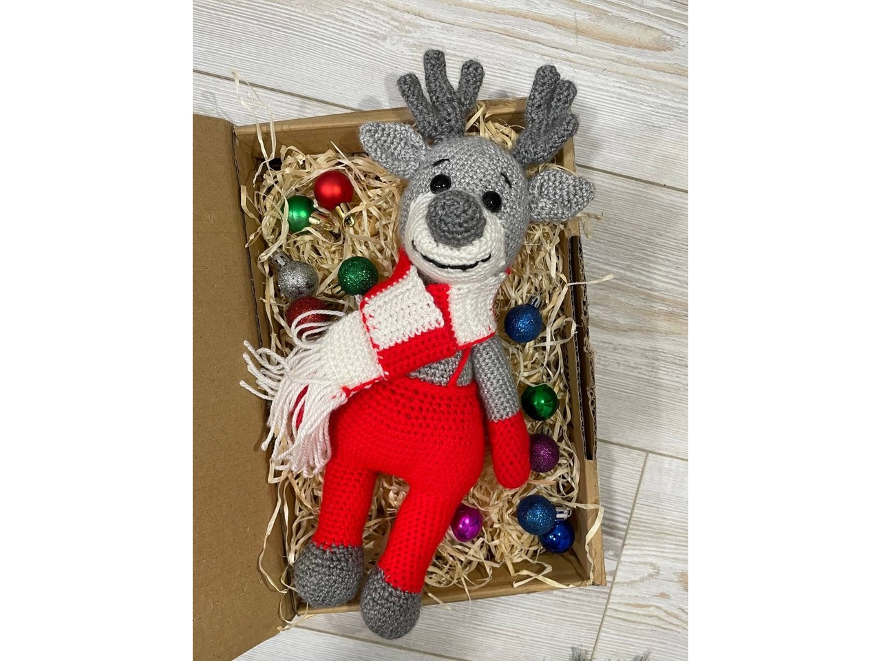 М'яка іграшка олень. За розміром 30 см. Акрилові нитки. В'язала таку іграшку майже 7 вечорів. Підійде на подарунок до Різдва. Можливе святкове пакування.