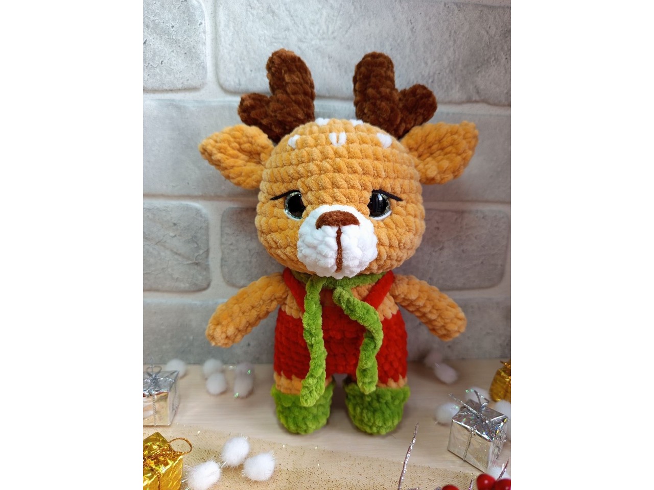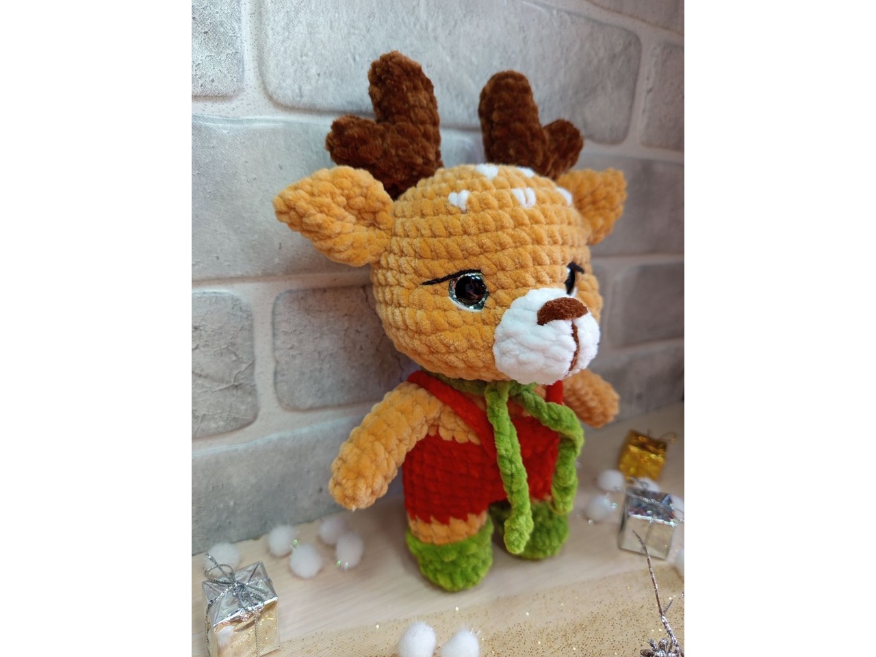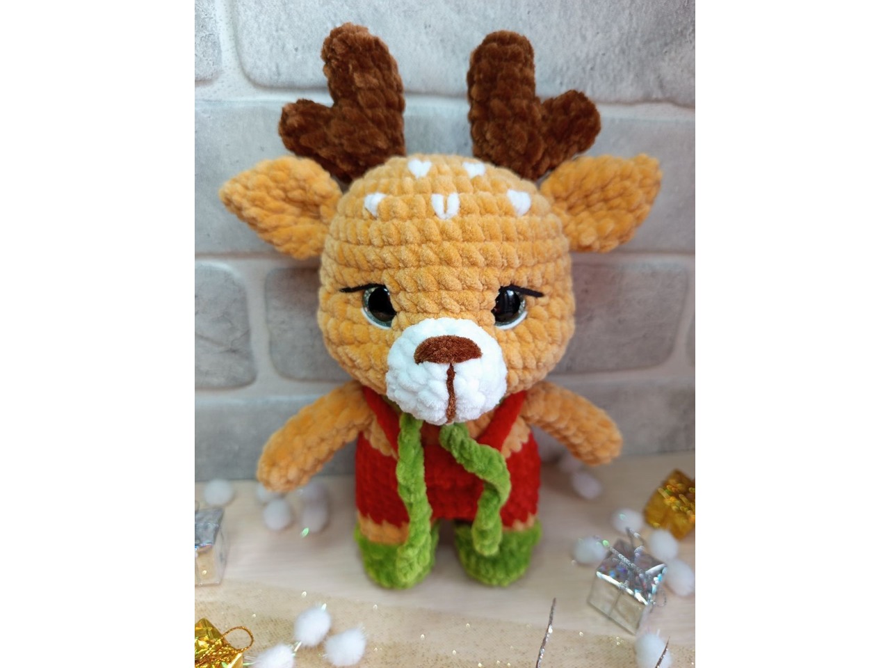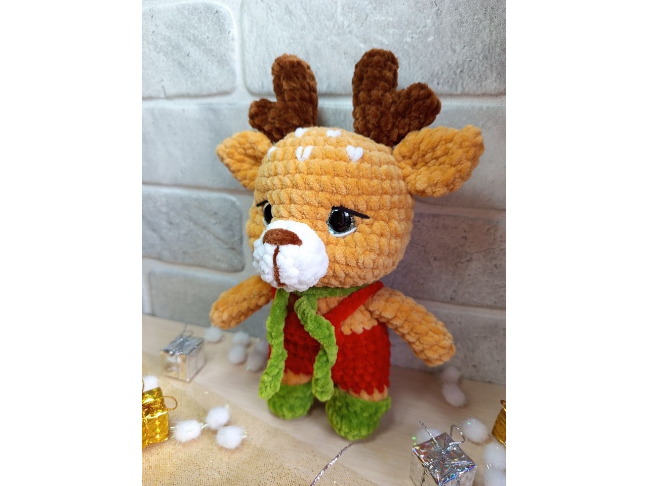 Оленятко плюшеве, зріст 22 см. Очі на безпечному кріпленні. Наповнювач - холлофайбер. Шарфик знімається.