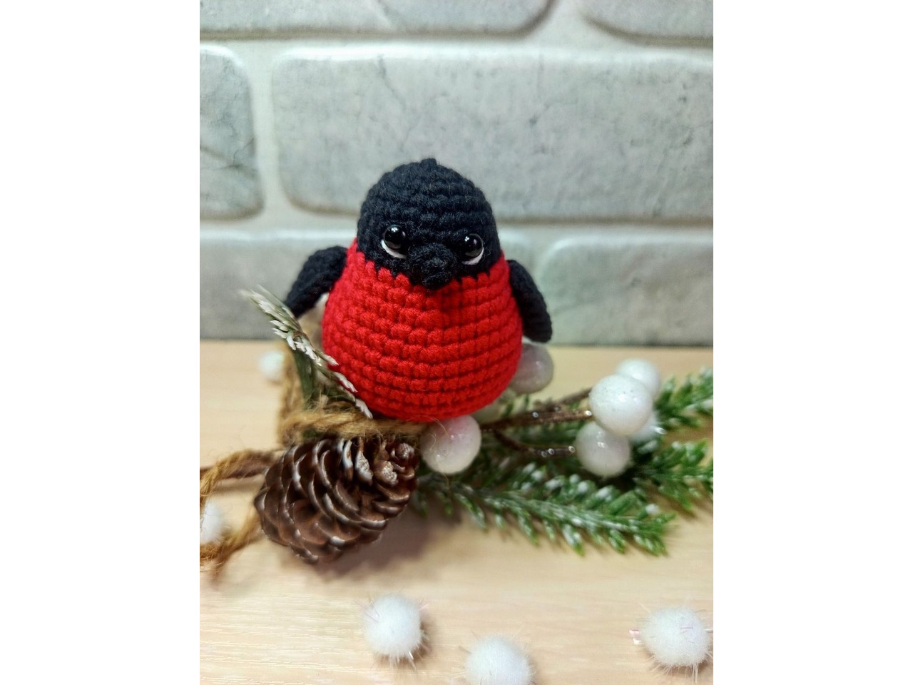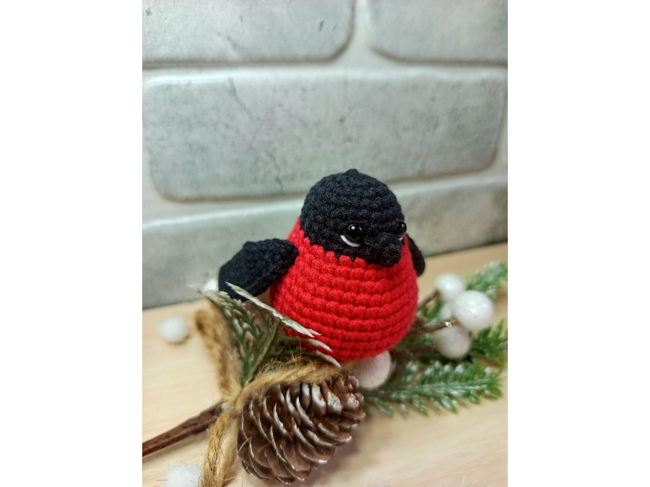 Пташка снігур, зріст - 5,5 см. Очі на безпечному кріпленні. Можна використовувати для гри або в якості декорації на ялинку чи брелока. За Вашим бажанням можна закріпити ниточку/стрічку або кільце брелока (+5 грн).