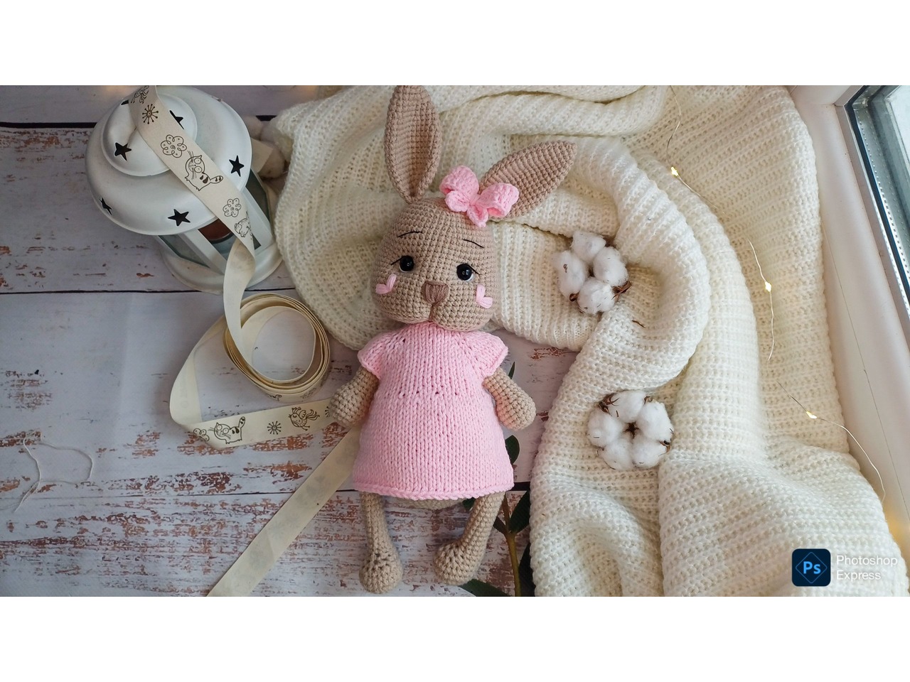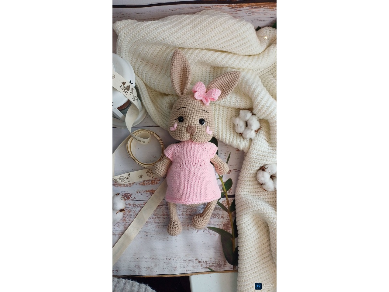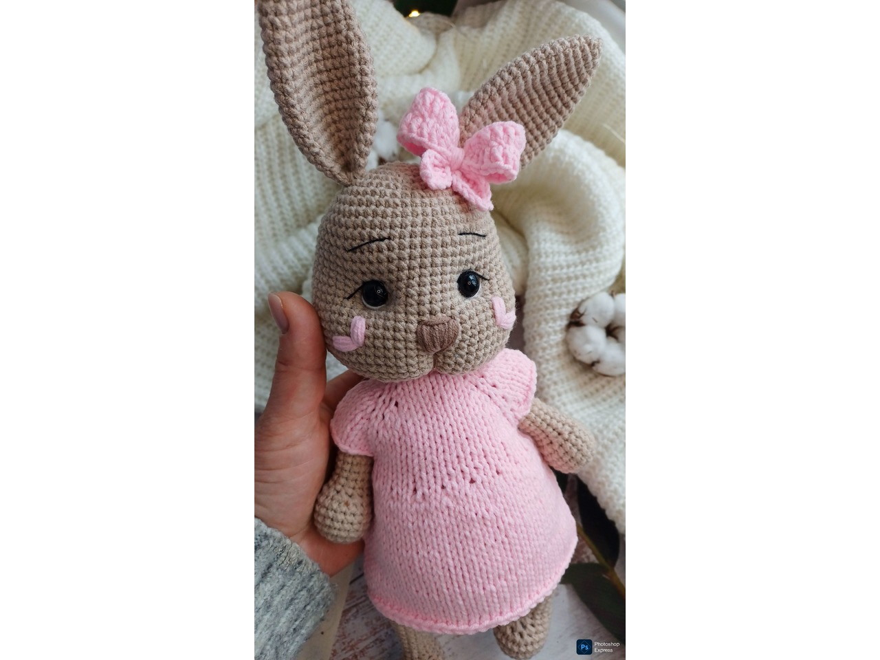 В'язана зайка в рожевій сукні амі4