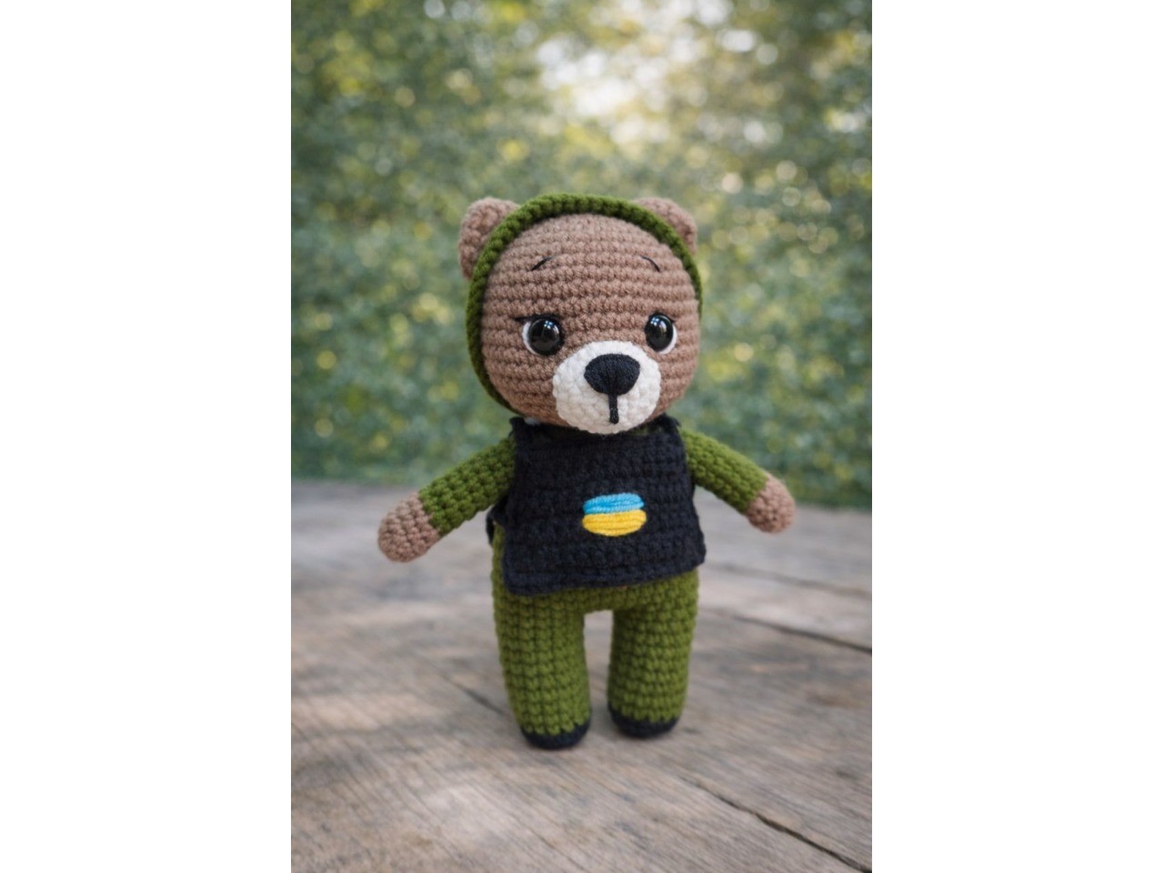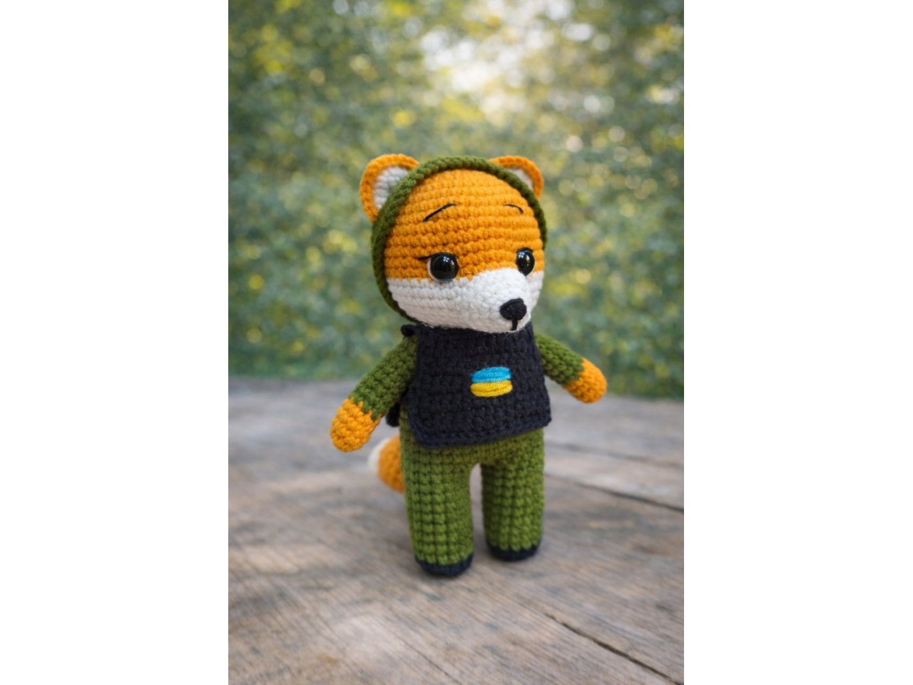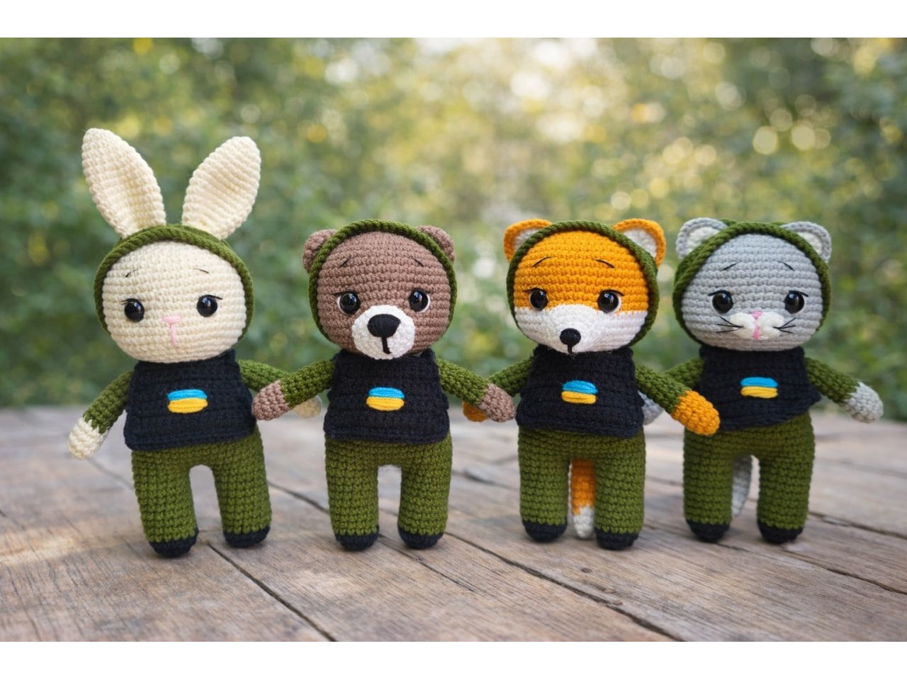 Ціна вказана за одну іграшку. Іграшки ручної роботи. В'язані талісмани, ведмедик (15 см), котик (15 см), лисичка (15 см), зайчик (19 см разом з вушками). Воїни ЗСУ. Очі на безпечному кріпленні. Каски знімаються. За бажанням можна пришити їх і закріпити ниточку, використовуючи в вигляді брелока.Відправляю у прозорому подарунковому пакеті та картонній поштовій коробкі.
