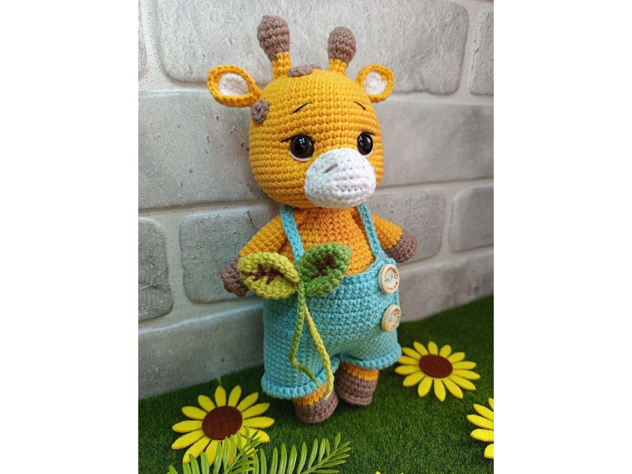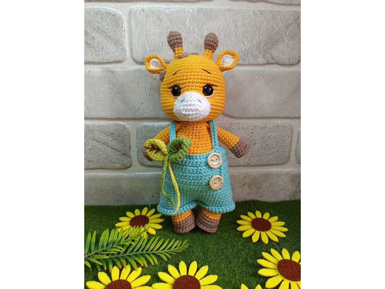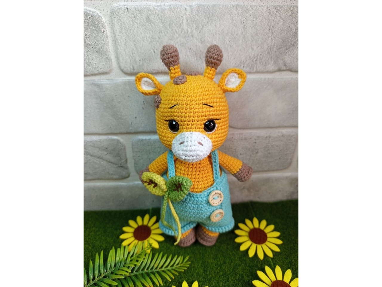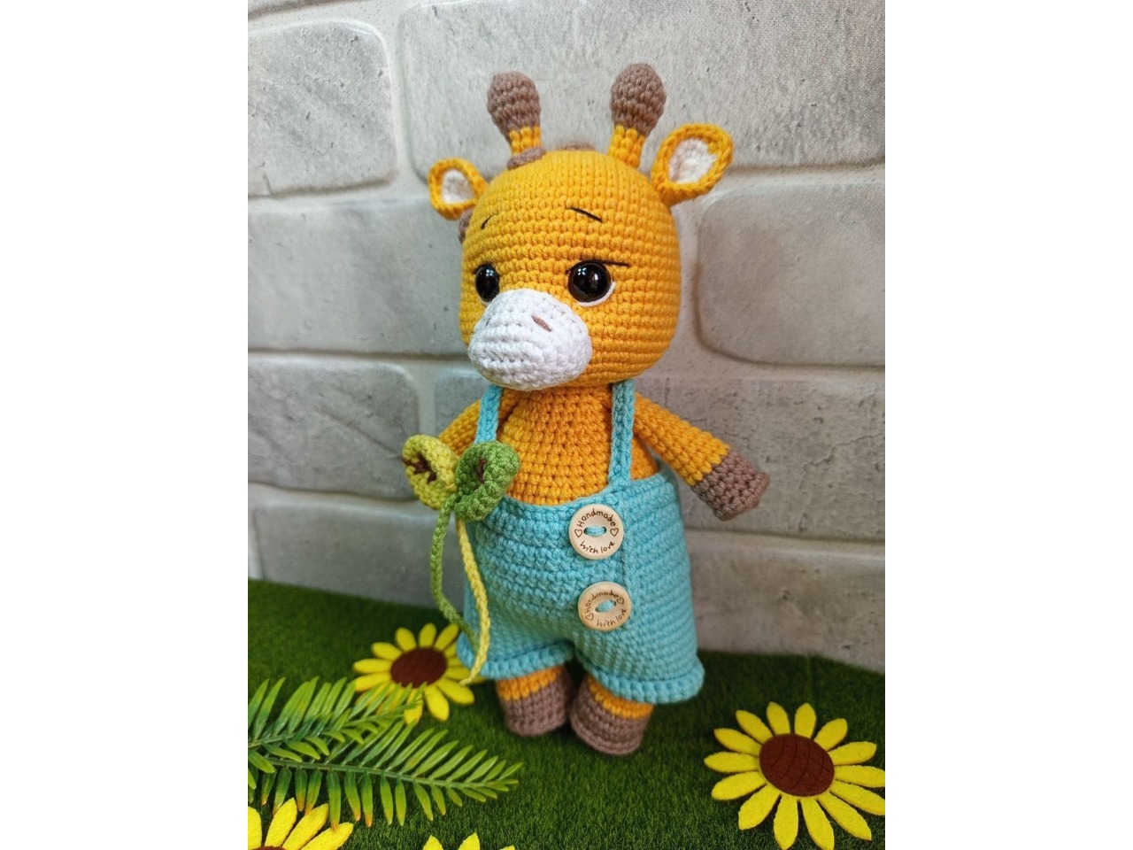 Жирафчик у штанцях. Зріст 22 см. Очі на безпечному кріпленні. Штанці знімаються. Наповнювач - холлофайбер.