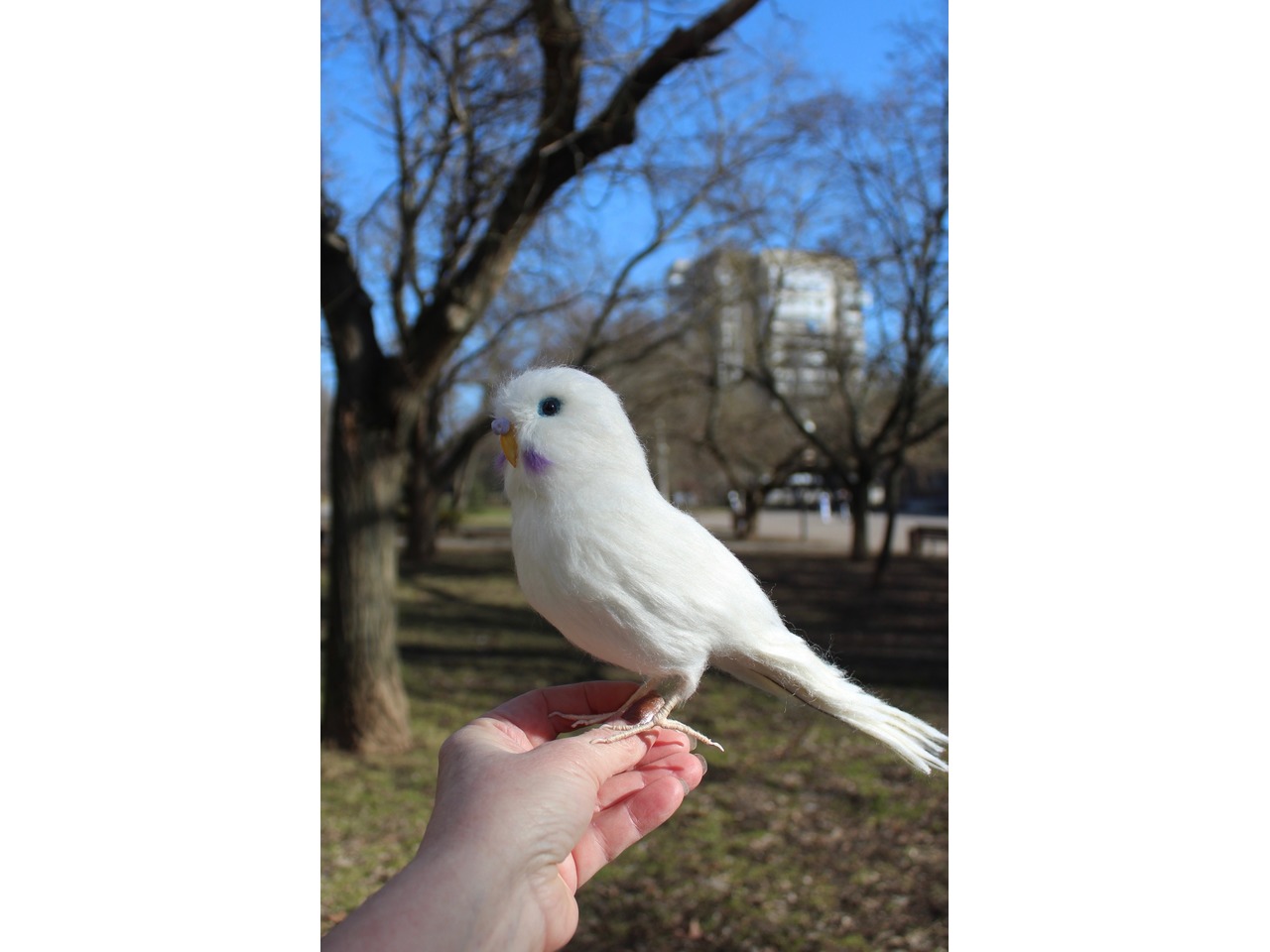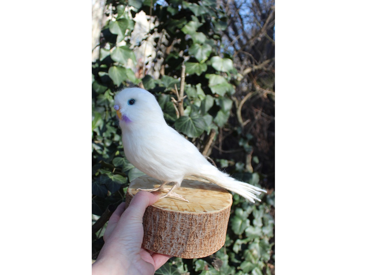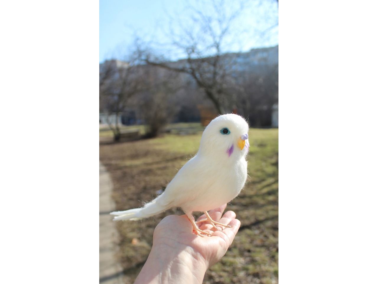 Білий папужка валяний з шерсті. Іграшка інтерєрна ручної роботи. Войлочна скульптура з шерсті. Висота 15 см, длина 27см, лапки на каркасі, клювик ручної лепки та розпису, кожне пірьячко зроблено окремо. Дуже блискучий та яскравий попугайчик. Чудовий подарунок. Стане прикрасою вашого інтерʼєру та буде радувати вас і наповнювати гарним настроєм та позитивом.felting_pets