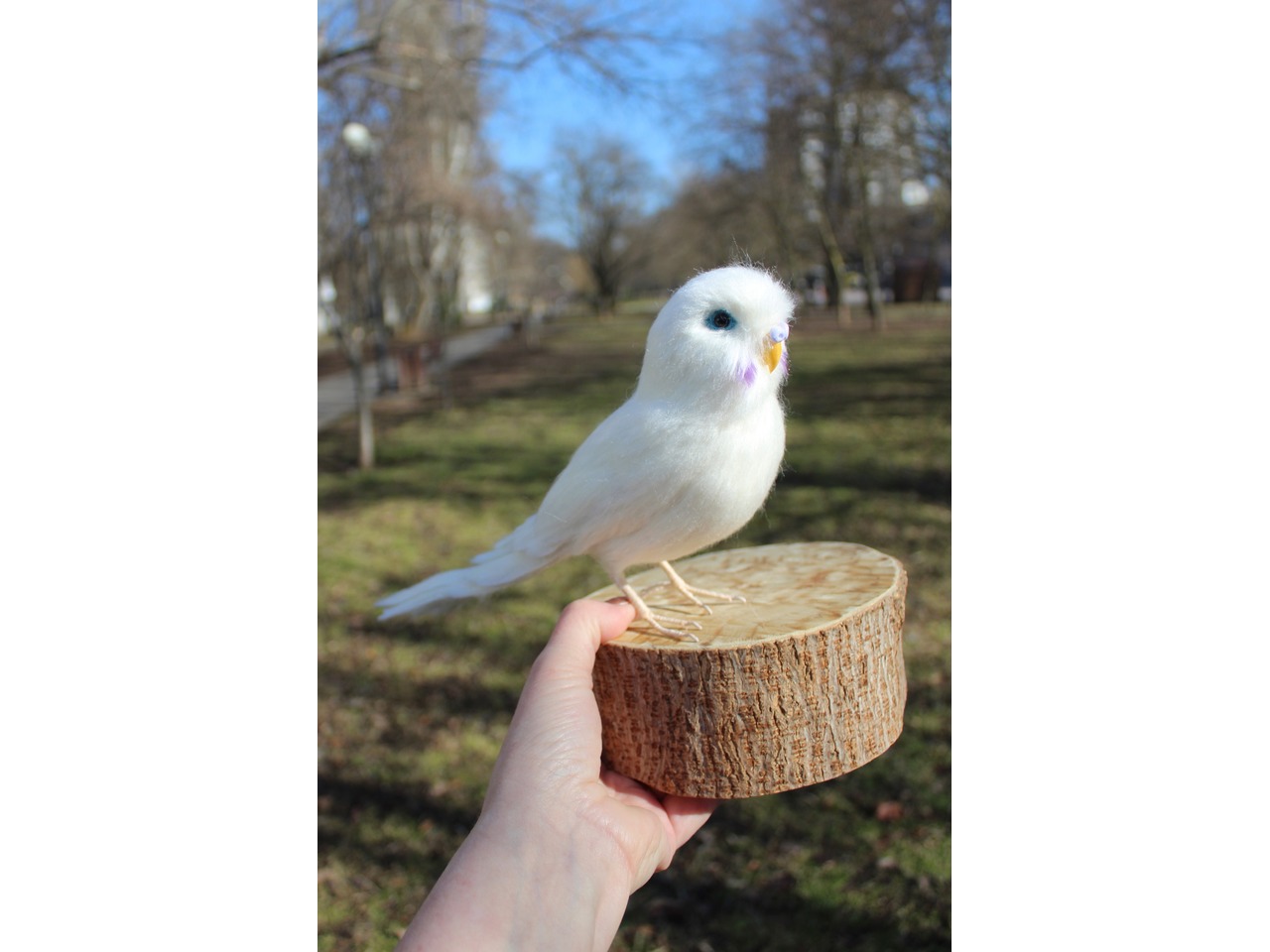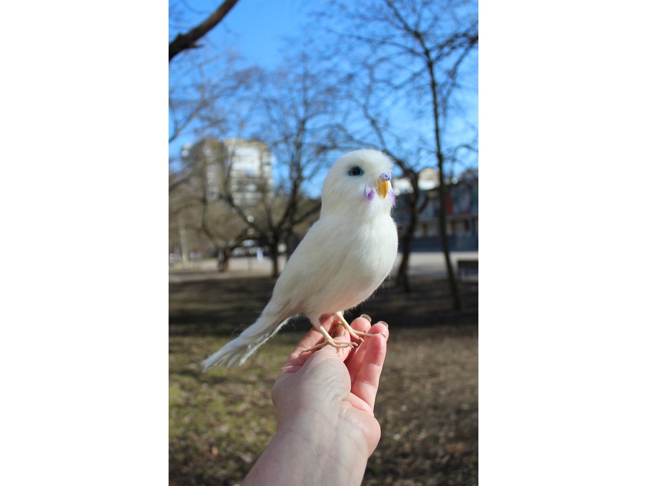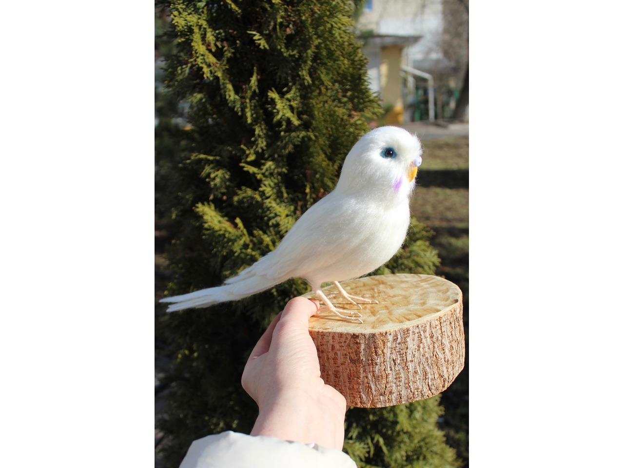Білий папужка валяний з шерсті. Іграшка інтерєрна ручної роботи. Войлочна скульптура з шерсті. Висота 15 см, длина 27см, лапки на каркасі, клювик ручної лепки та розпису, кожне пірьячко зроблено окремо. Дуже блискучий та яскравий попугайчик. Чудовий подарунок. Стане прикрасою вашого інтерʼєру та буде радувати вас і наповнювати гарним настроєм та позитивом.felting_pets
