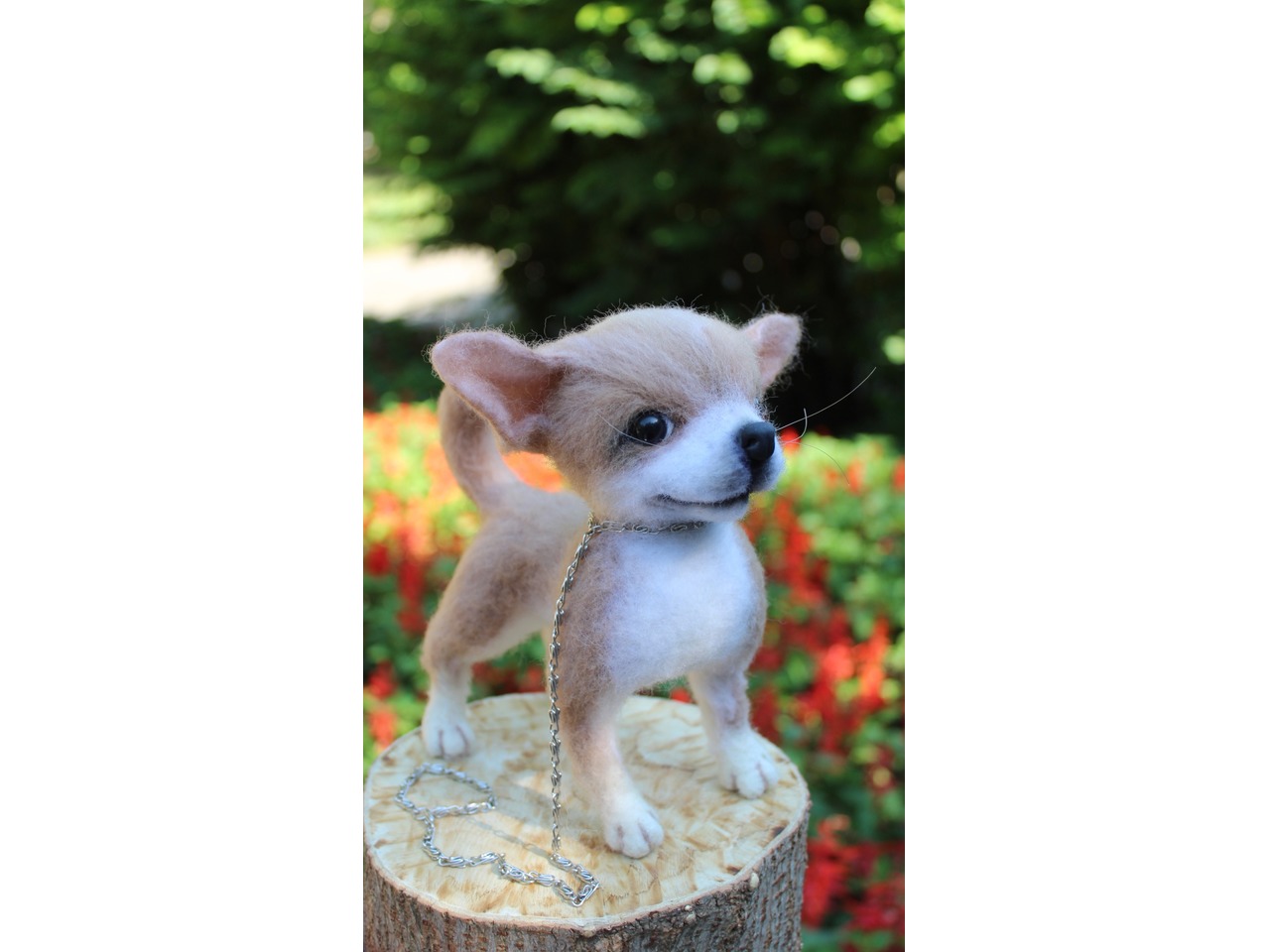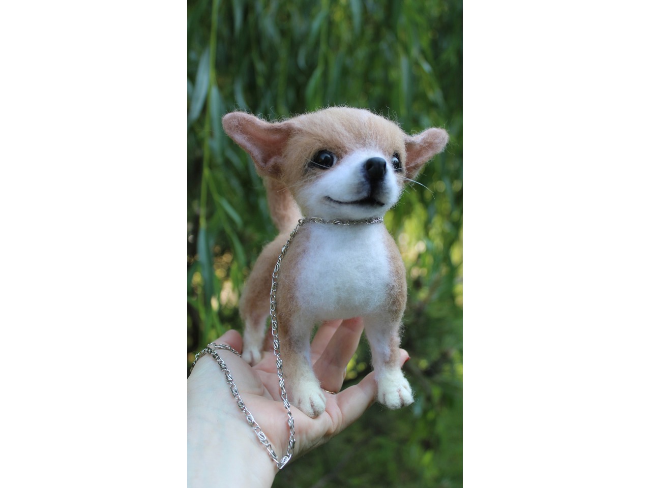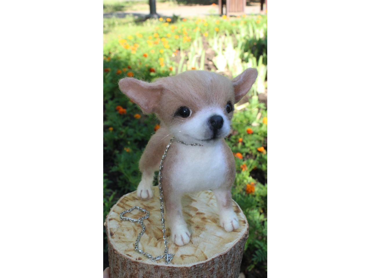 Чихуахуа реалістична собачка валяна іграшка . Маленьке пухнасте шерстяне диво у мене вийшло.Висота 18 см, длина 18 см, на каркасі, лапки, хвіст та голова рухливі. Мініатюра войлочного пітомца .Іграшка інтерєрна. Собачка позитивна, весела та гарна. Стане улюбленцем і буде наповнювати гарним настроєм та щастям. Зроблена з душою та любовʼю. Чекає новий будиночок.