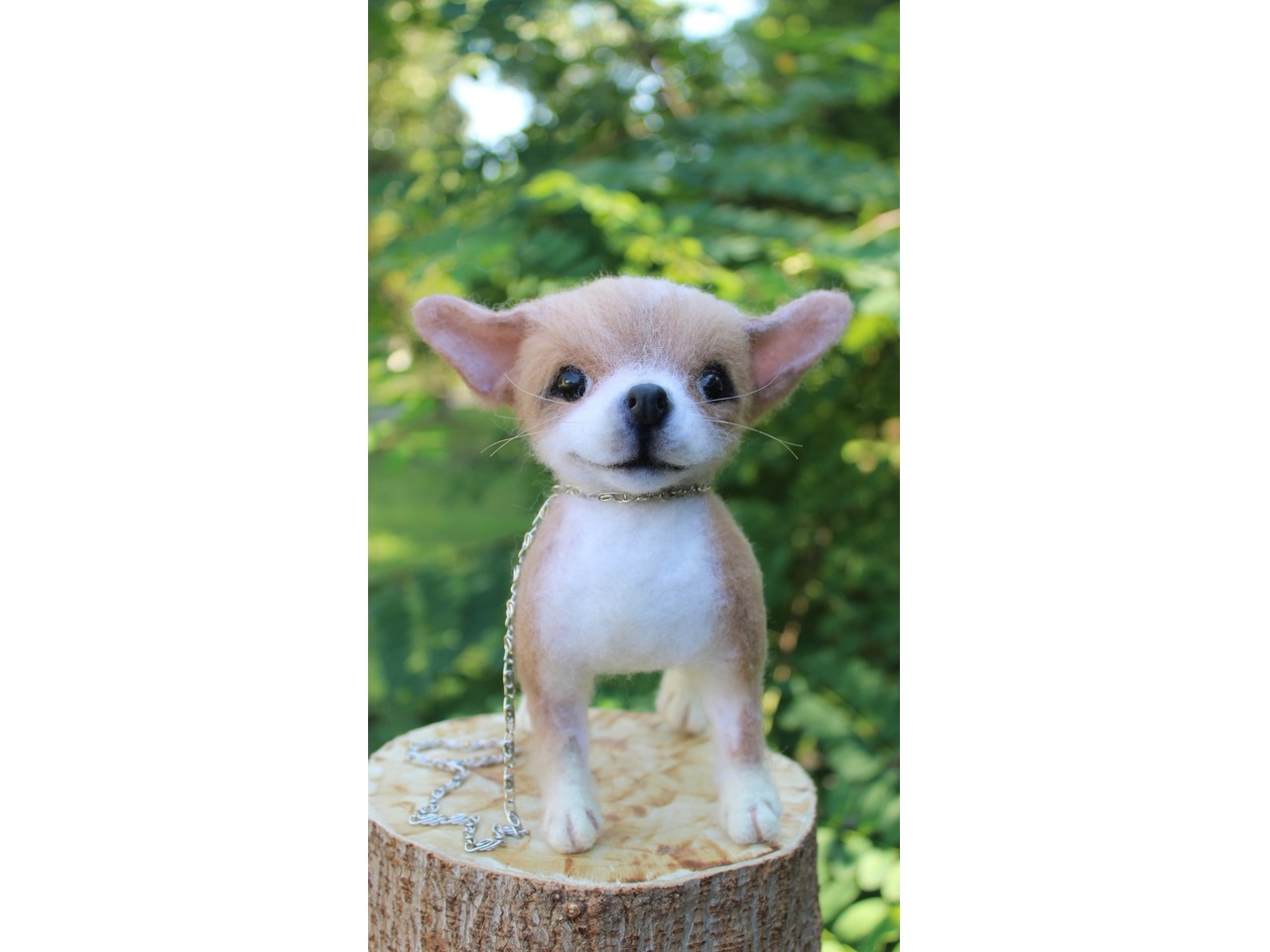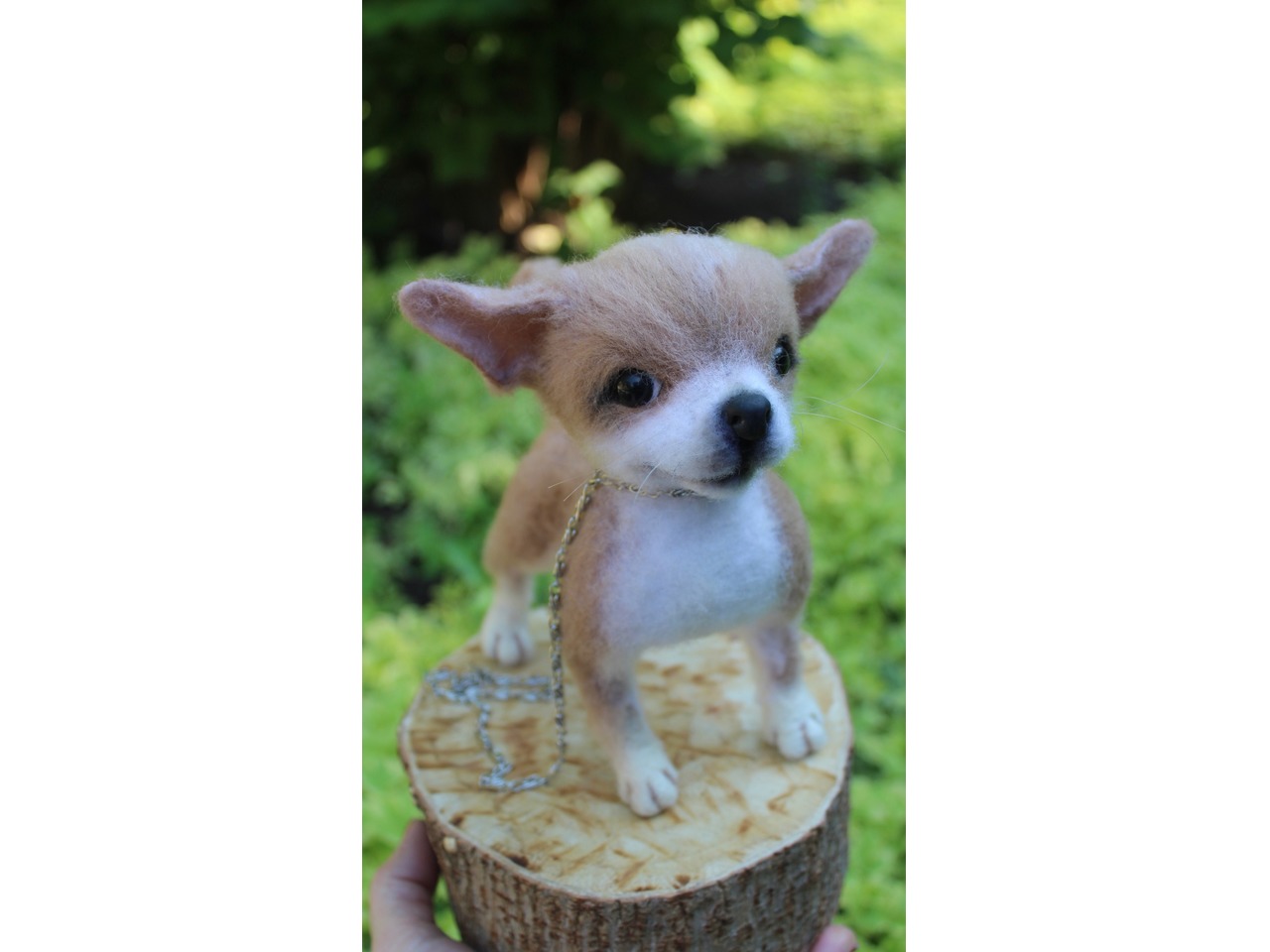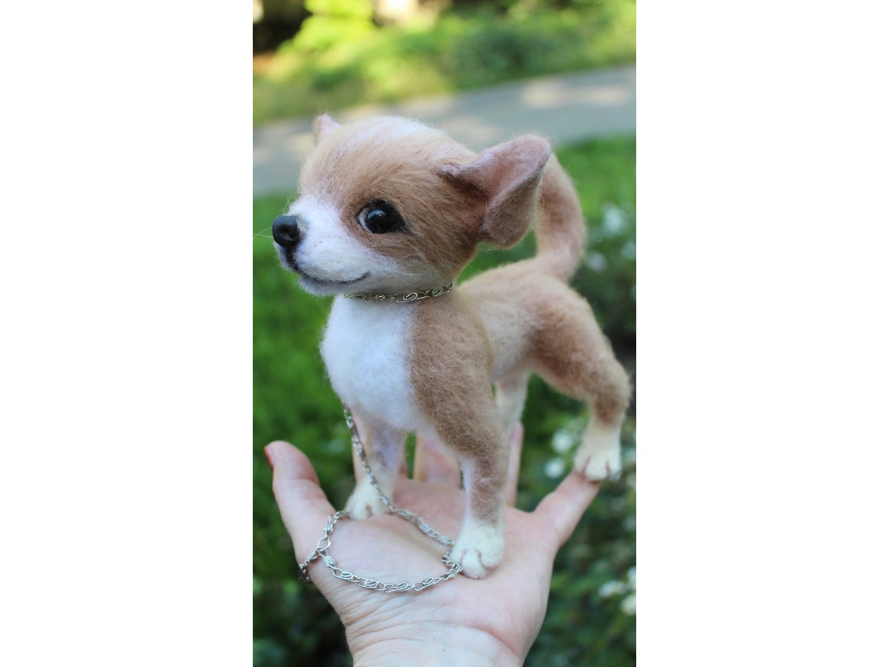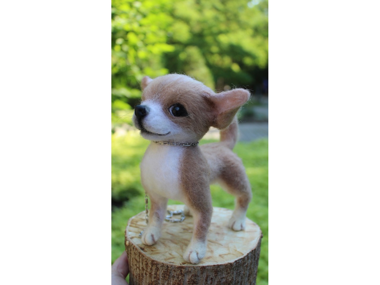 Чихуахуа реалістична собачка валяна іграшка . Маленьке пухнасте шерстяне диво у мене вийшло.Висота 18 см, длина 18 см, на каркасі, лапки, хвіст та голова рухливі. Мініатюра войлочного пітомца .Іграшка інтерєрна. Собачка позитивна, весела та гарна. Стане улюбленцем і буде наповнювати гарним настроєм та щастям. Зроблена з душою та любовʼю. Чекає новий будиночок.