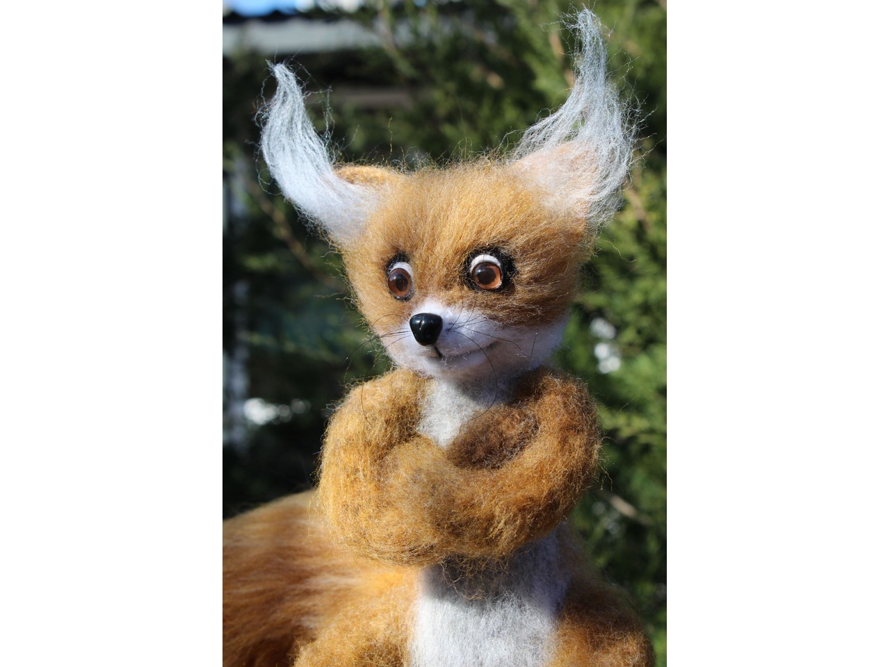ЛИСА УПОРОТАЯ игрушка валяная из шерсти интерьерная подарок сувенир лис