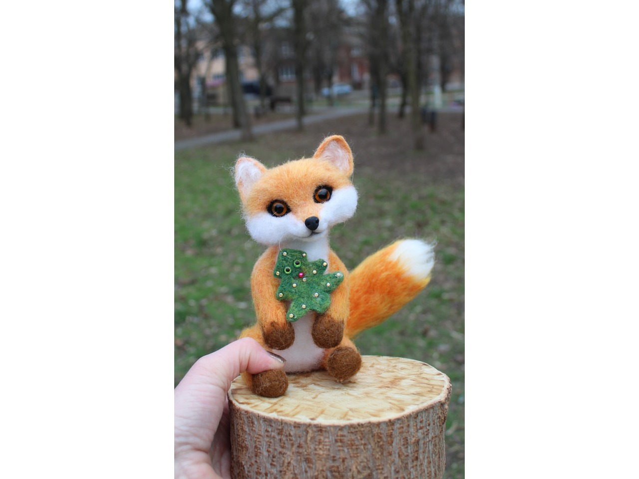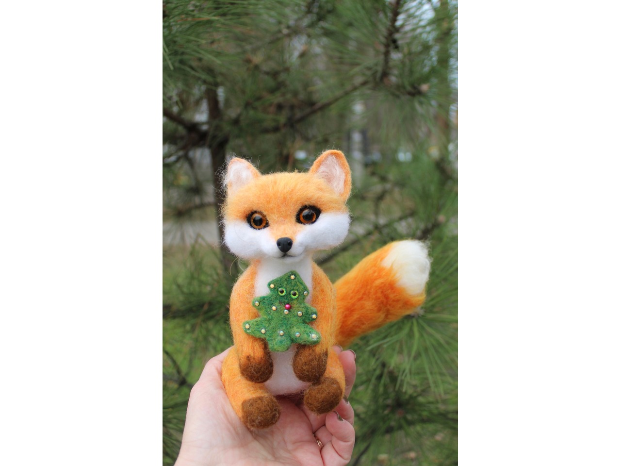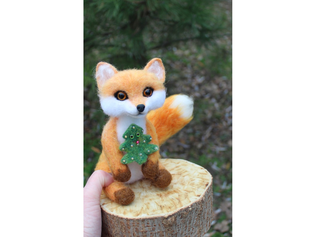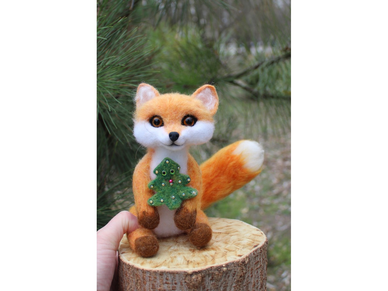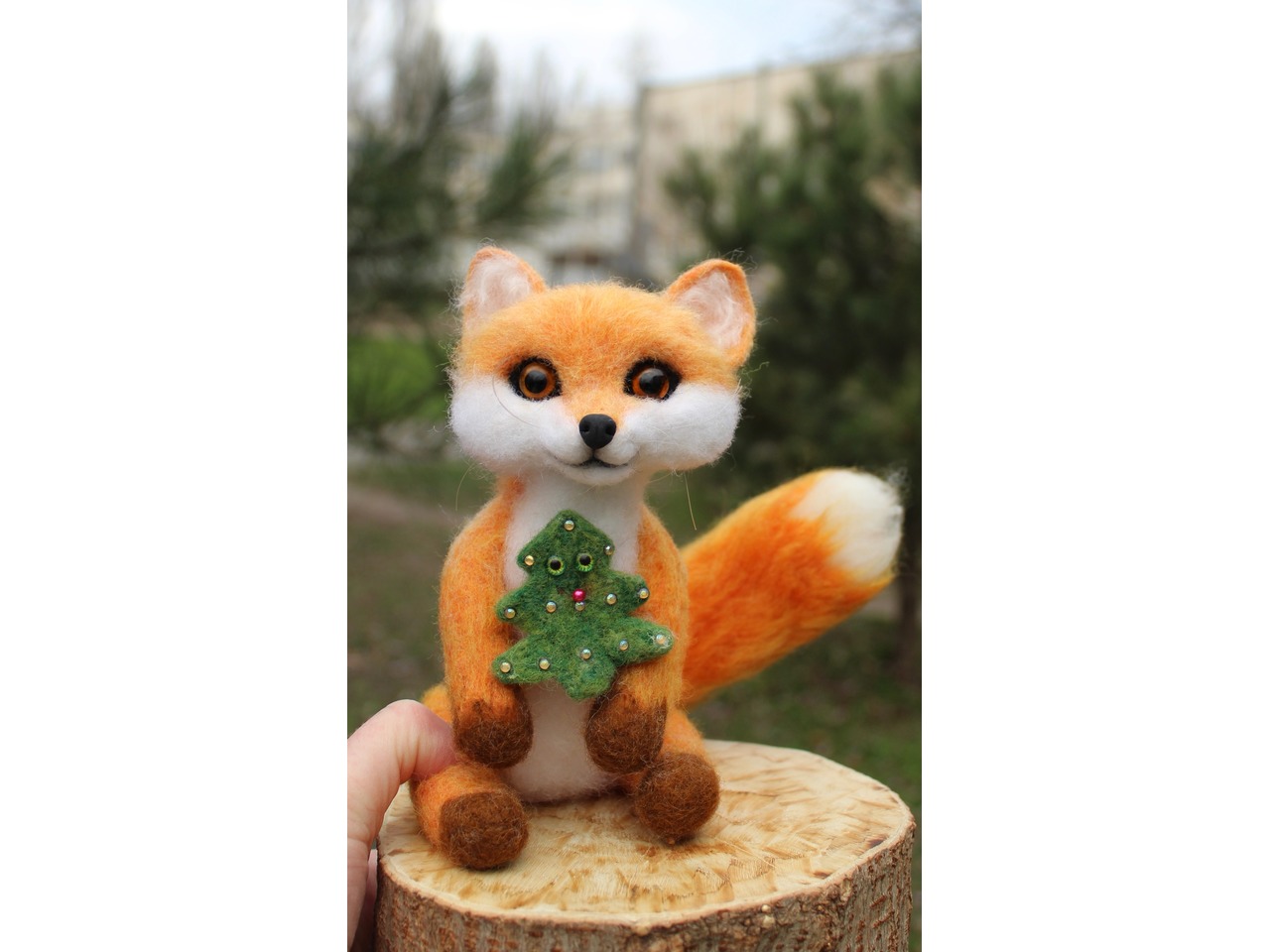 Лисенок з ялинкою іграшка валяна з шерсті інтерєрна . На каркасі, носик ручної лепки та розпису, дуже блискуча та шовковисто шерстяна лисичка. Висота 17 см ( голова і туловище без учена задніх лап )+ шикарний хвіст у красуні. В подарунок йде ялиночка з зеленими оченятами, вона знімається і може використовуватися як окрема прикраса. Позитивна лисичка гарна прикраса інтерʼєру і чудовий подарунок як дорослому так і дитині. Іграшка інтерʼєрна лиса.felting_pets