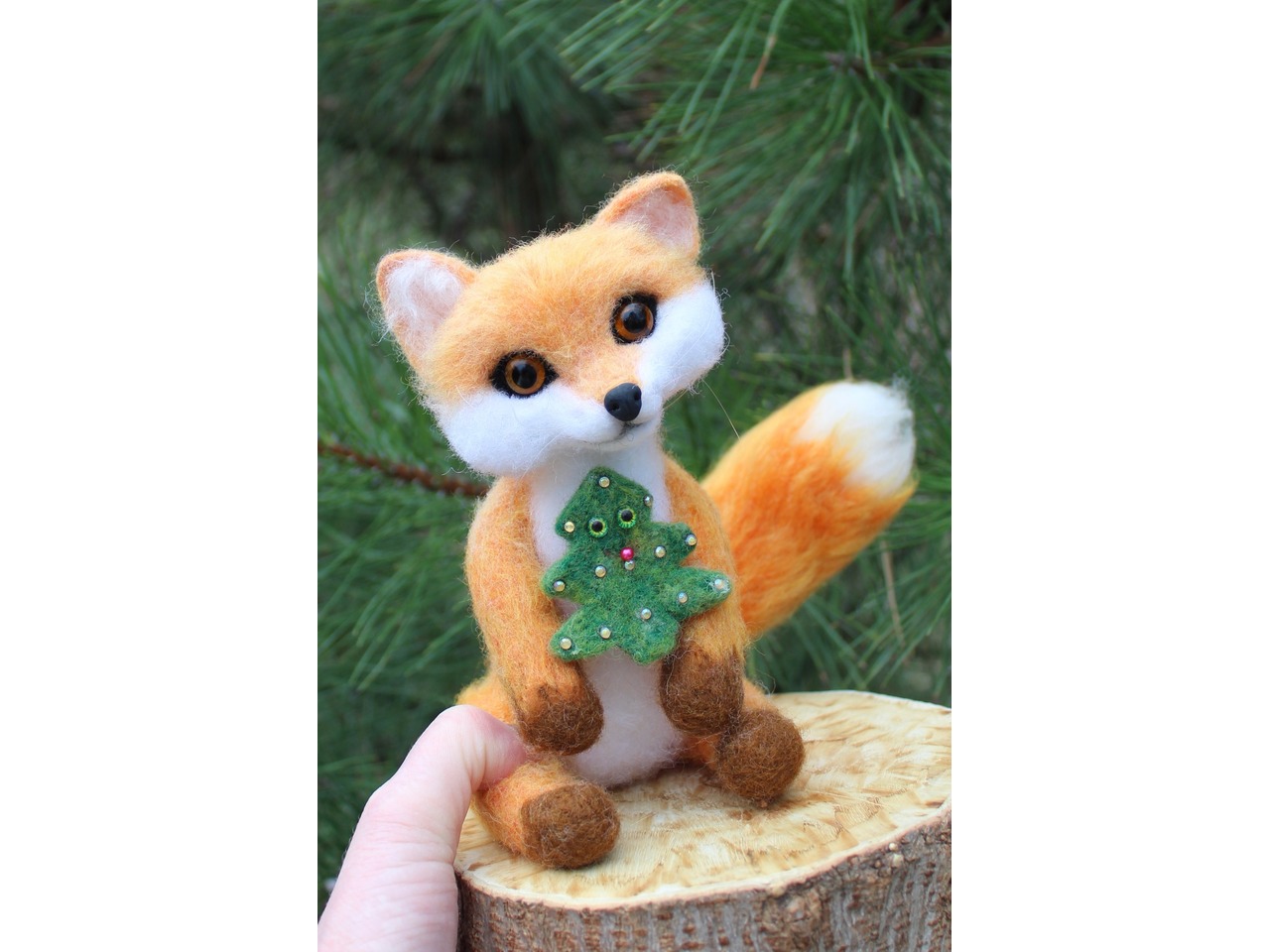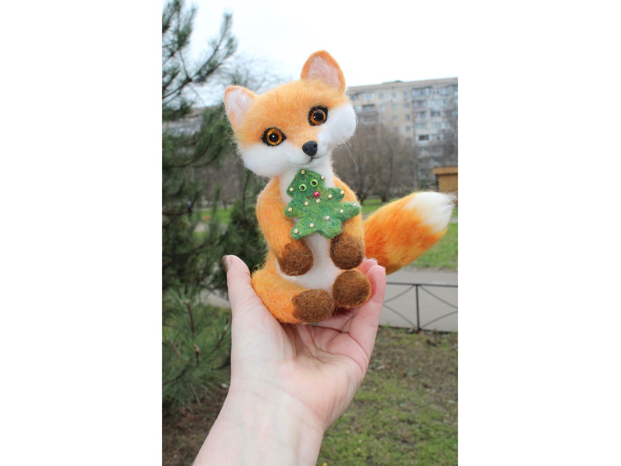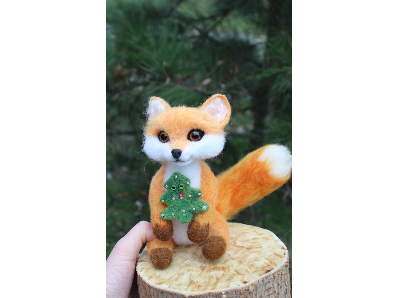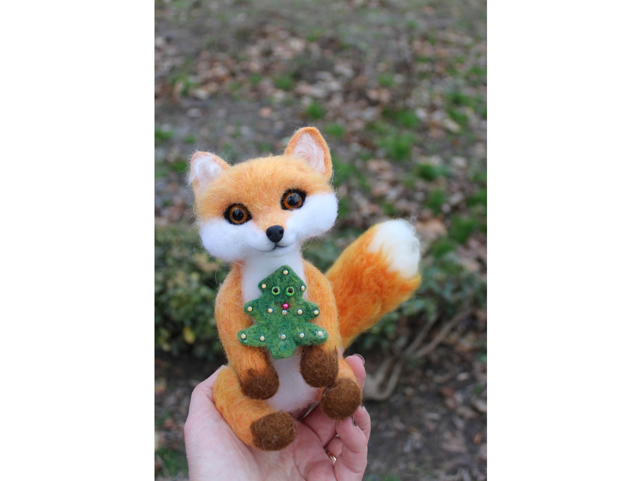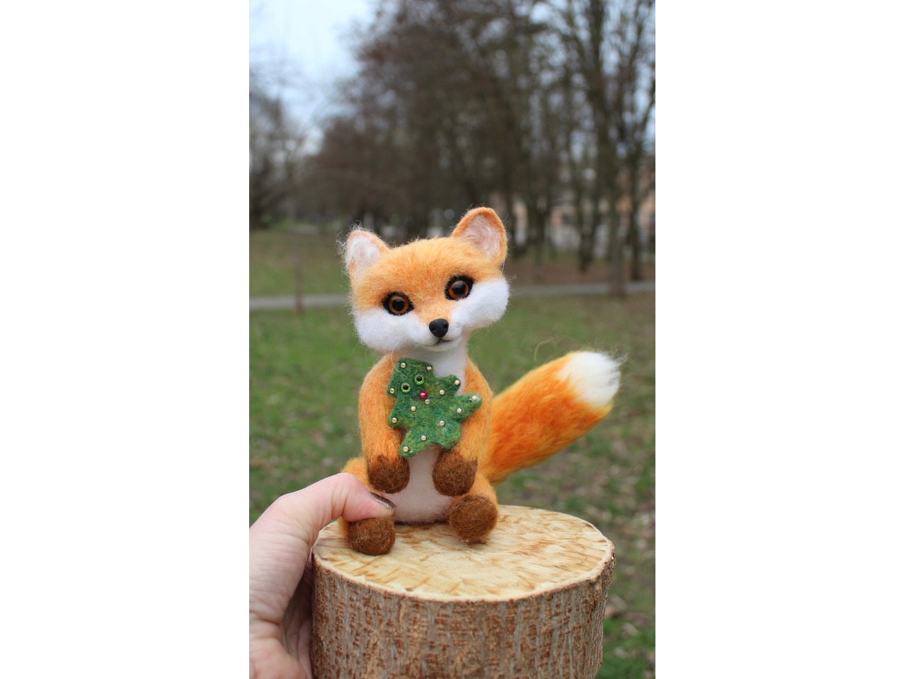 Лисенок з ялинкою іграшка валяна з шерсті інтерєрна . На каркасі, носик ручної лепки та розпису, дуже блискуча та шовковисто шерстяна лисичка. Висота 17 см ( голова і туловище без учена задніх лап )+ шикарний хвіст у красуні. В подарунок йде ялиночка з зеленими оченятами, вона знімається і може використовуватися як окрема прикраса. Позитивна лисичка гарна прикраса інтерʼєру і чудовий подарунок як дорослому так і дитині. Іграшка інтерʼєрна лиса.felting_pets