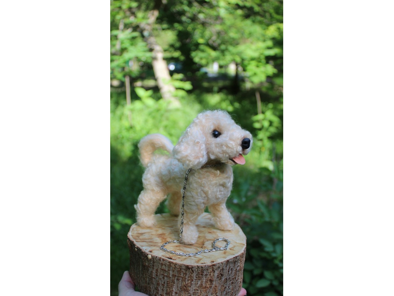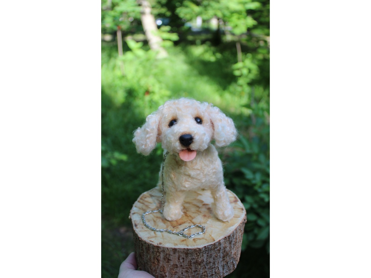 Мальтіпу реалістична собака валяна іграшка інтерєрна пес пудель хендмєйд подарунок собачка песик