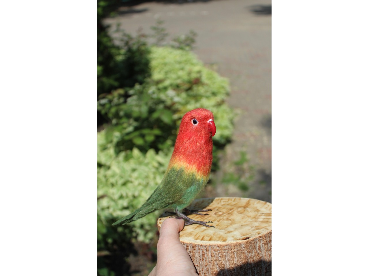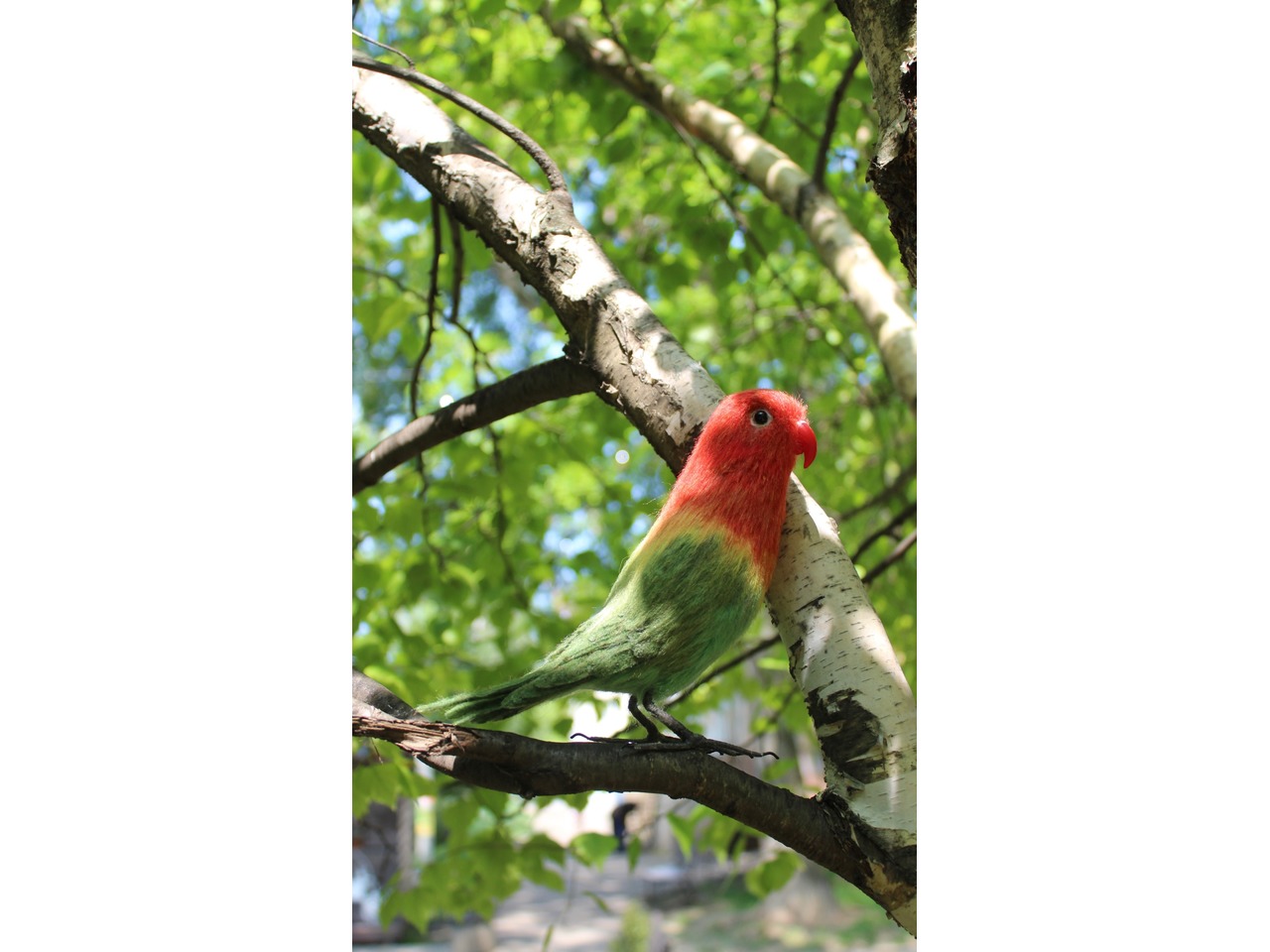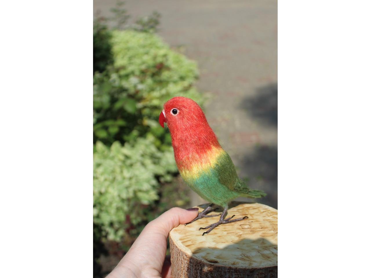 Попугай неразлучник валяна іграшка з шерсті. Птичка войлочна ручної роботи, ексклюзивна, авторська. Інтерєрная хендмєйд. Дуже блискучий та гарний папужка. Висота 15 см, длина 15 см. Лапки на каркасі, клювик ручної лепки та розпису, кожне пірьячко зроблено окремо. Стане чудовою прикрасою вашого інтерʼєру.felting_pets