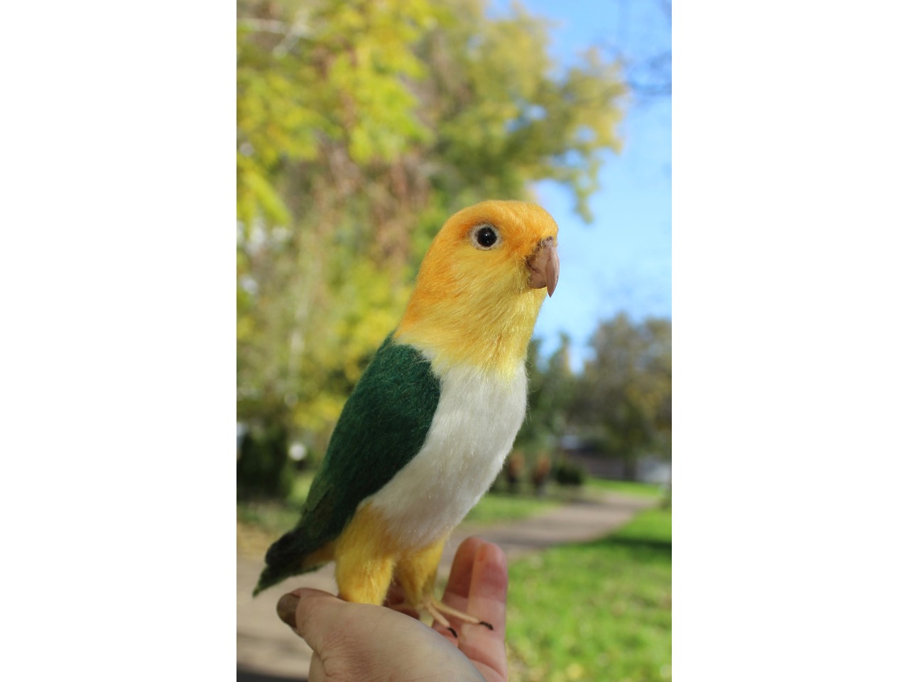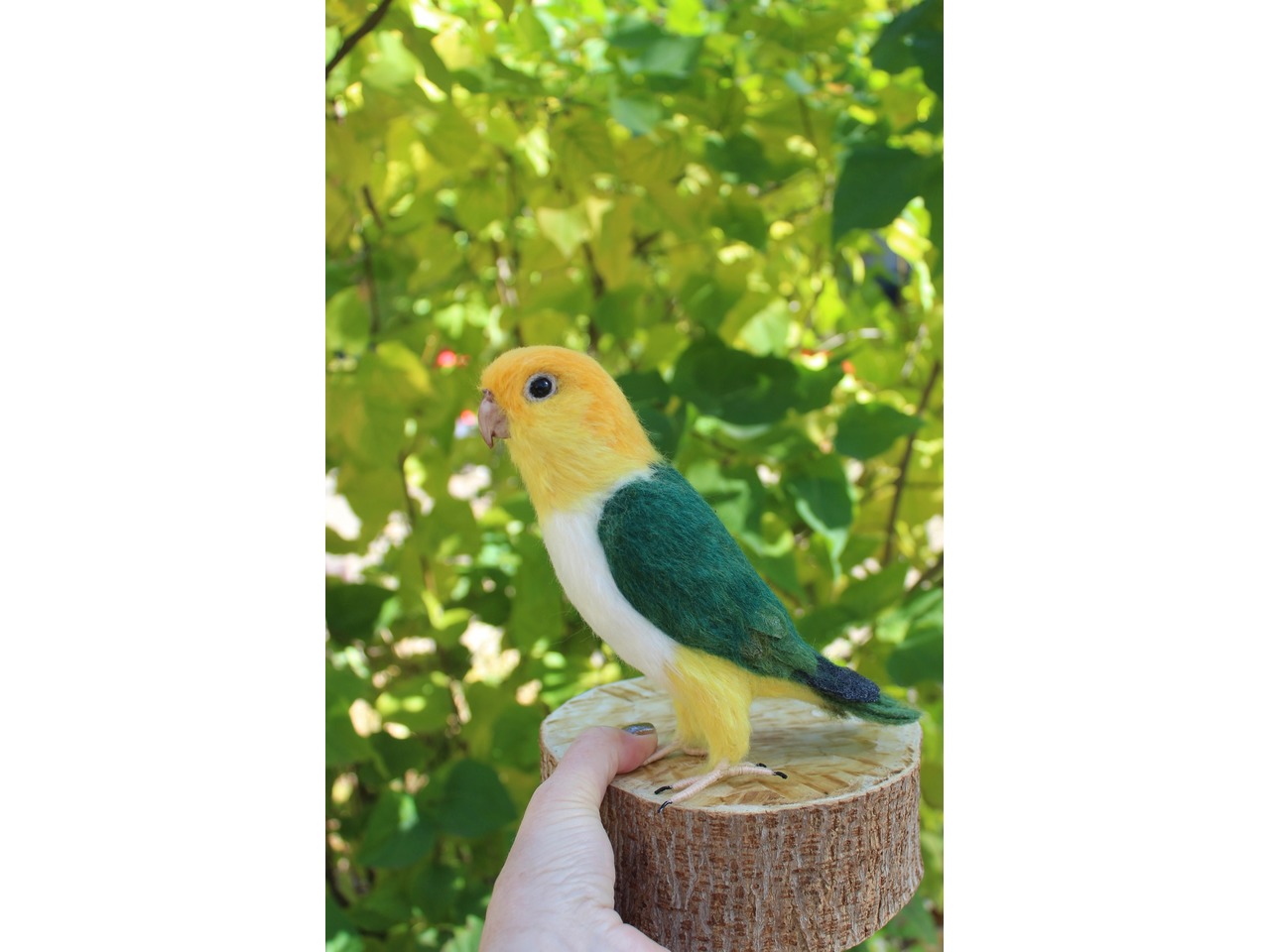 Папуга Каик іграшка валяна з шерсті белогрудий войлочний попугай . Інтерєрна іграшка . Висота 16 см. длина 23 см. Лапки на каркасі, клювик ручної лемки та розпису, кожне перо зроблено окремо. Дуже блискуча та яскрава шорсточка. Чудовий подарунок як для дорослого та і для дитини. Стане прикрасою вашого інтерʼєру і буде дарити гарний настрій та наповнювати позитивом.felting_pets