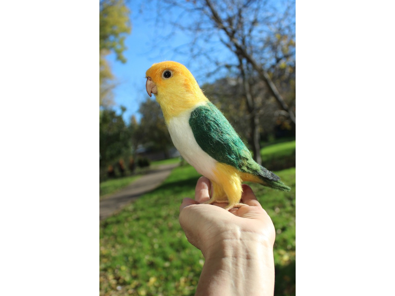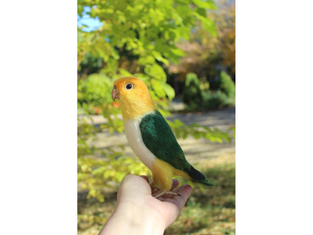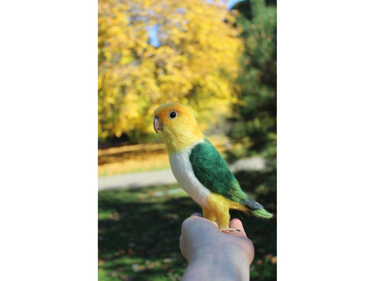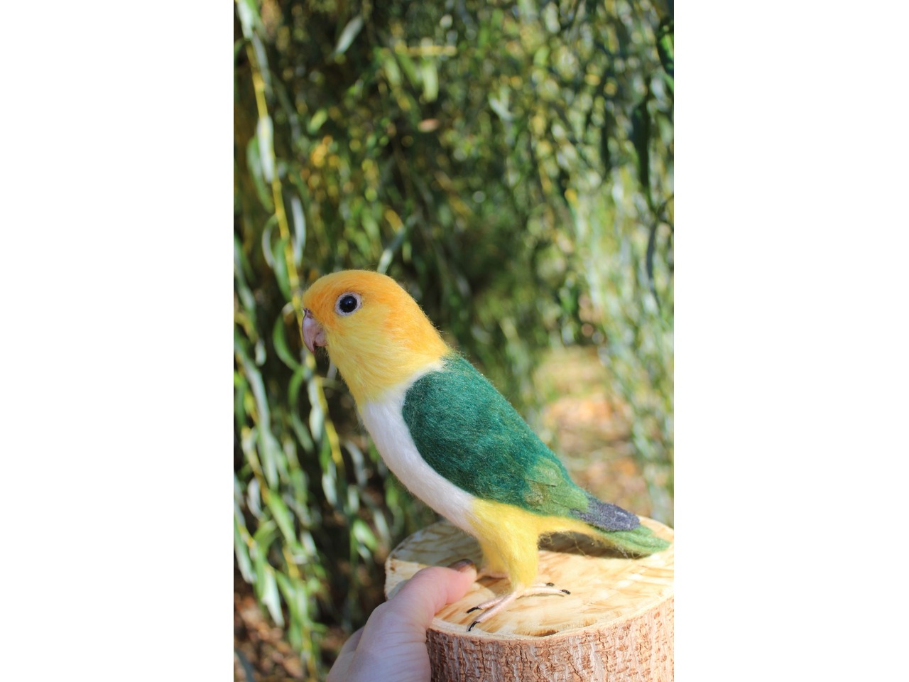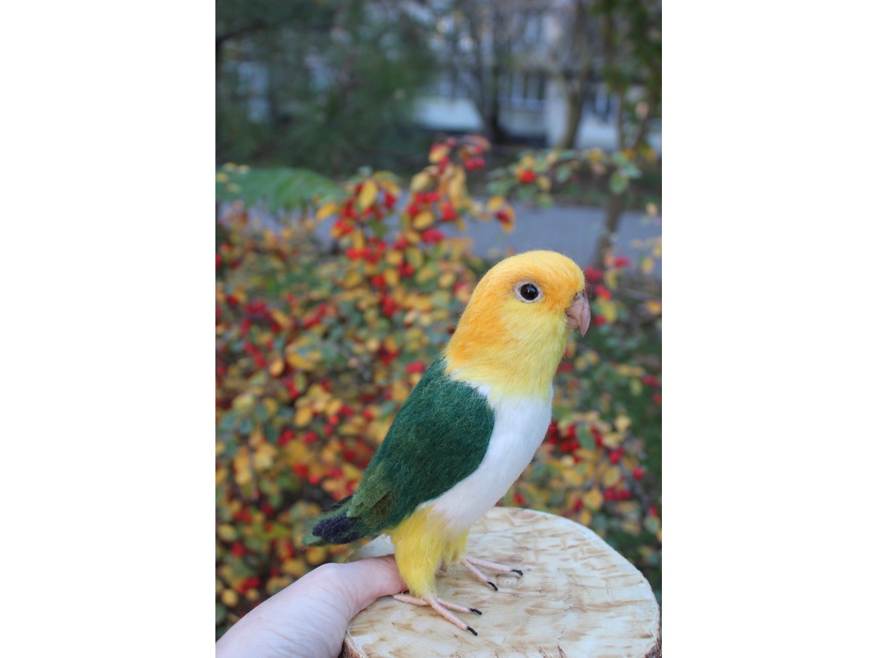 Валяна іграшка папуга Каик з шерсті птица інтерєрна войлочная подарунок хендмєйд сувенір