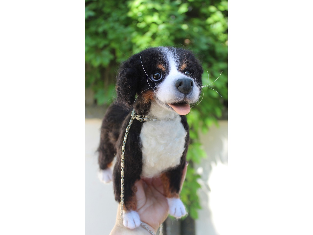 Валяна іграшка собака Бернский зенненхунд з шерсті інтерєрна пес хендмєйд скульптура войлочная