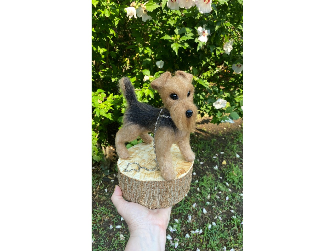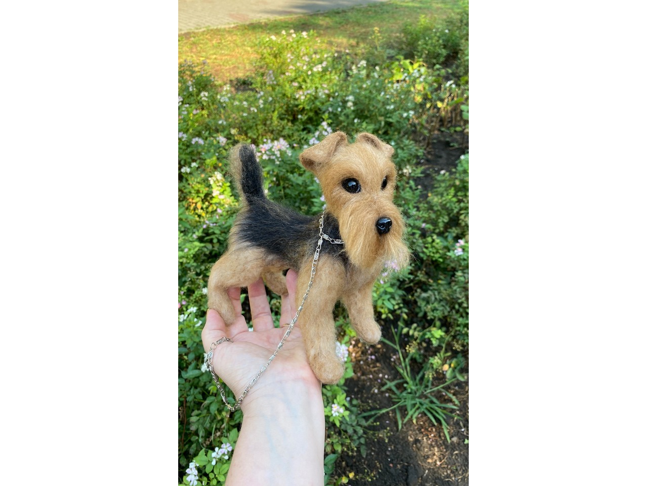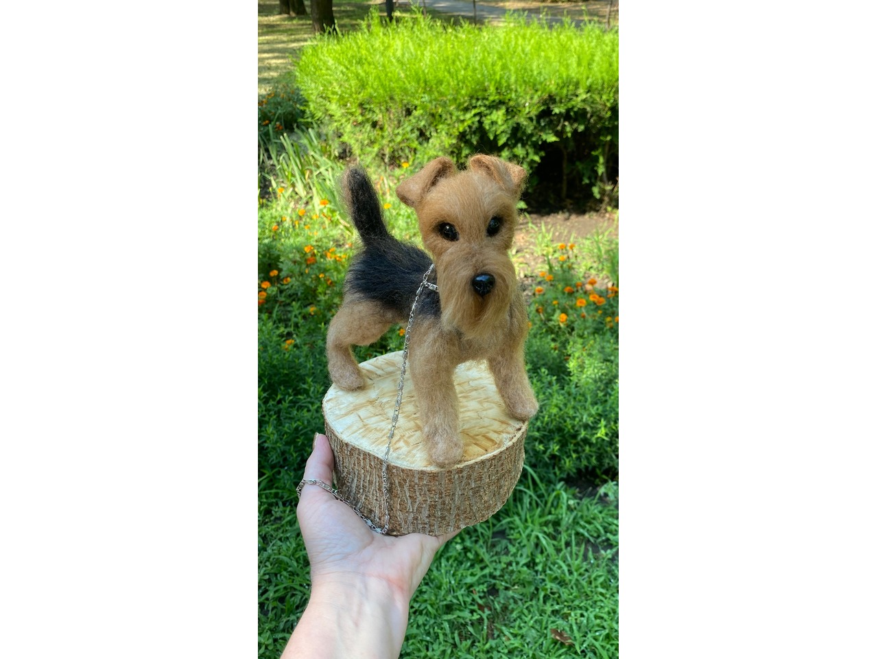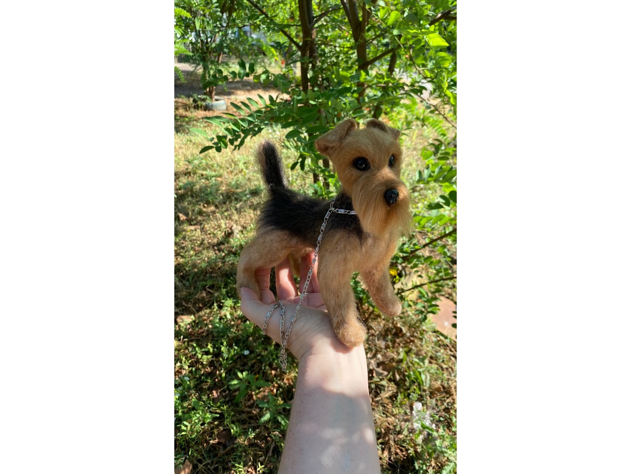 Вельштерьер реалістична мініатюра скульптура собачки. Іграшка валяна інтерєрна. Висота 19 см, длина 20 см. Зроблена на каркасі. Має пухнасту та блискучу шорстку. Дуже приємна на дотик, так як сваляна з натуральної овечої шерсті. Випромінює позитив, радість та щастя. Зроблена з душею та любовʼю.felting_pets