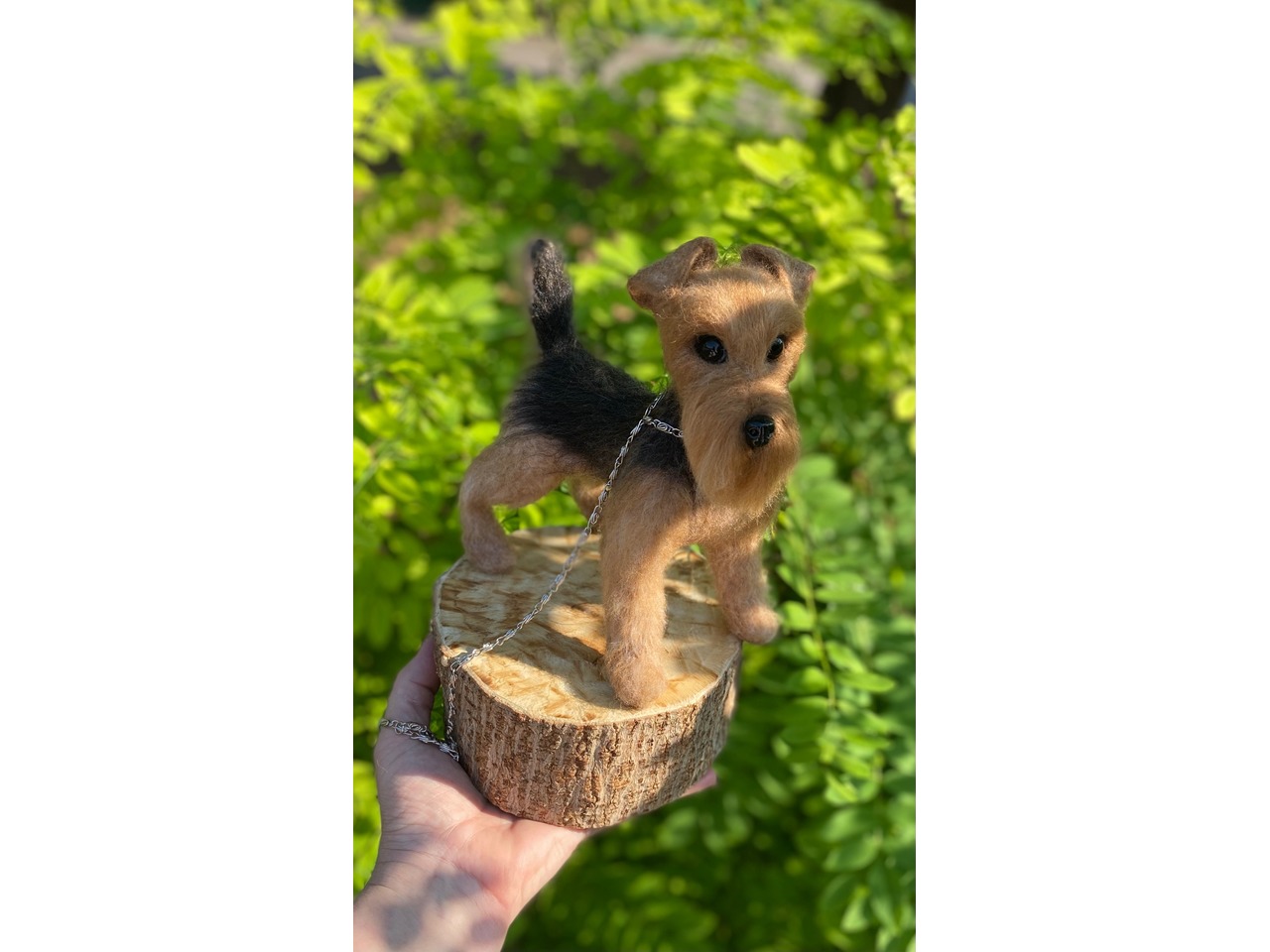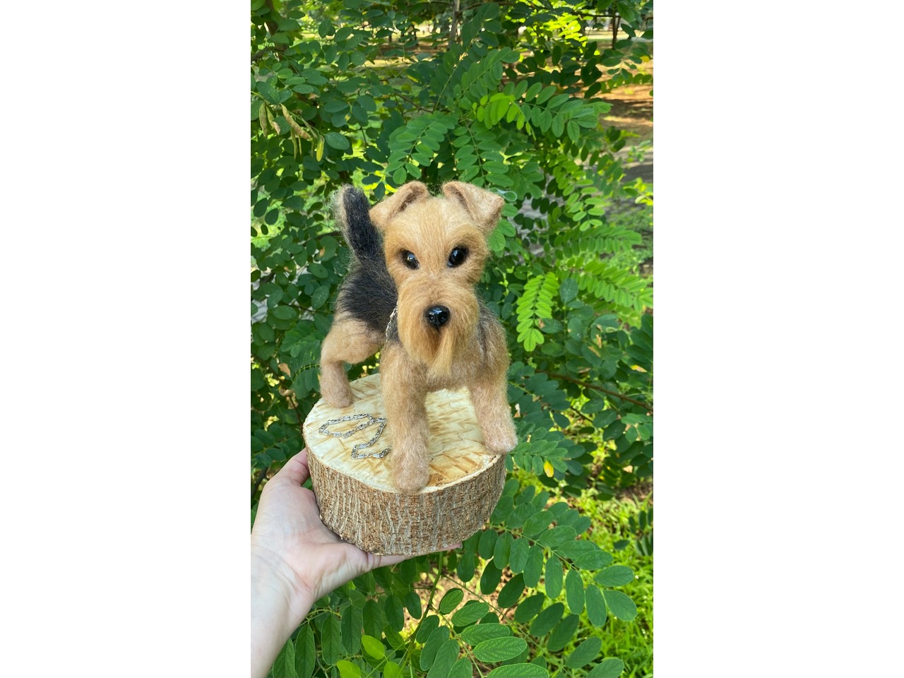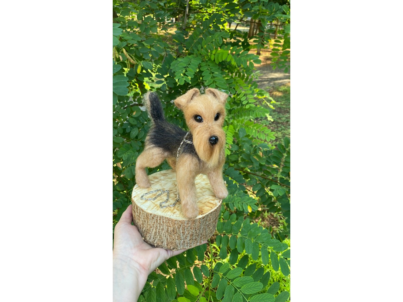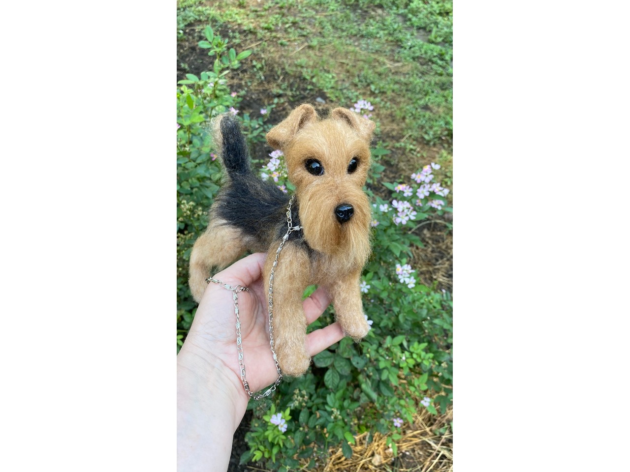 Вельштерьер реалістична мініатюра скульптура собачки. Іграшка валяна інтерєрна. Висота 19 см, длина 20 см. Зроблена на каркасі. Має пухнасту та блискучу шорстку. Дуже приємна на дотик, так як сваляна з натуральної овечої шерсті. Випромінює позитив, радість та щастя. Зроблена з душею та любовʼю.felting_pets