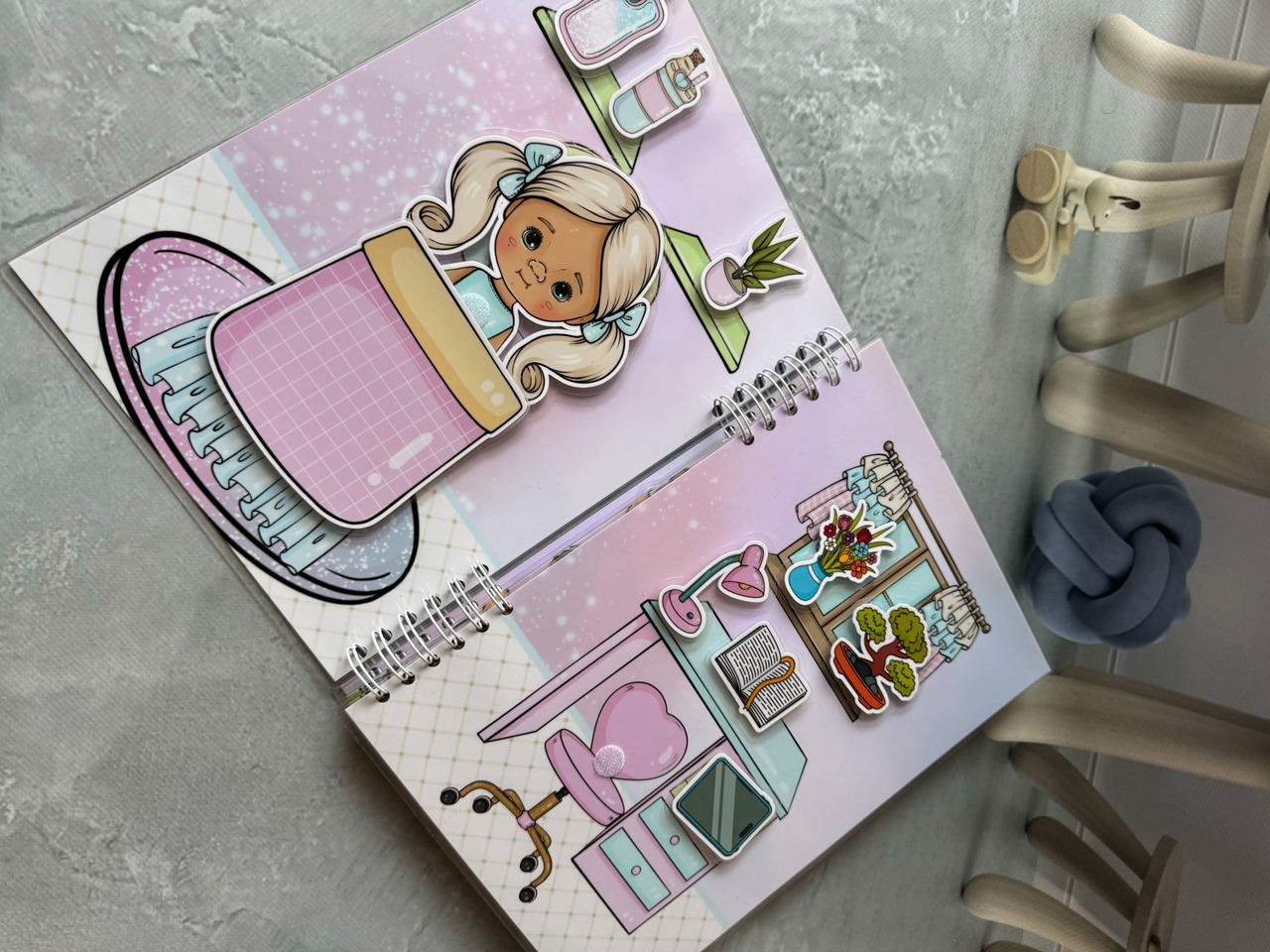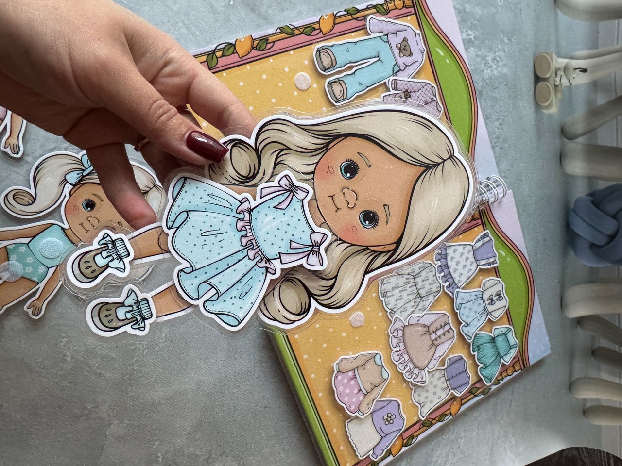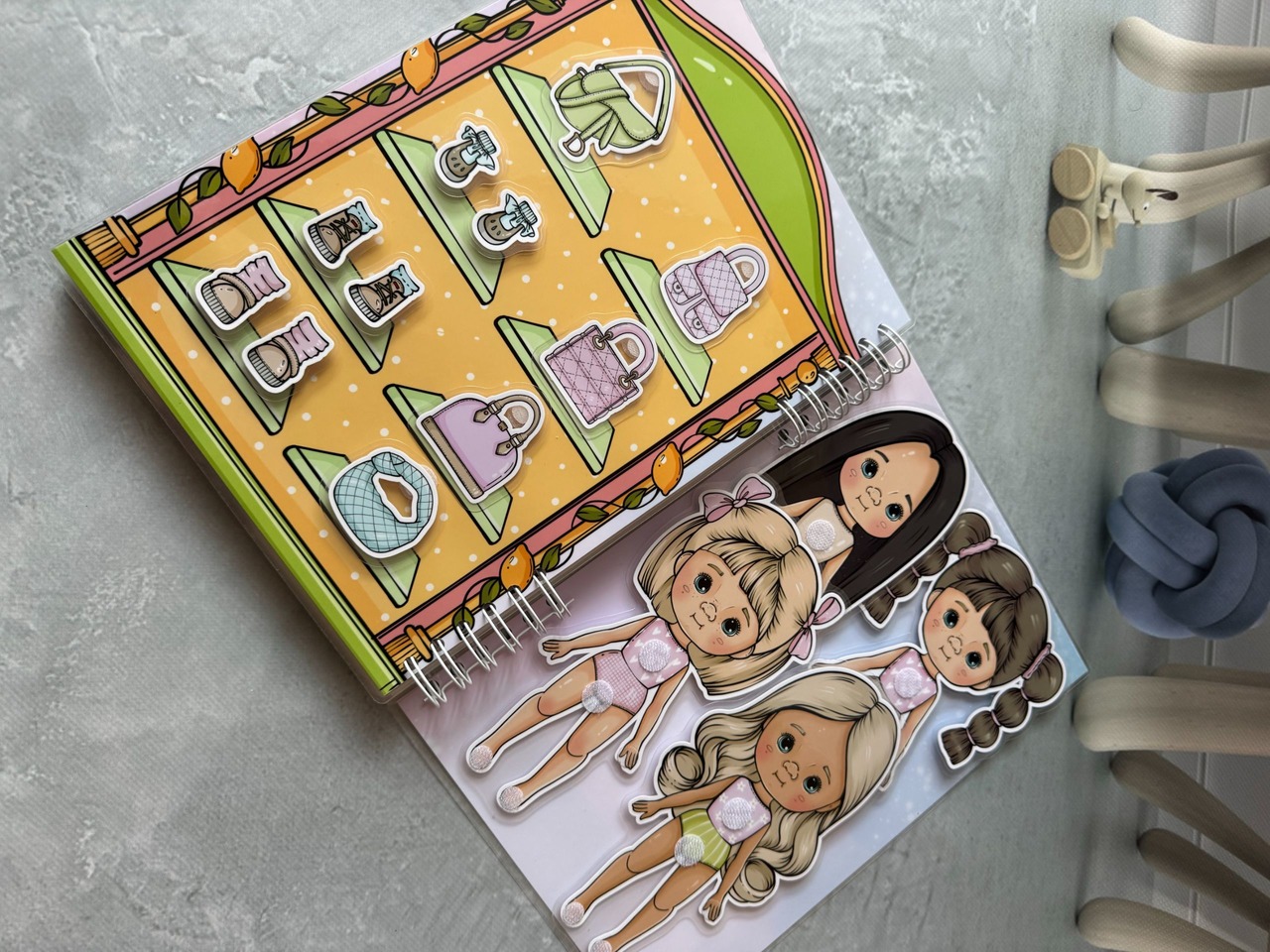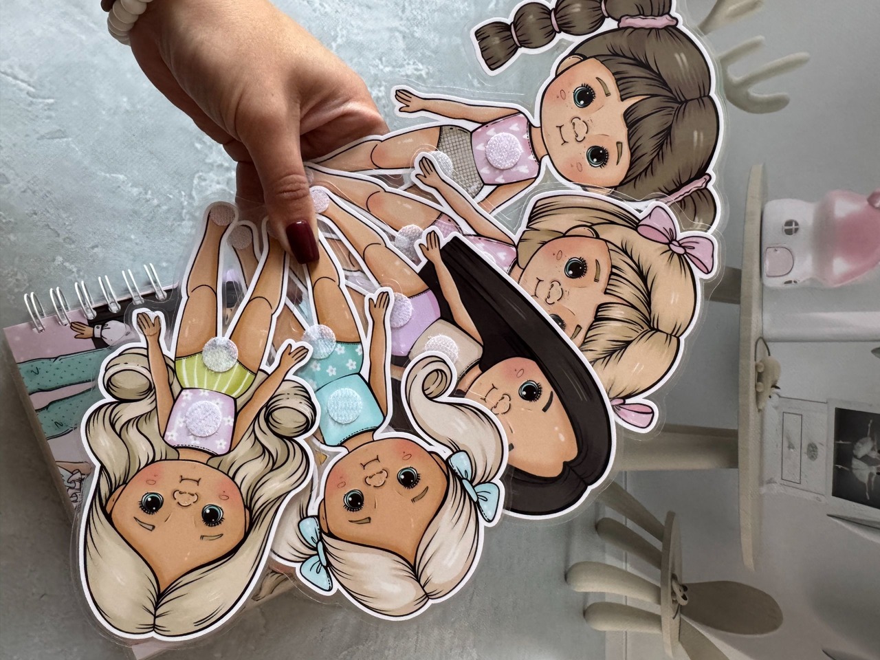 Альбом на липучках. Формат А4.8 сторінок. 5 ляльок