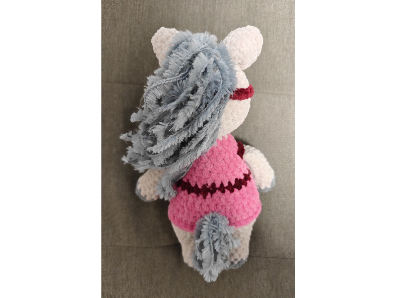 Іграшка має безпечне кріплення зіниці, а грива та хвіст пришиті, що забезпечує надійність і довговічність виробу. Завдяки використанню нитки Yarn Art Dolce мікрополіестер, іграшка має приємна на дотик і легко піддається догляду.