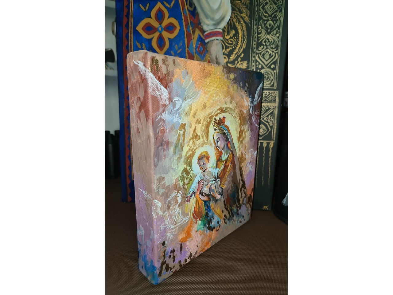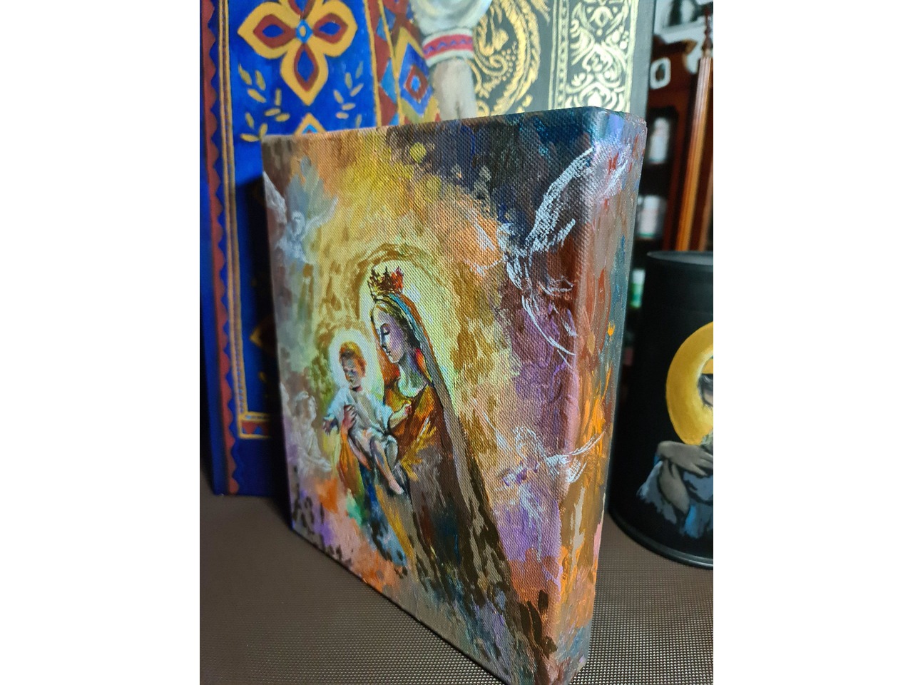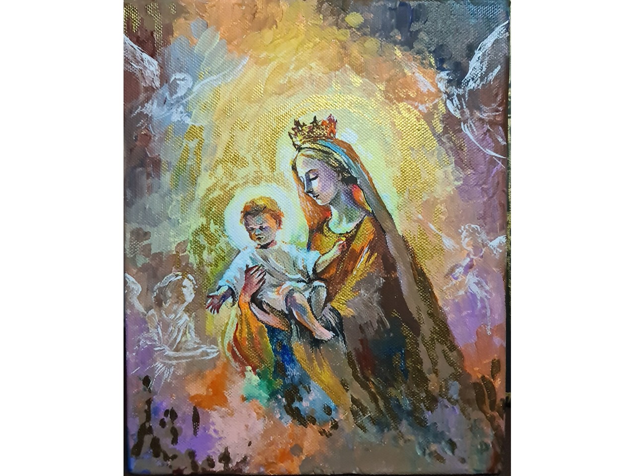 Образ Богородиці / Ікона олією на полотні з рамою (30×40 см) Оригінальний релігійний образ, написаний вручну в класичній техніці олійного живопису. Формат полотна: 30×40 см (А3) Матеріали: полотно на двп, олійні фарби, дерев’яна рама Образ світлий, емоційний, виконаний з любов’ю та увагою до деталей...