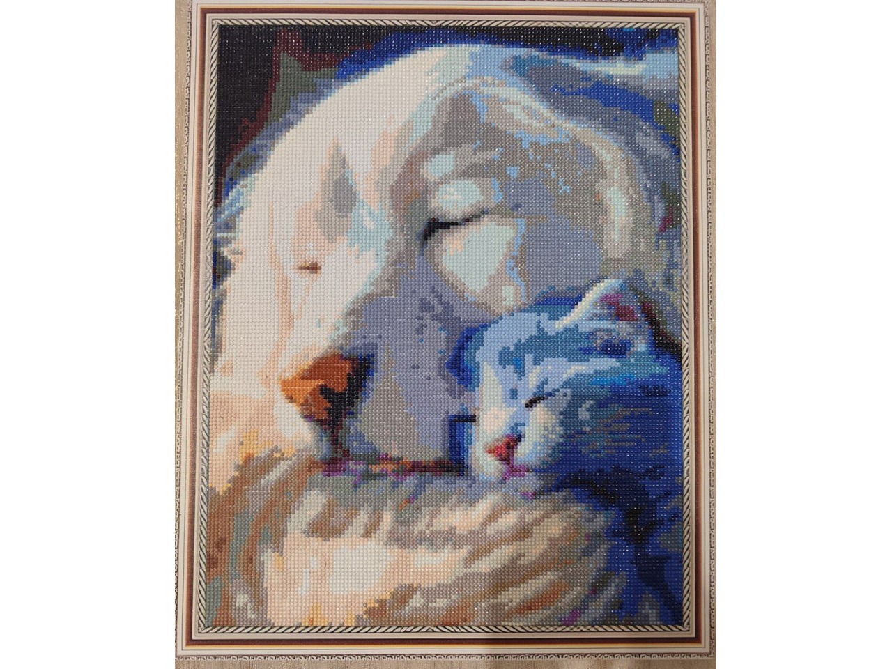Продаю готову картину, викладену в техніці алмазної мозаїки. Робота виконана акуратно, всі стрази щільно закріплені, картина яскраво блищить при світлі та гарно виглядає в інтер’єрі.Ідеально підійде для декору кімнати, на подарунок або для створення затишної атмосфери вдома.