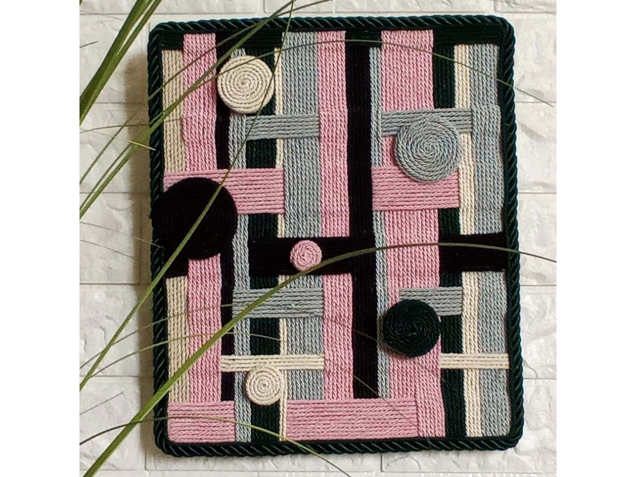 Абстрактна картина з різнокольорових канатів.Картини із пряжі, мотузок та кантів зараз у тренді.
