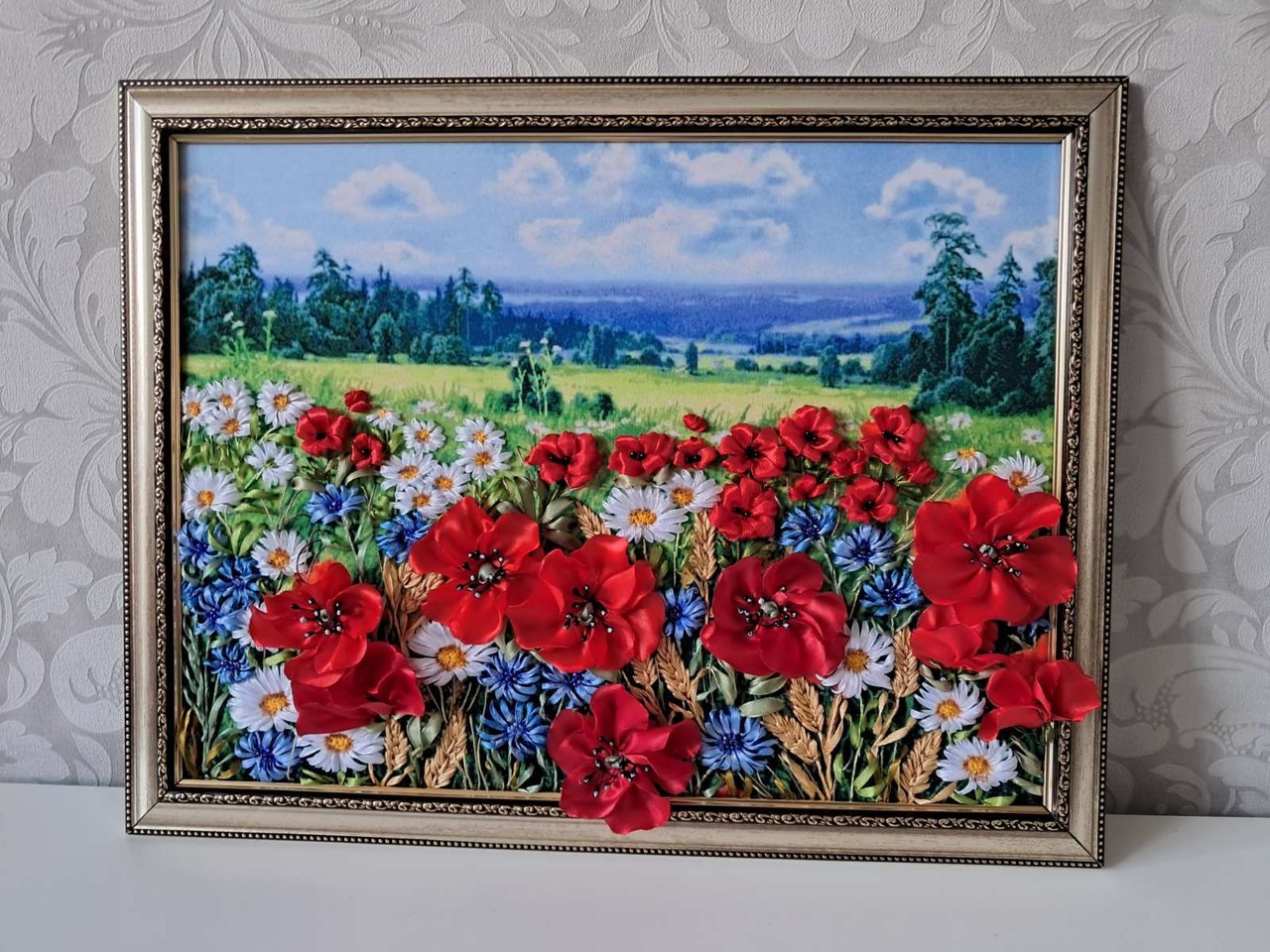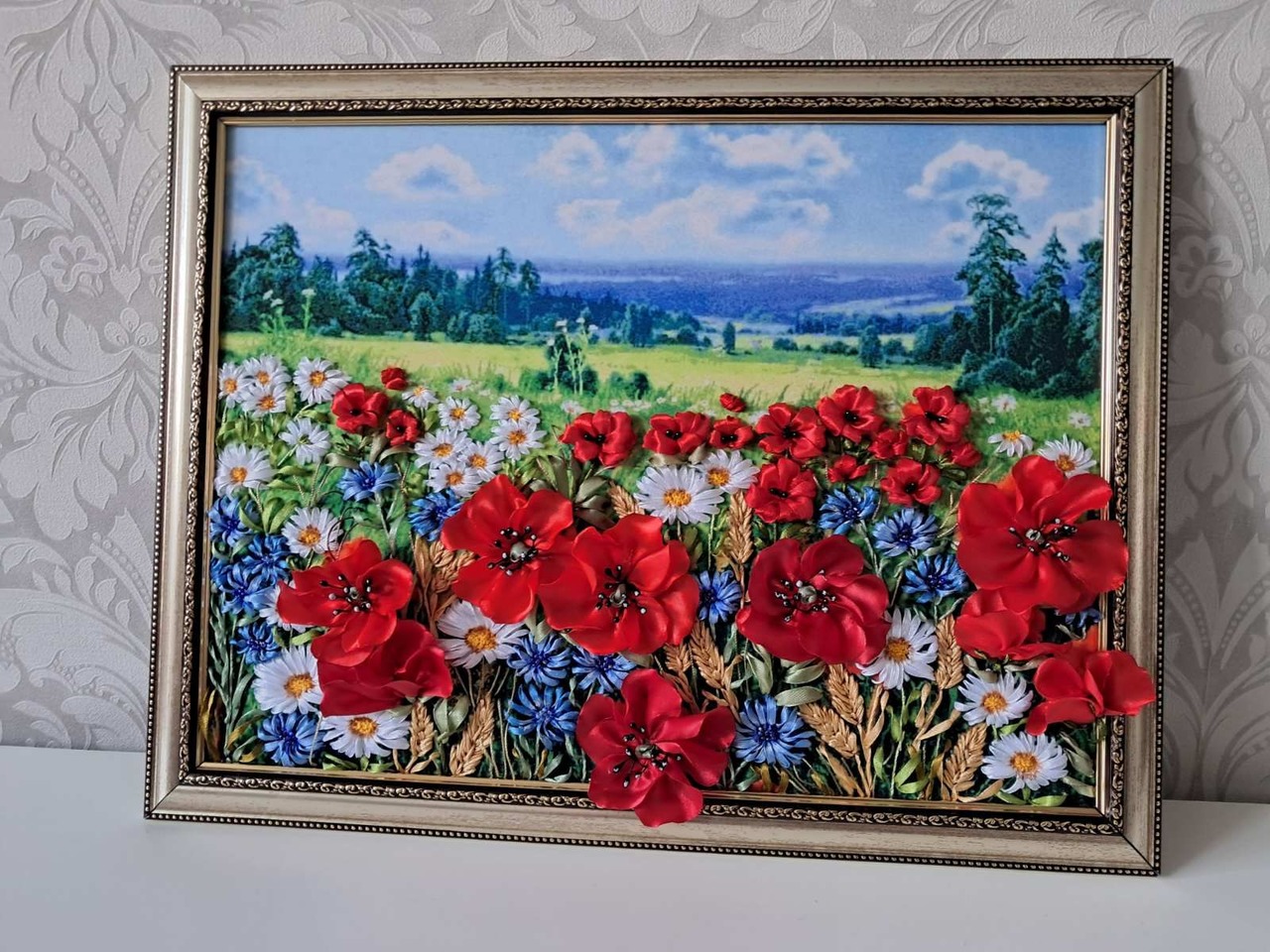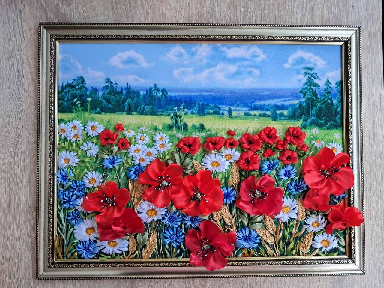 Картина вишита атласними стрічками, бісером і вишивальними нитками на якісному принті. Хто бажає оновити інтер′єр своєї квартири чи подарувати друзям на новосілля, ювілей, будь ласка, ось вам оригінальний подарунок!!!