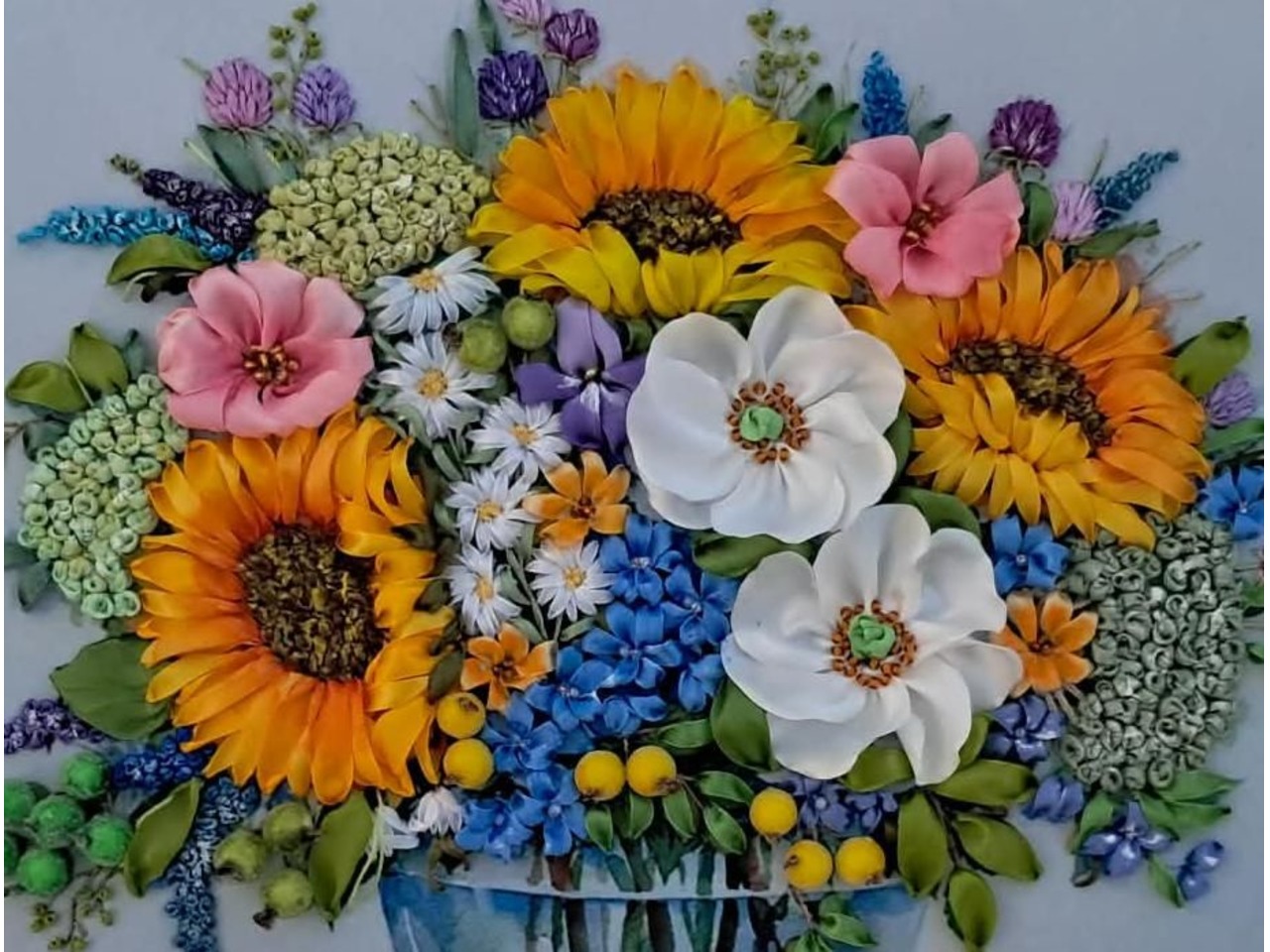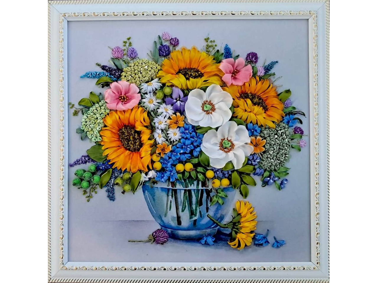 В основі вишивки - картина Олени Вавілової з ніжним квітковим сюжетом. Використані атласні стрічки, бісер, вишивальні нитки, тонування кольорів - у процесі роботи. Це чудовий подарунок з будь-якого приводу, будь-якої пори року! Розмір 35*35