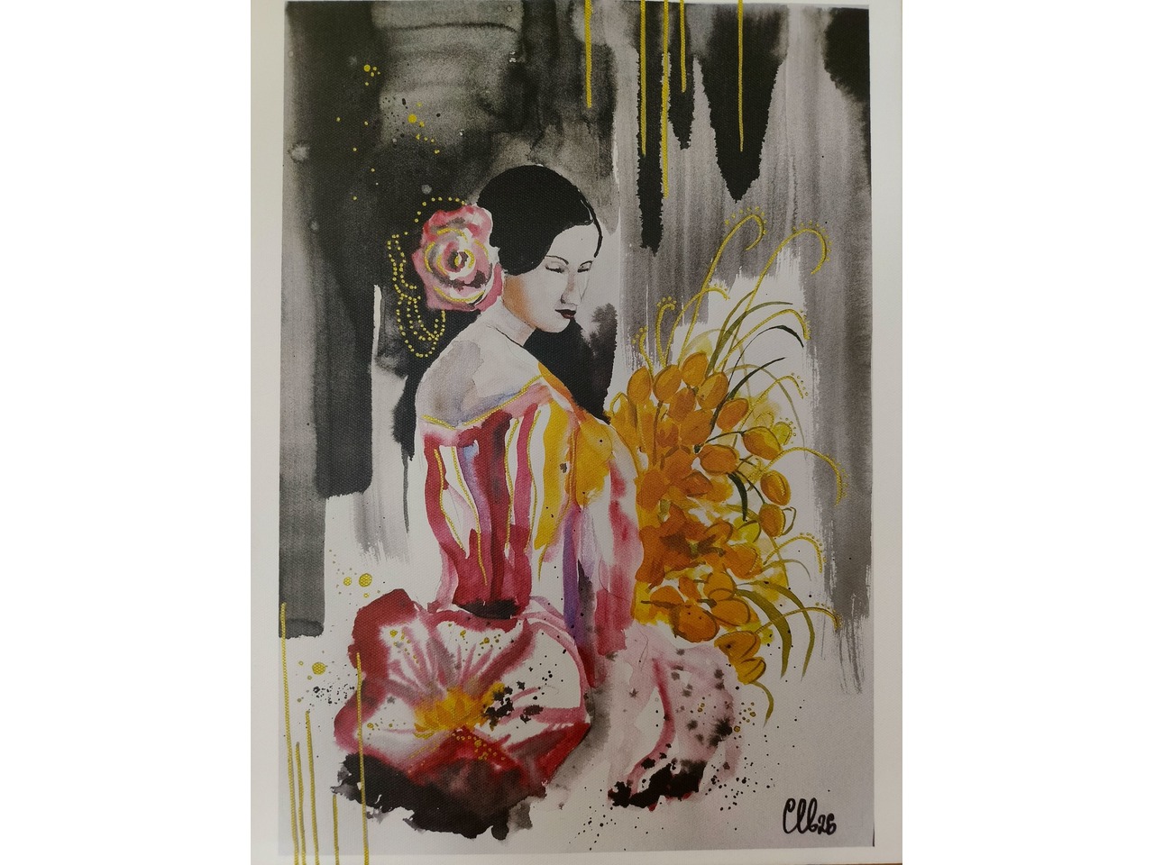 Акварель, тушь, акриловые маркеры.Холст 30×40 см.