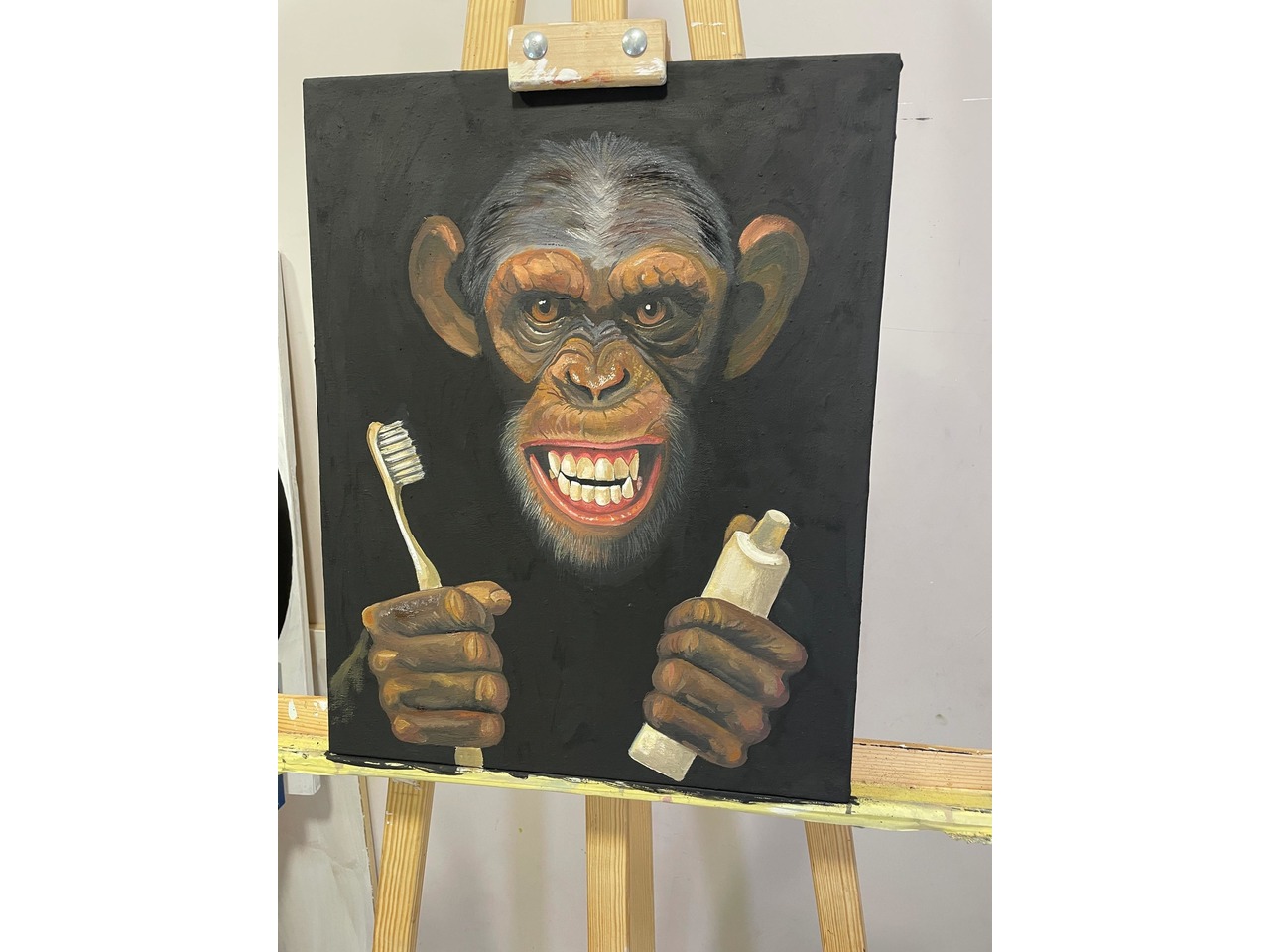 Картина 2025 року. Розмір 50х40. Олійні фарби. Можливе святкове пакування. Мавпа для будь якого інтерʼєра