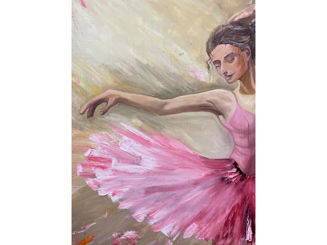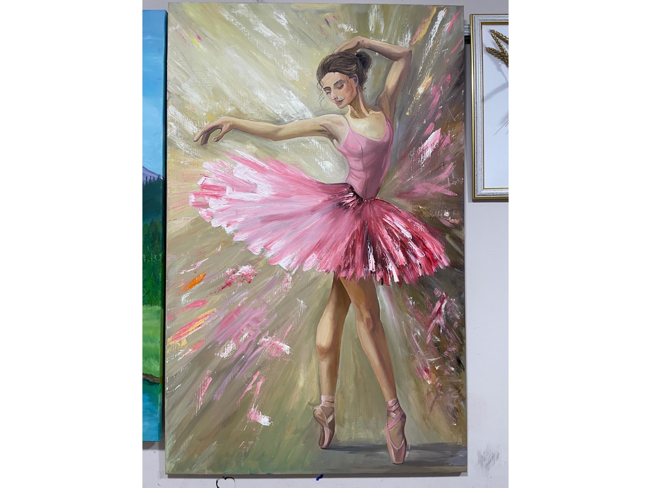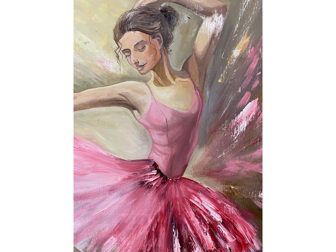 Картина з балериною «мить танця». Розмір 110х70. Матеріали: олійні фарби. Можливе святкове пакування. Картина пасуватиме в будь якому інтерʼєрі.