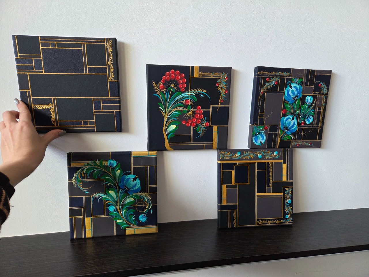 Робота виконана в авторському стилі з елементами переосмисленої петриківської традиції — стримано, мінімалістично, зі змістом.