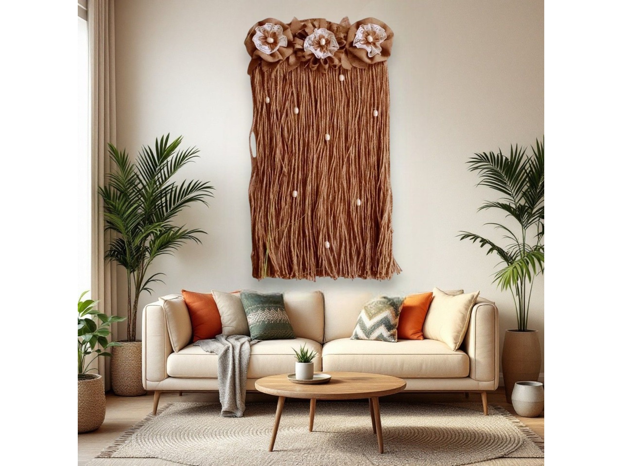 Панно для декору дому з джуту та мішковини.Оригінальний елемент домашнього декору. Ідеально підходить для прикраси інтер'єру в стилі рустик або прованс.