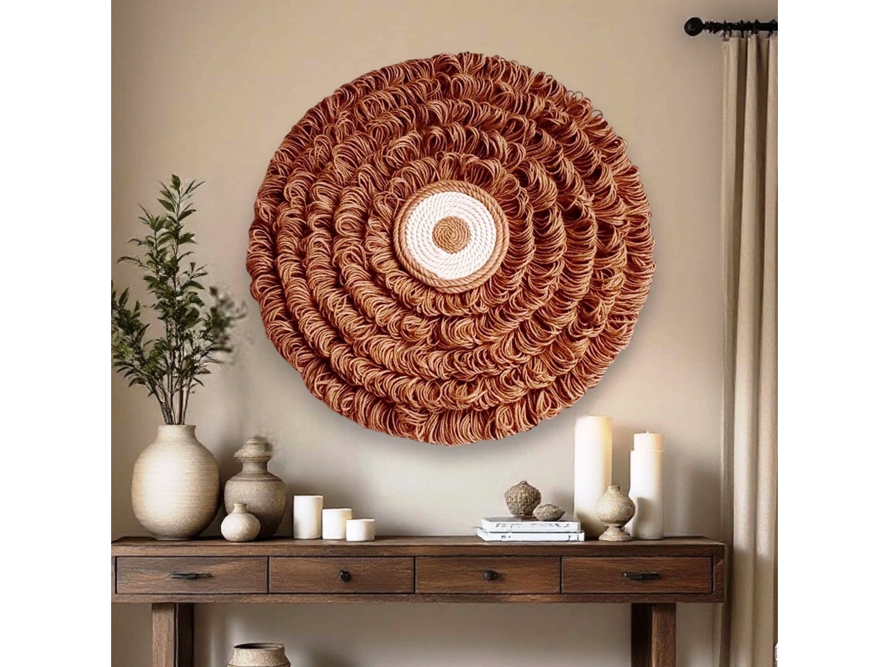 Настінний декор у стилі рустик з джуту, діаметр 60 см
