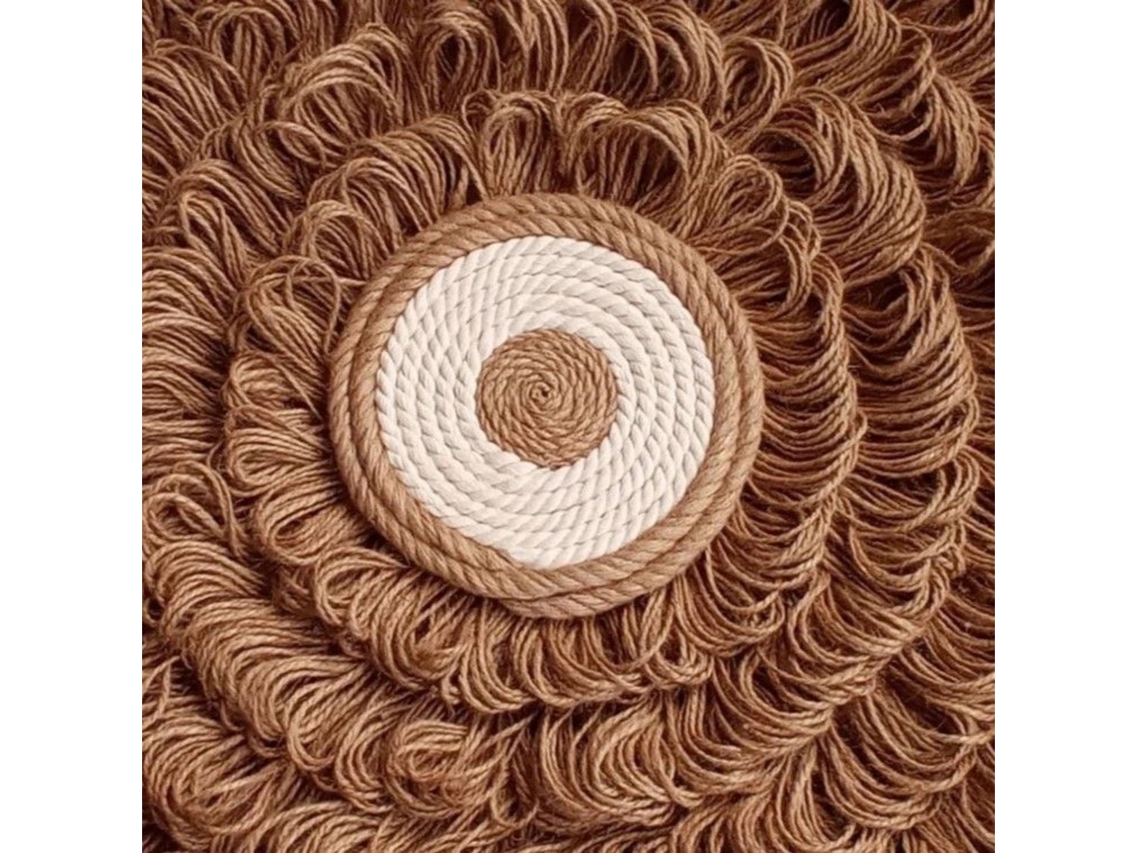 Вишуканий настінний декор ручної роботи.Центр композиції виконаний із джутового та бавовняного канату, а полотно – із джутового шпагату.