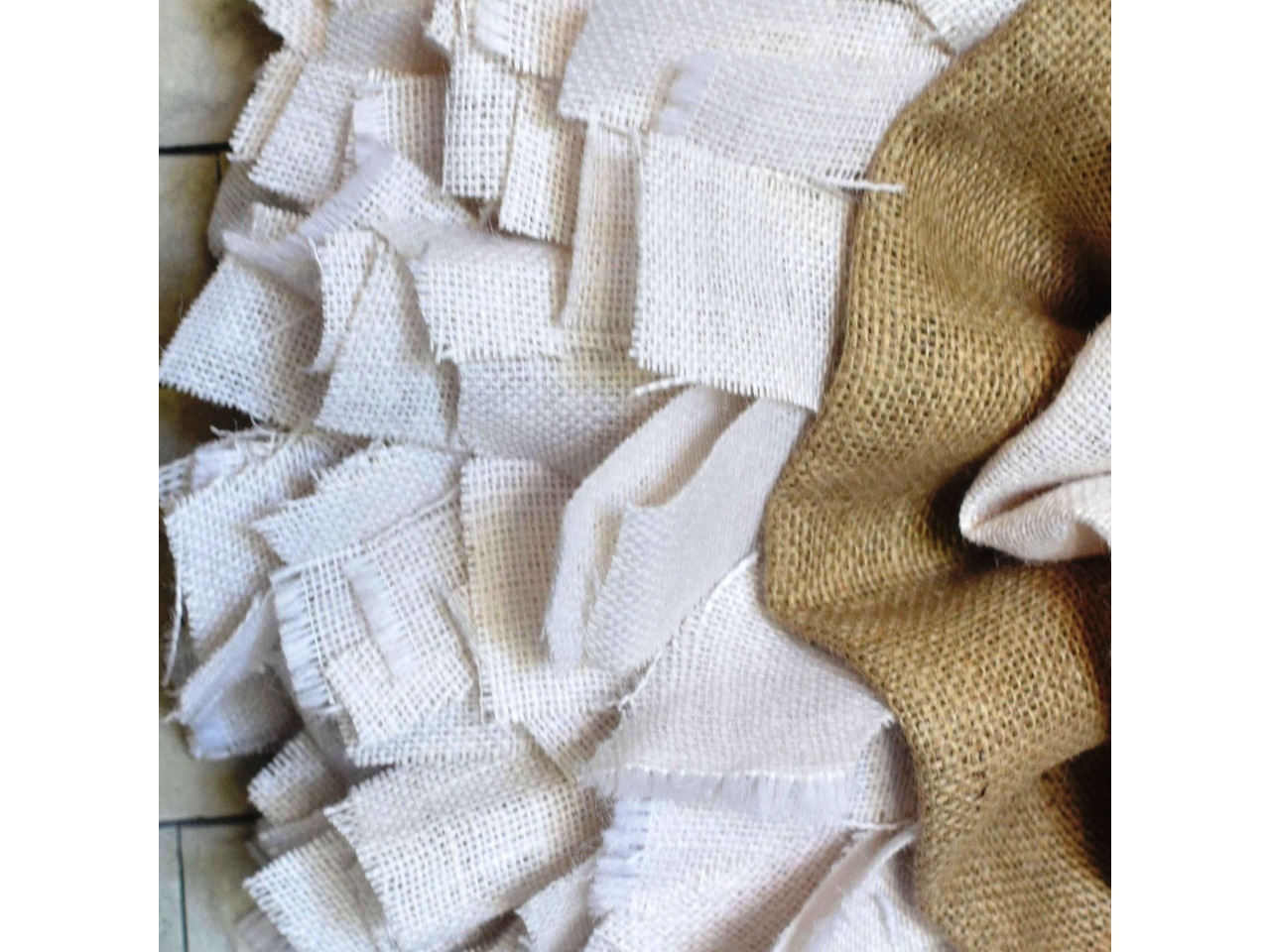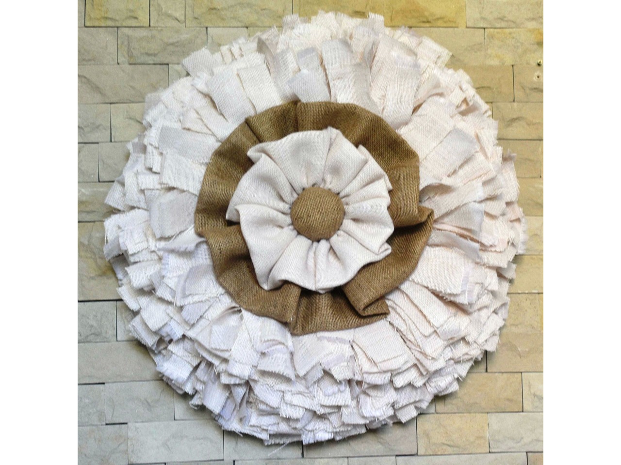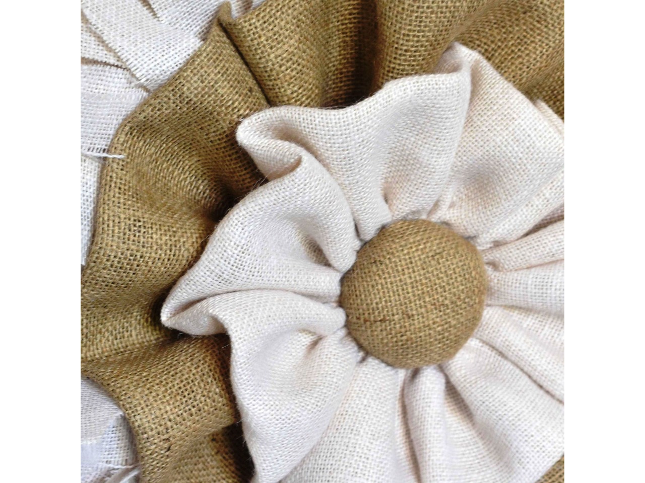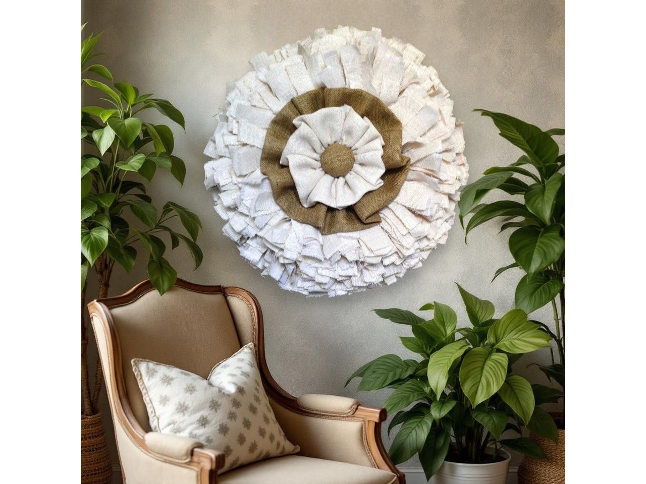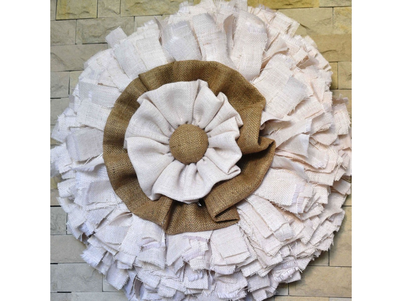 Великий настінний вінок з білої мішковини у стилі рустик кантрі, діаметр 70 см