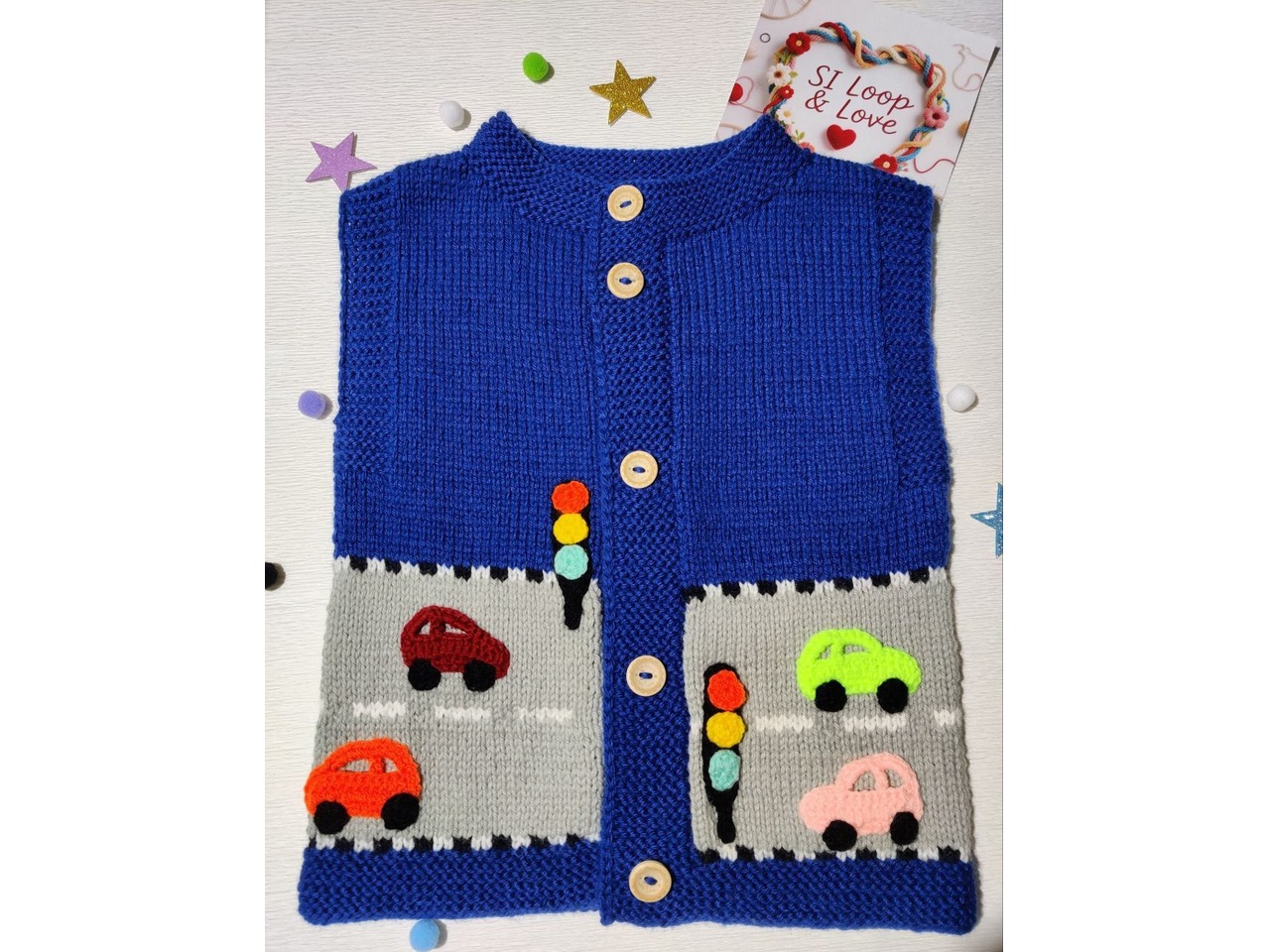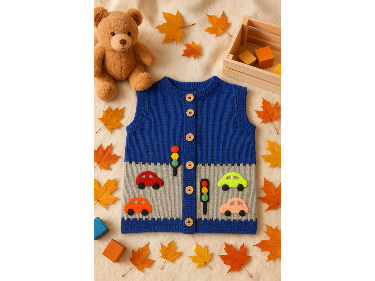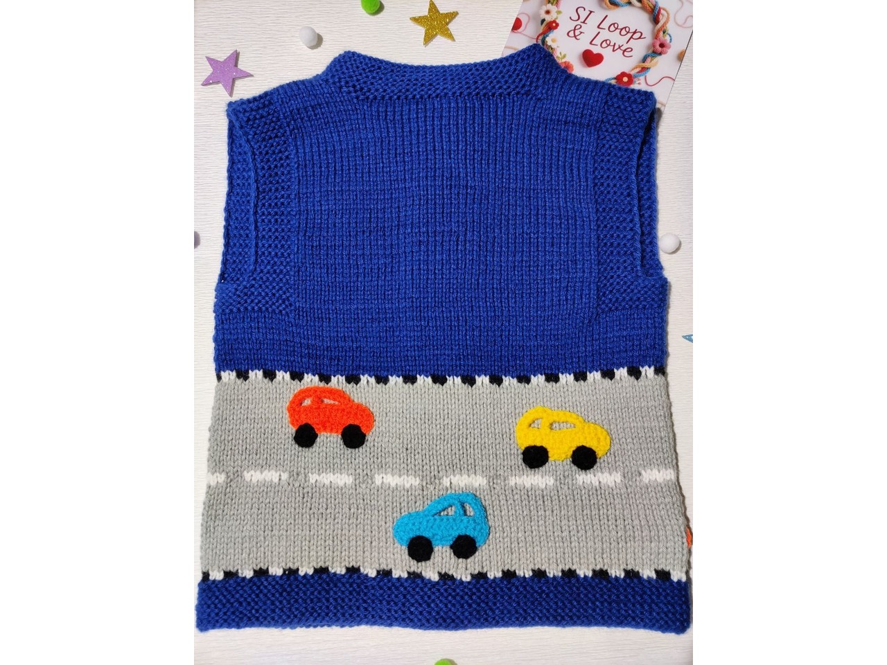 Дитяча в’язана жилетка «Машинки» (3–4 роки)