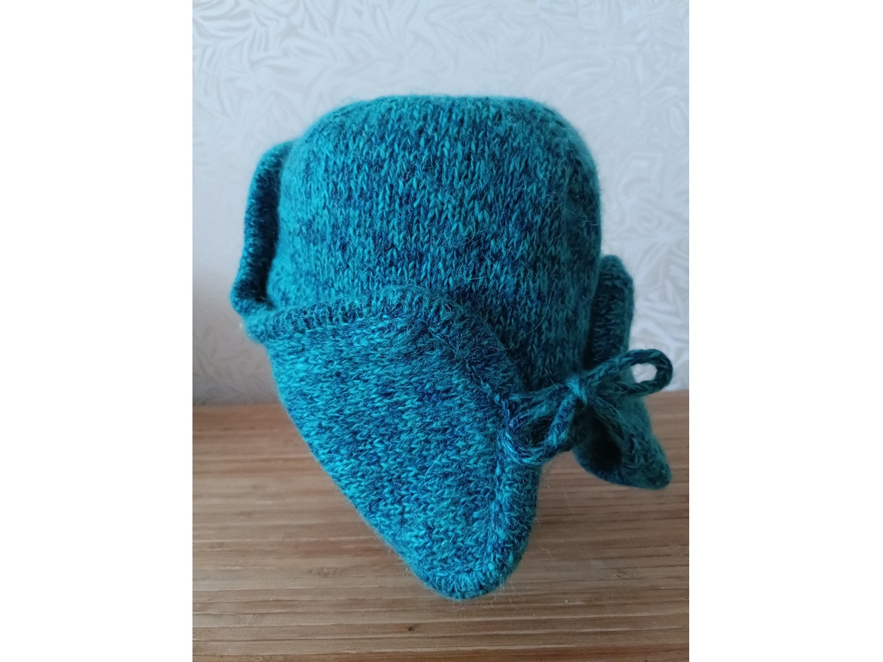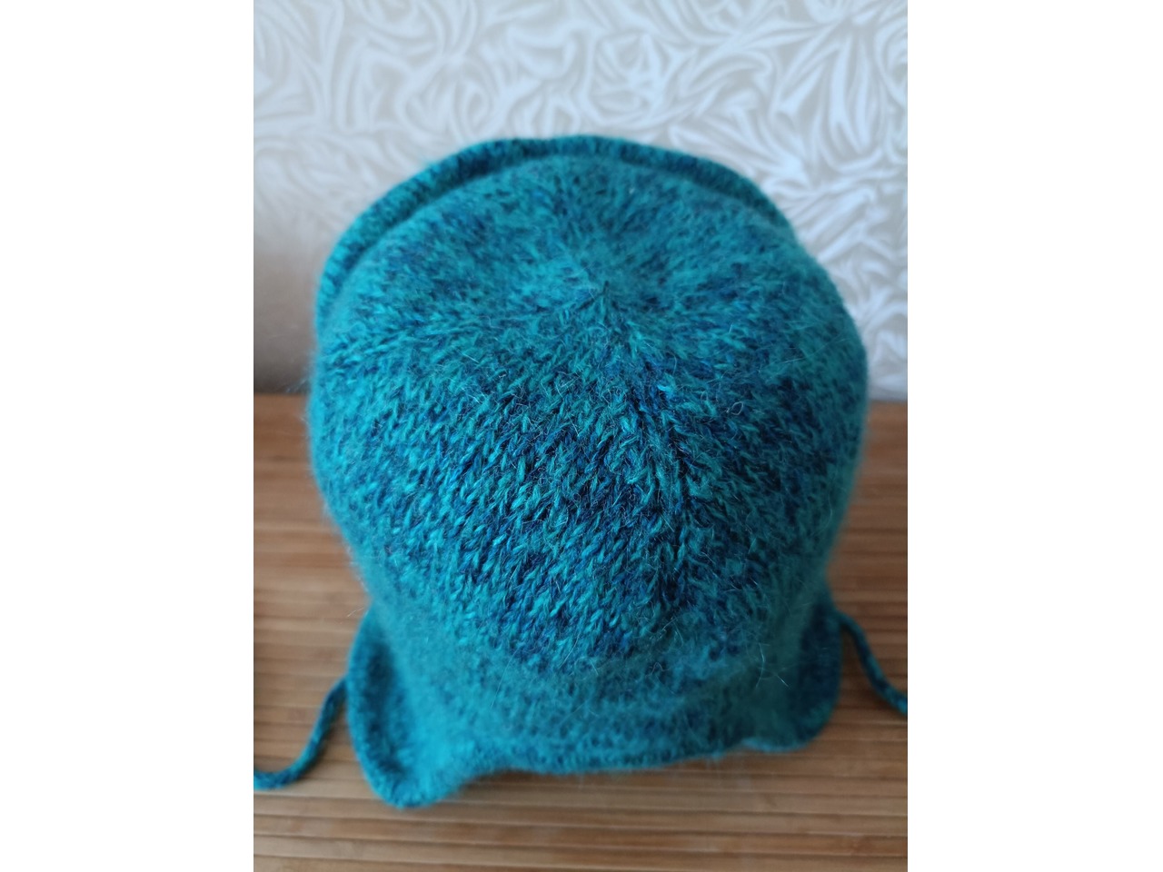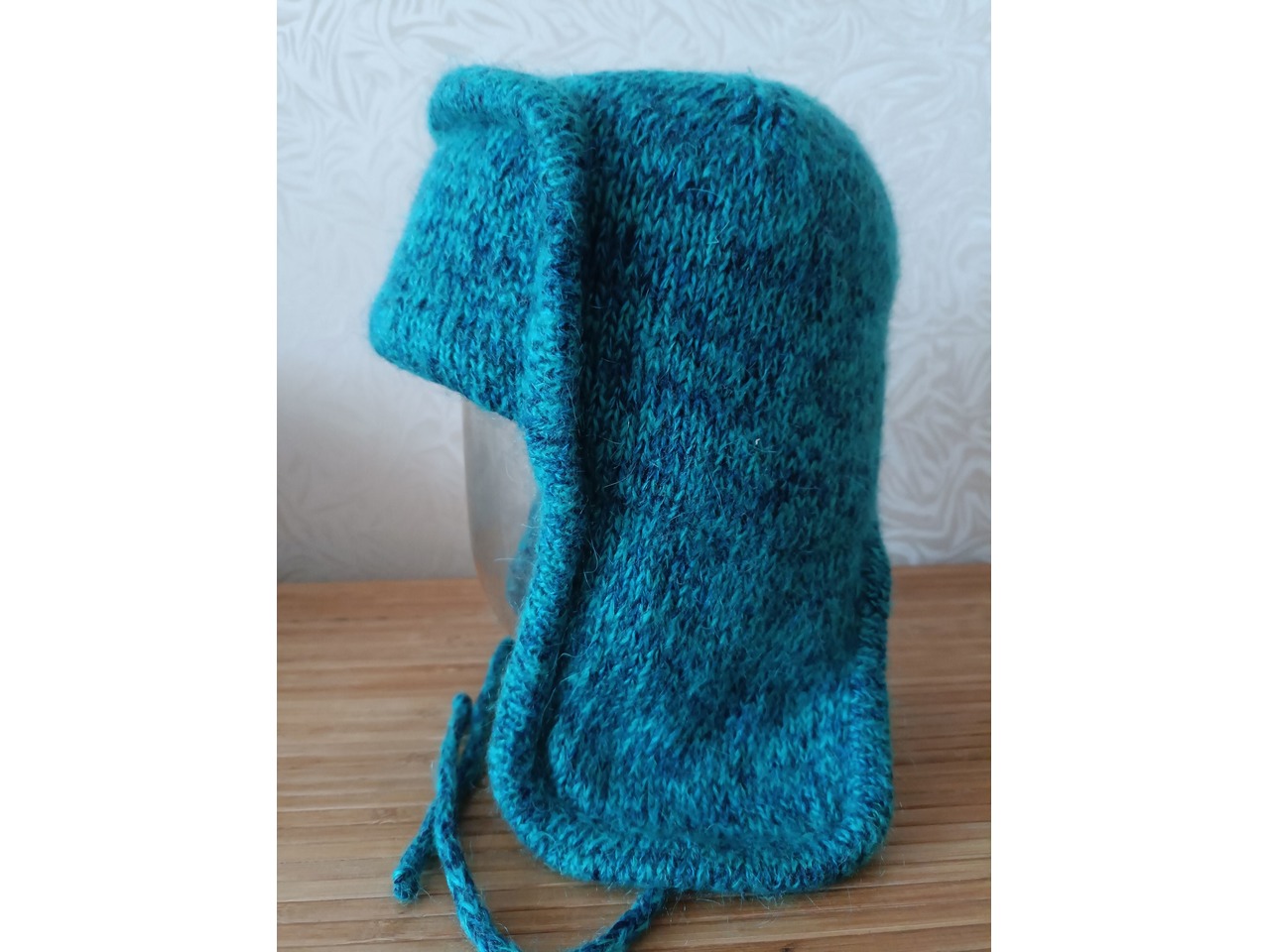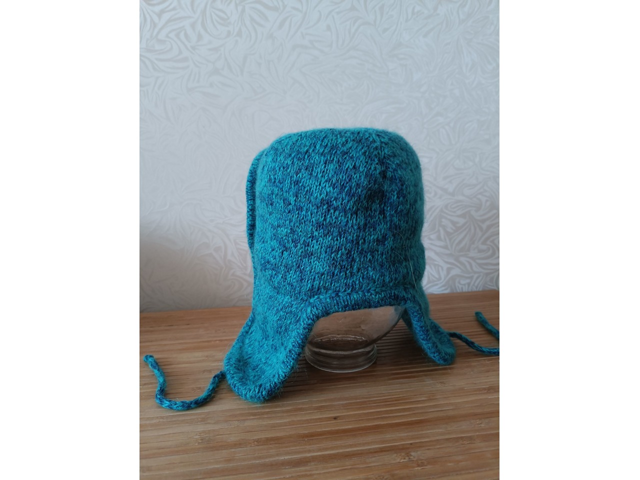 Тепла пухнаста утеплена вушанка, розмір 56-58 унісекс. Виготовлена в єдиному екземплярі у чотири нитки: 2 синіх відтінки - напіввовна, бірюза - бавовна+ шовк, та пухнаста нитка ангори. В середині шар з бавовни. На морози саме то!Для бажаючих можна додати балабон. А також замовити у комплект снуд.